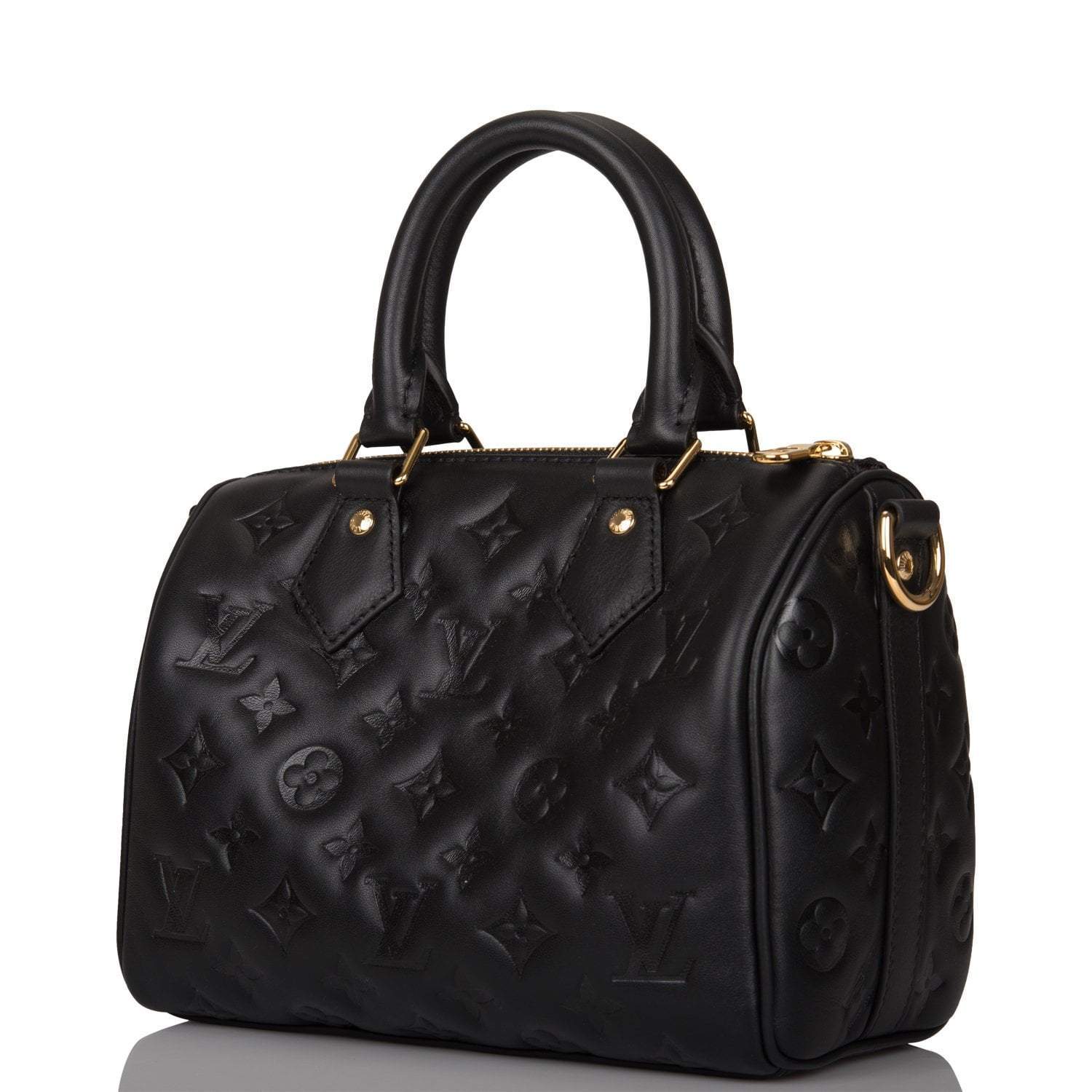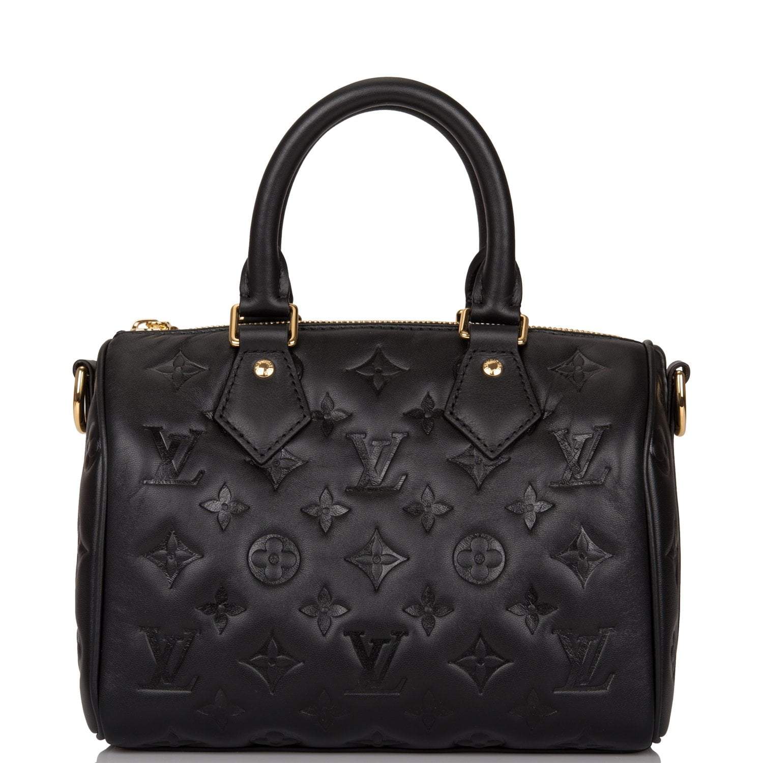 Louis Vuitton Black Embossed Monogram Speedy Bandouliere 22