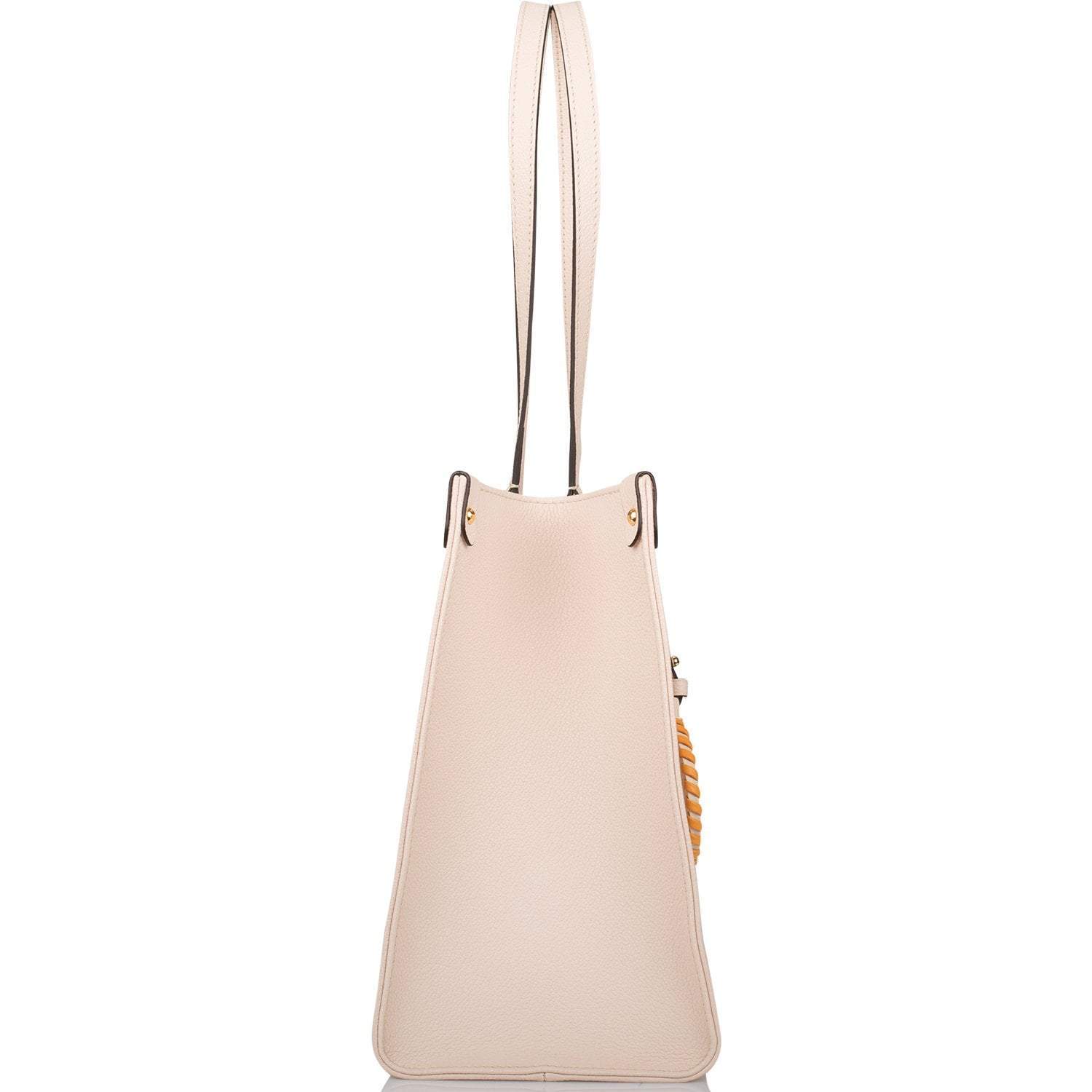 Made from a Monogram Empreinte leather with a subtle color gradient on the embossed Monogram pattern, the emblematic OnTheGo MM tote bag is part of the By The Pool capsule collection. It has two sets of handles, long and short, for hand and shoulder carry, and a spacious interior, which easily fits essentials such as a laptop. A leather charm gives a playful spirit and highlights the LV craftsmanship.