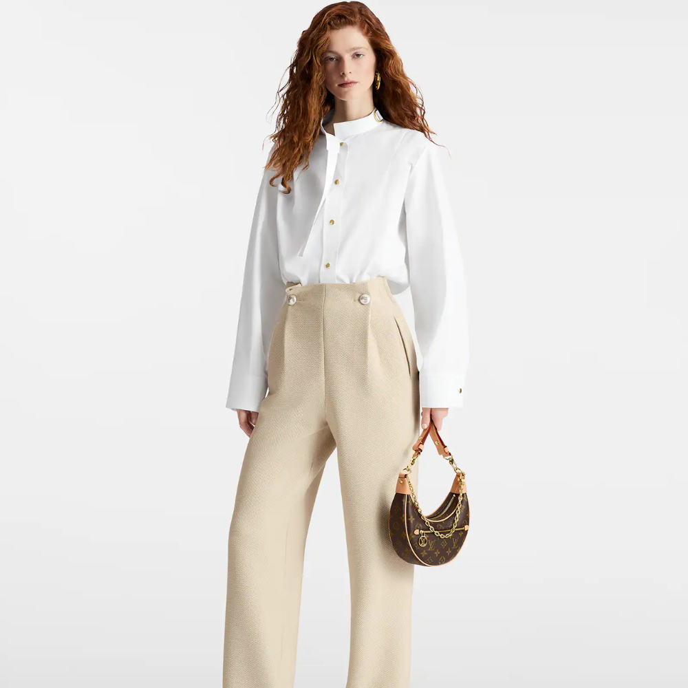 Created by Nicolas Ghesquière for the Cruise 2022 Collection, the Loop handbag features a half-moon silhouette, inspired by the Croissant bag from the House archives. It has a body-friendly, compact shape and a chain for shoulder carry, as well as a cross-body leather strap. The front zip pocket closes with an LV Circle zip pull.