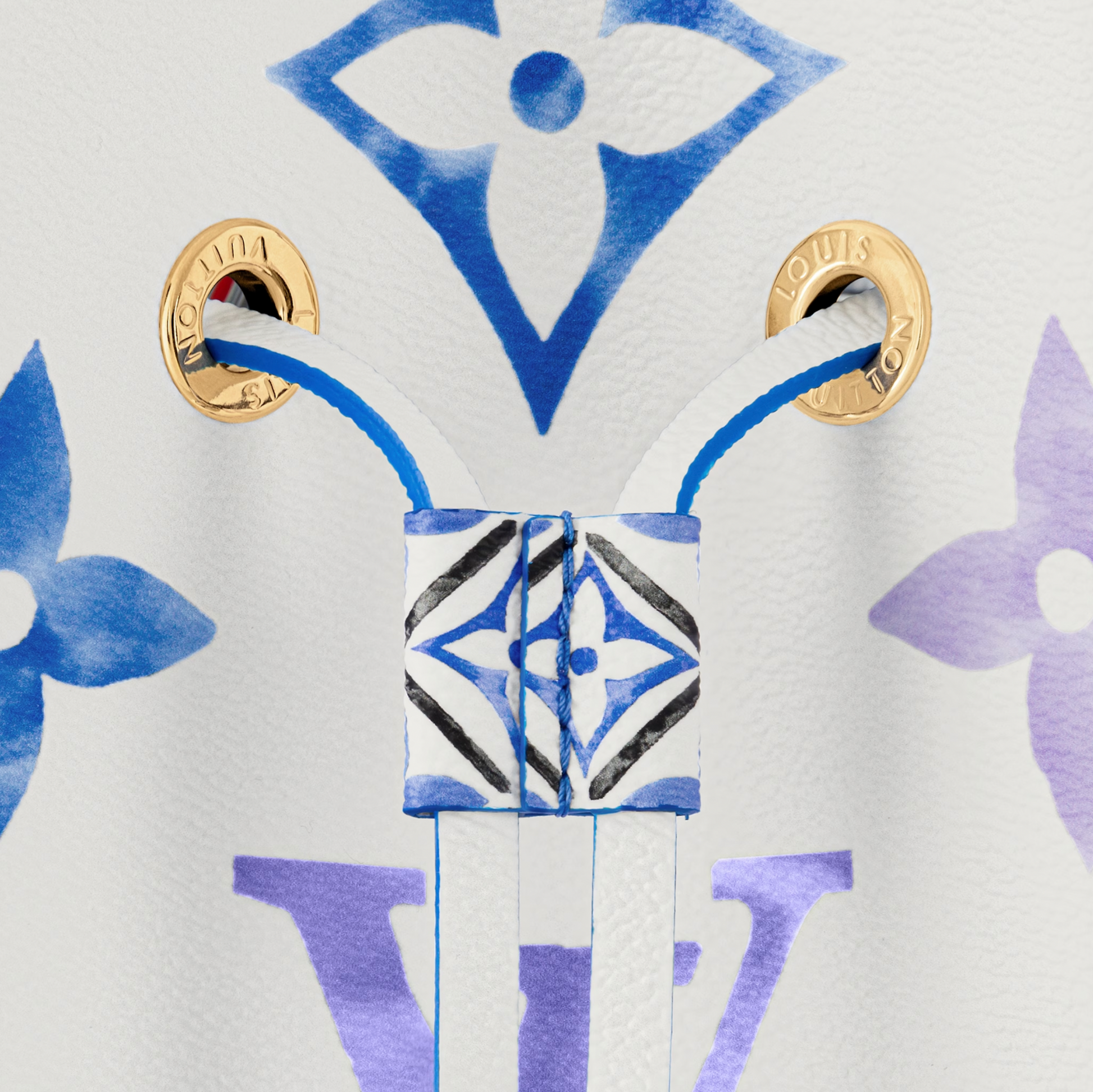 Cream-color canvas with a Giant Monogram print in pastel brings a resort vibe to this NeoNoé bucket bag. The LV's and Monogram Flowers seem to be painted on the canvas in watercolor and explore soft nuances of tone. The NeoNoé closes with a drawstring. Inside there’s a central pocket with a press stud.