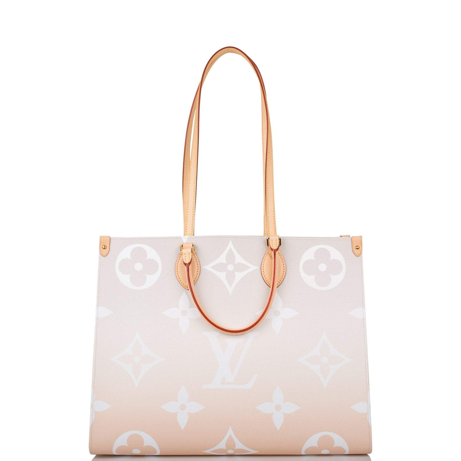 This Onthego GM tote bag is made from colored Monogram Giant canvas and is accessorized with a colorful leather flower charm. Roomy and comfortable to carry thanks to its shoulder straps and rolled leather top handles, this tote is perfect for everyday use. Numerous inside pockets including a zipped flat pocket keep essentials organized.