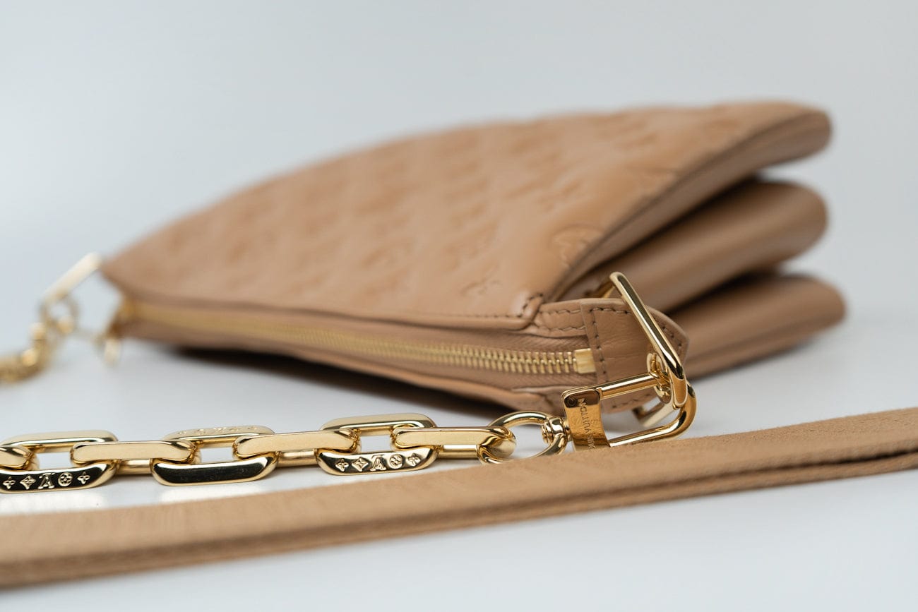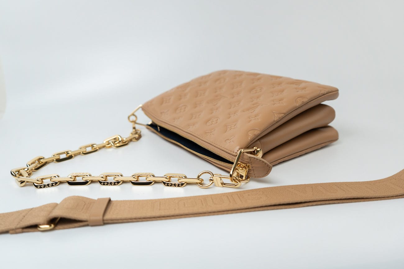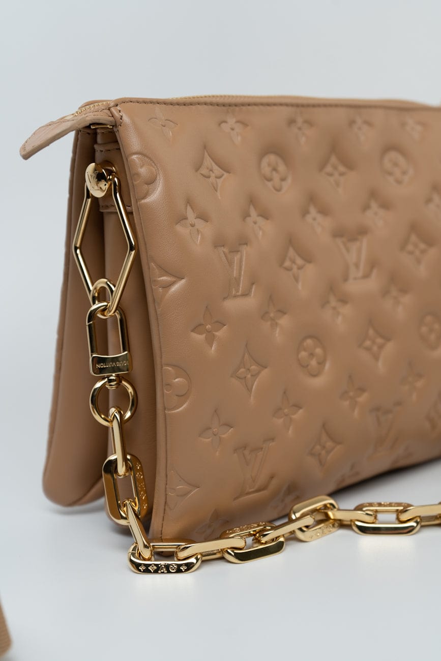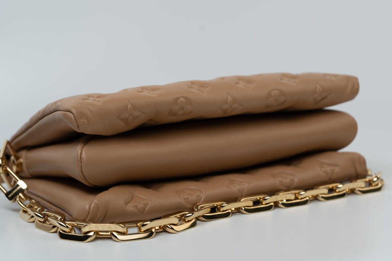 Louis Vuitton Monogram Coussin PM Camel Lambskin Embossed