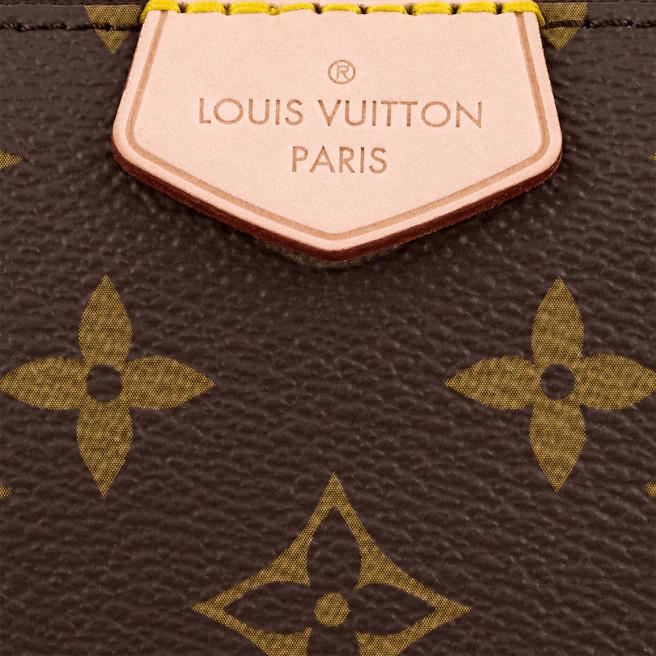The Multi Pochette Accessoires is a hybrid cross-body bag with multiple pockets and compartments that brings together a Pochette Accessoires, a Mini Pochette Accessoires and a Round Coin Purse. Fashioned from Monogram canvas with a mini Monogram pattern on the sides of the two pochettes, it has both a removable gold-tone chain and an adjustable Louis Vuitton inscribed Jacquard strap for multiple carrying options.