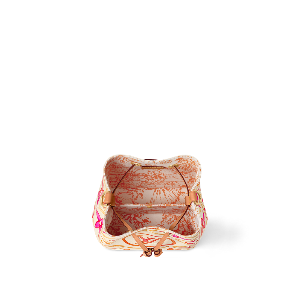 This adorable little bucket bag, the Néonoé BB in Monogram Tiles coated canvas, looks as good carried by hand as worn on the shoulder. The Monogram motif, treated in subtle pastel nuances, features the LV Circle in the center of the bag—the printed textile lining pairs perfectly with the canvas pattern.