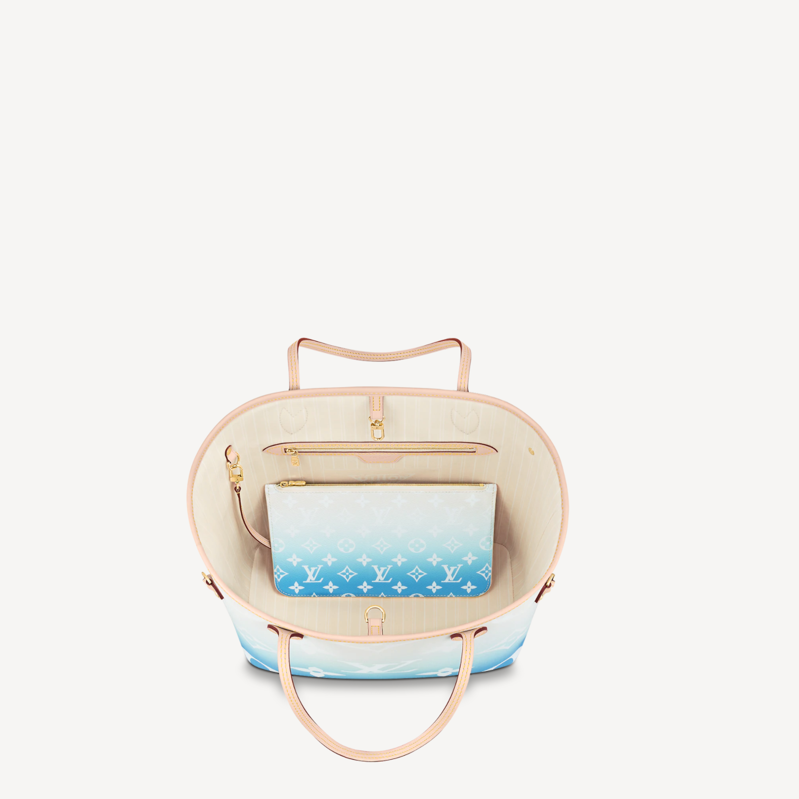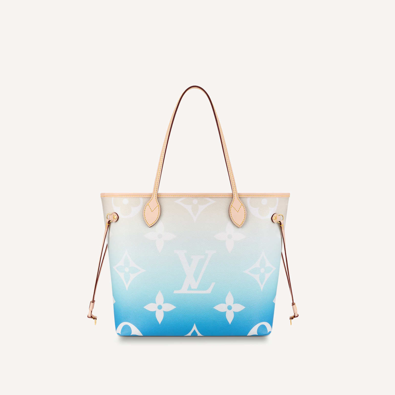 Characteristics: This summery Neverfull MM tote bag is made from Monogram Giant canvas in a gradient pastel colorway and is accessorized with a leather flower charm. The bag’s side laces tighten for a sleek silhouette or loosen for a more casual look. Its interior pouch can be removed and carried used as a clutch while its thin handles slip comfortably over the shoulder or arm.