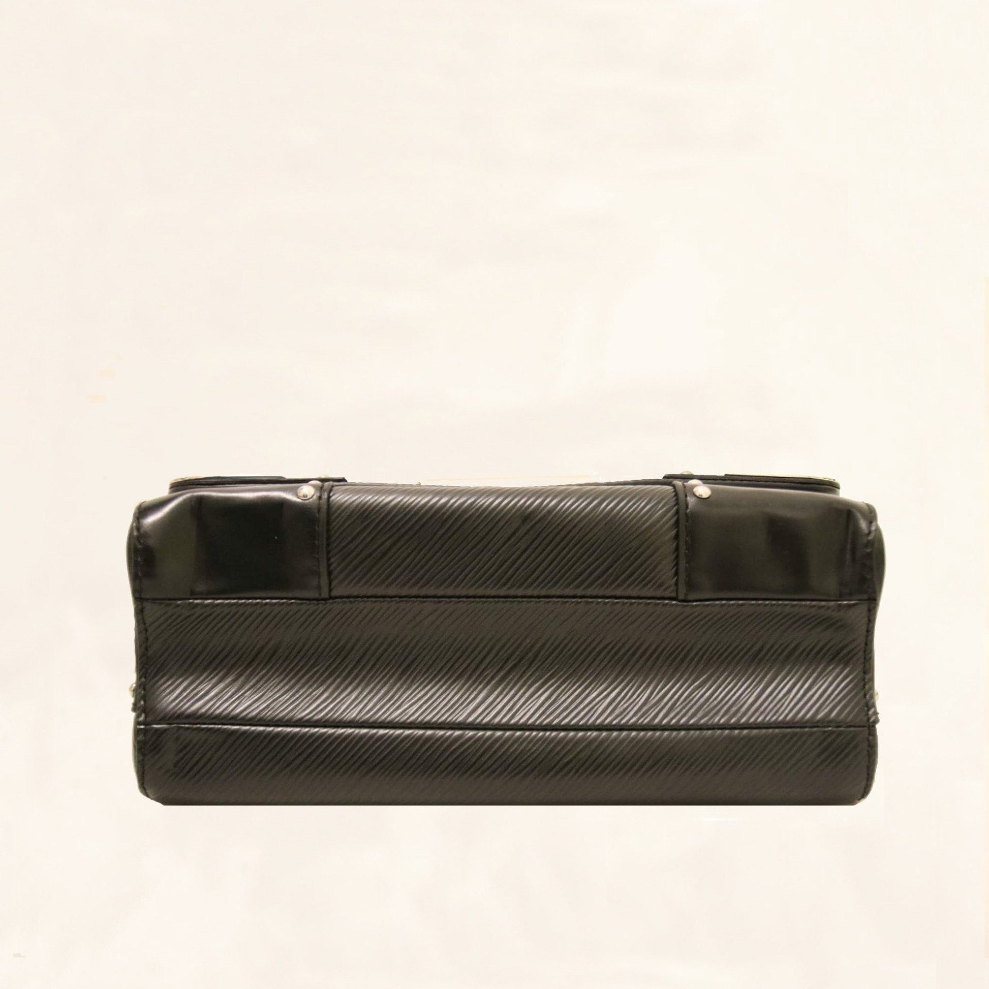 microfiber lining. It has a single flat shoulder strap, two pockets and signature LV twist-lock closure at front. The front is embellished with overstitched corners adorned with studs and metallic plates.