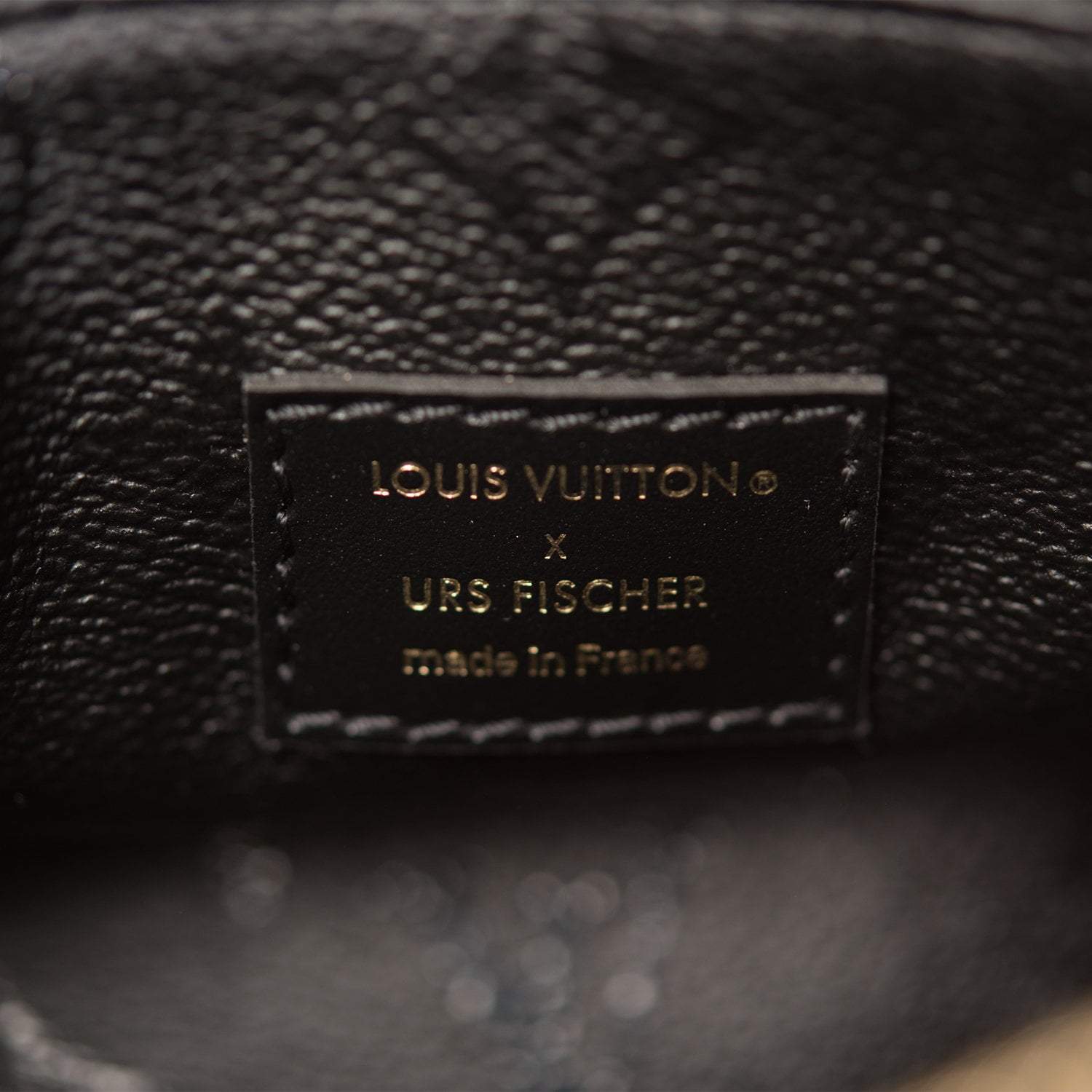 This limited edition Speedy Bandouliere 25 by Urs Fischer is in black coated canvas with gold tone hardware and features red tufted monogram, red leather top handles, trim and removable crossbody strap with gold tone hardware, removable lock and zip top closure.