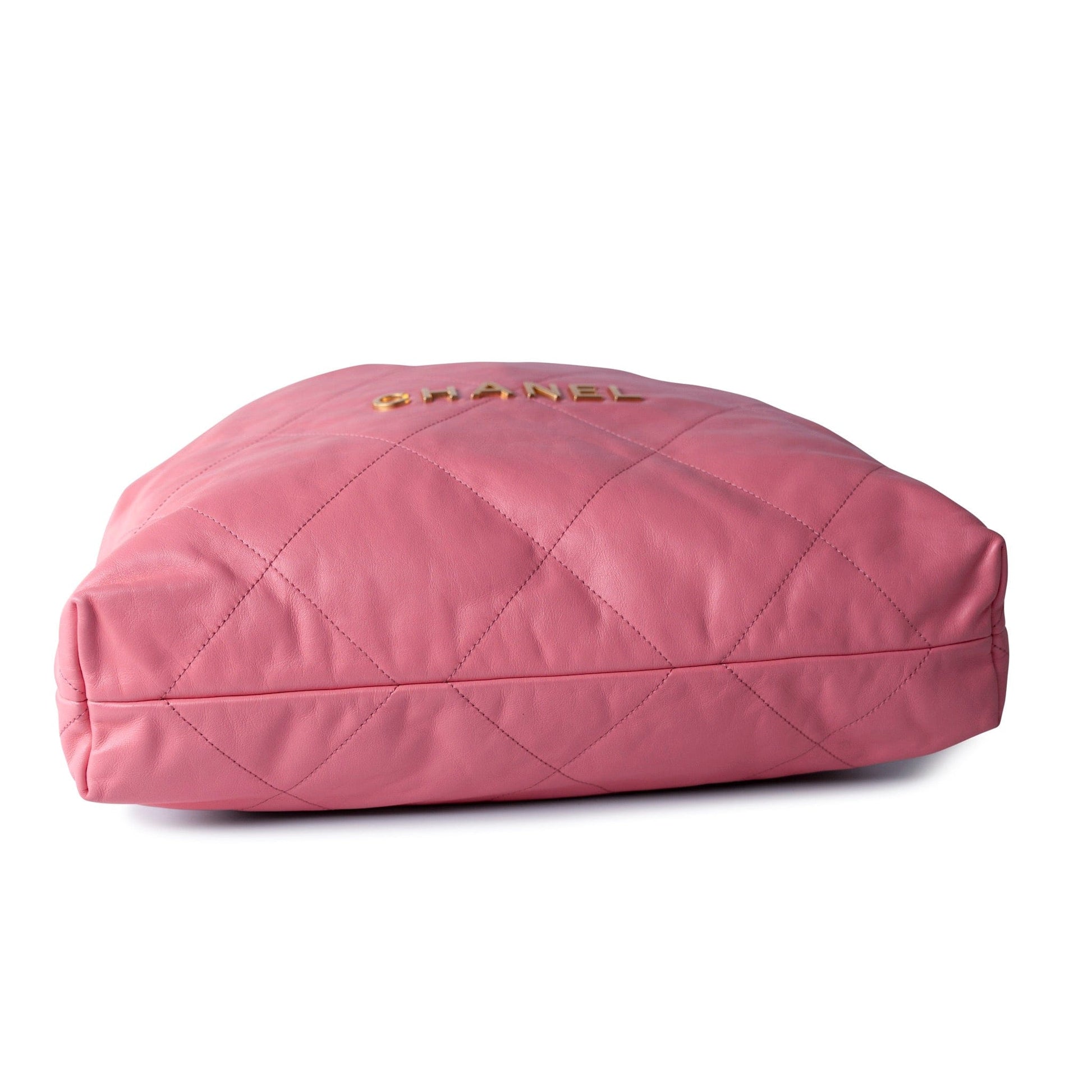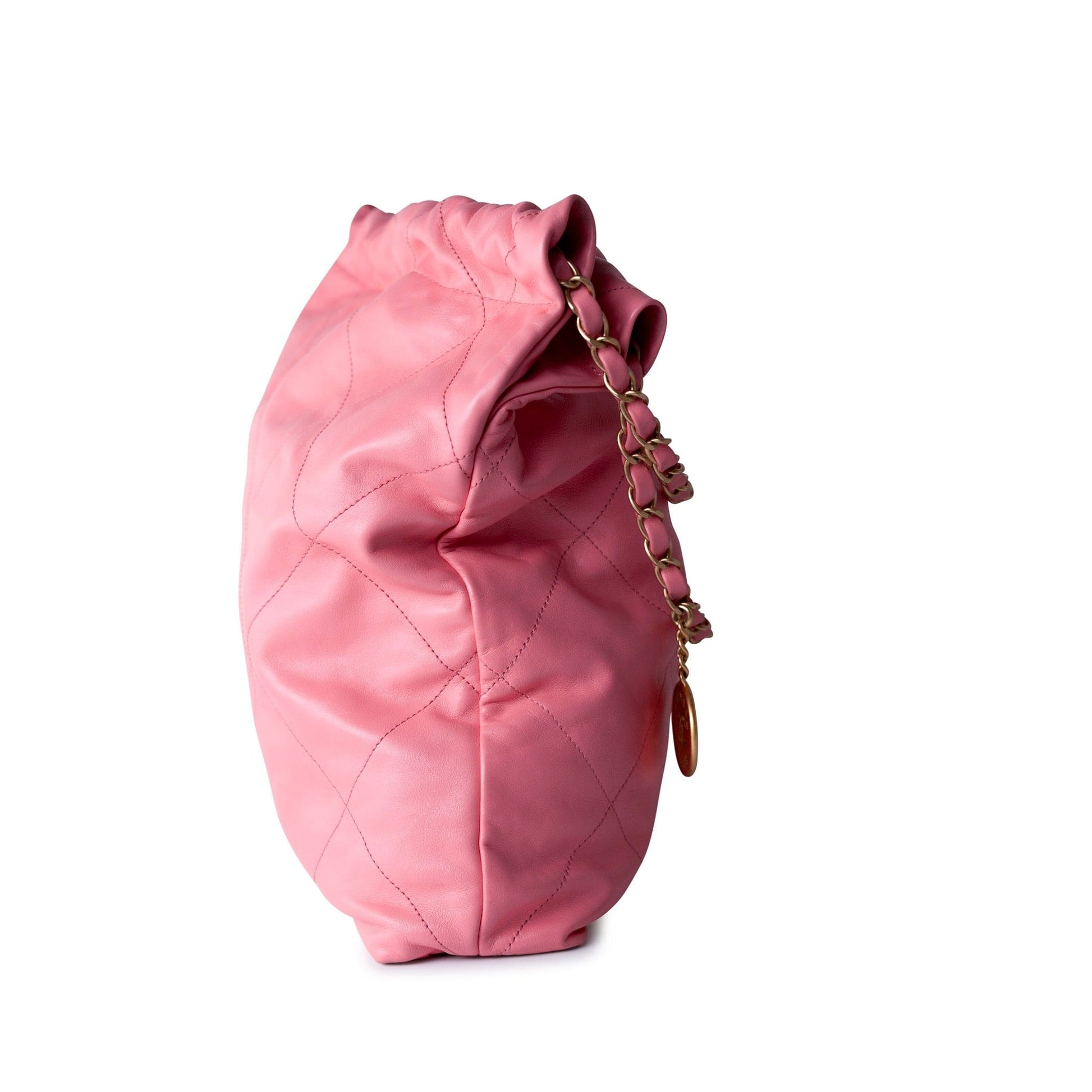Medium Pink Calfskin Quilted 22 Hobo Bag Antique Gold Hardware