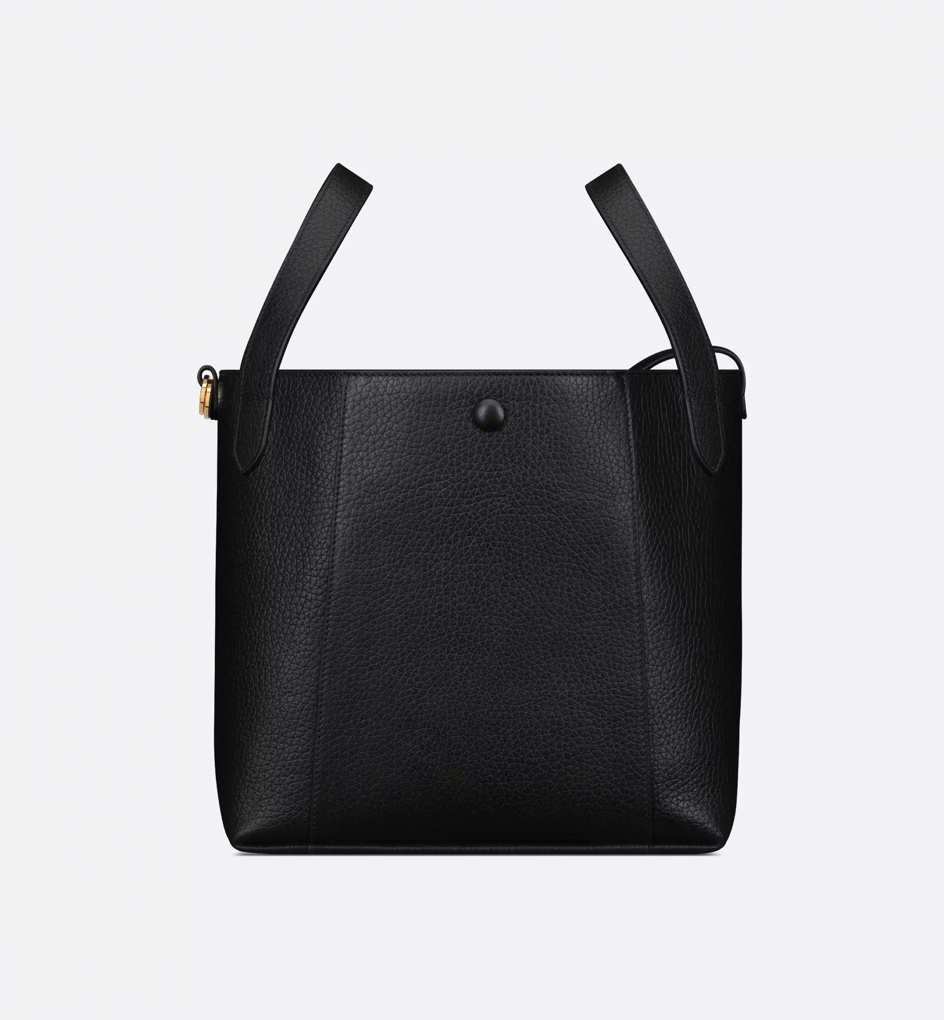 New for Summer 2025, the Signature bucket bag showcases a supple silhouette and versatile design. Crafted in black grained calfskin, it is adorned with an antique gold-finish metal Christian Dior Paris signature on the front. The spacious compartment, equipped with a snap and tab to secure the essentials, is completed by a slip pocket. The leather top handles and adjustable, removable strap allow the medium bag to be effortlessly carried by hand, worn over the shoulder or crossbody.