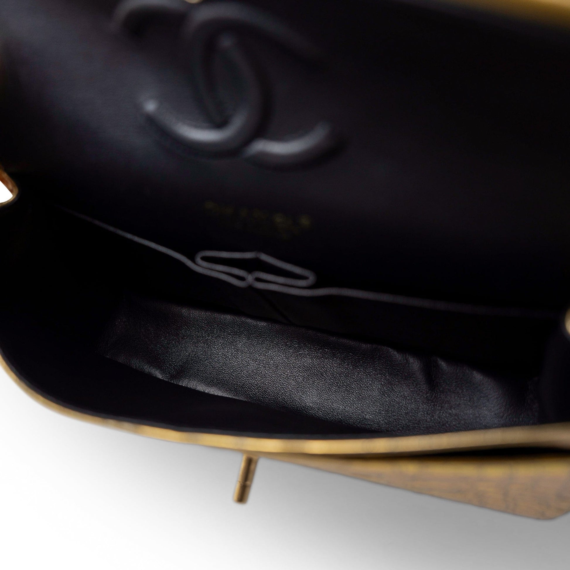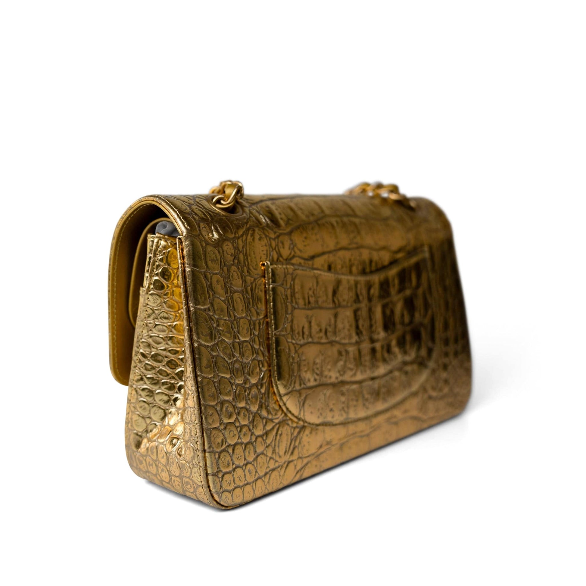Metallic Calfskin Crocodile Embossed Classic Flap Medium Antique Gold Hardware