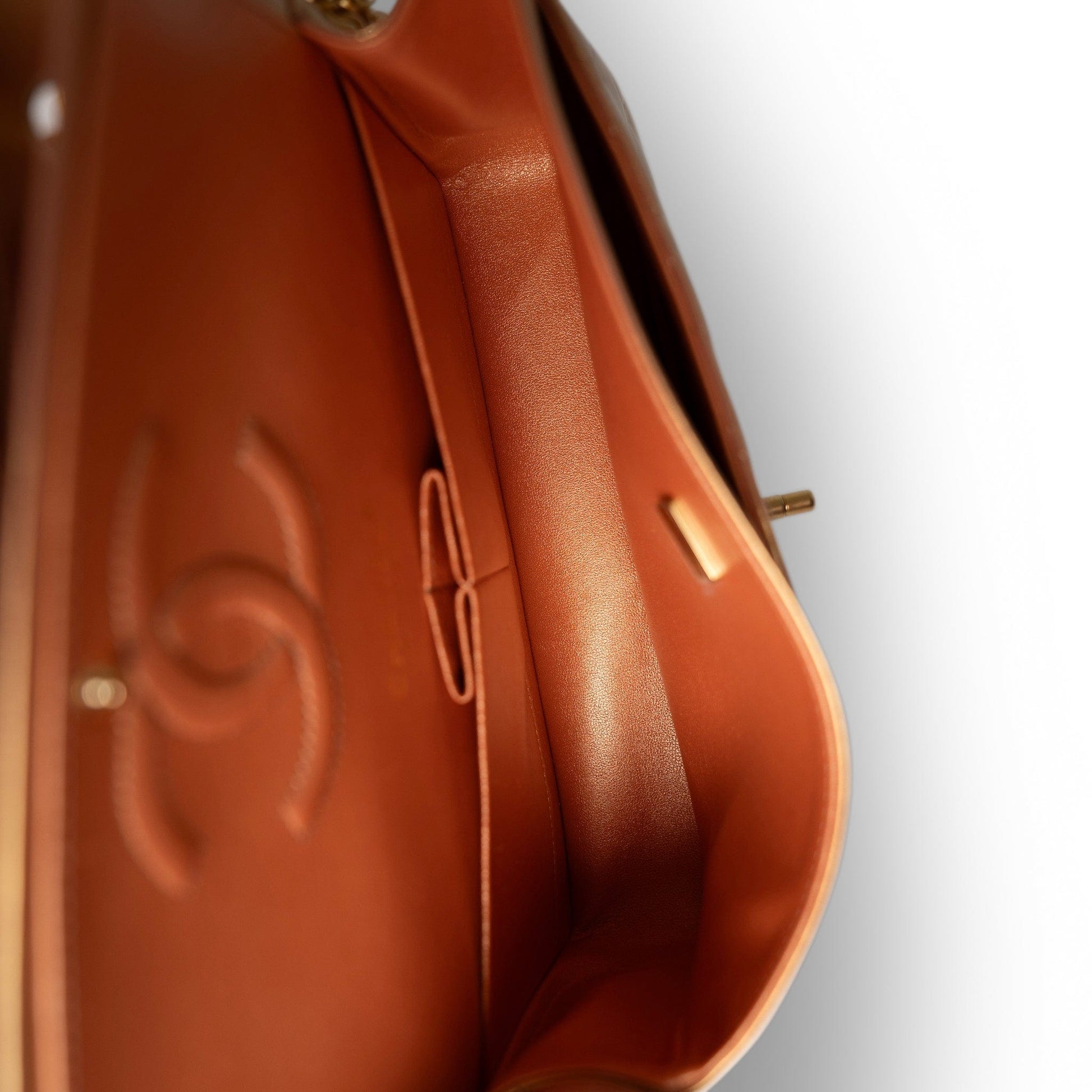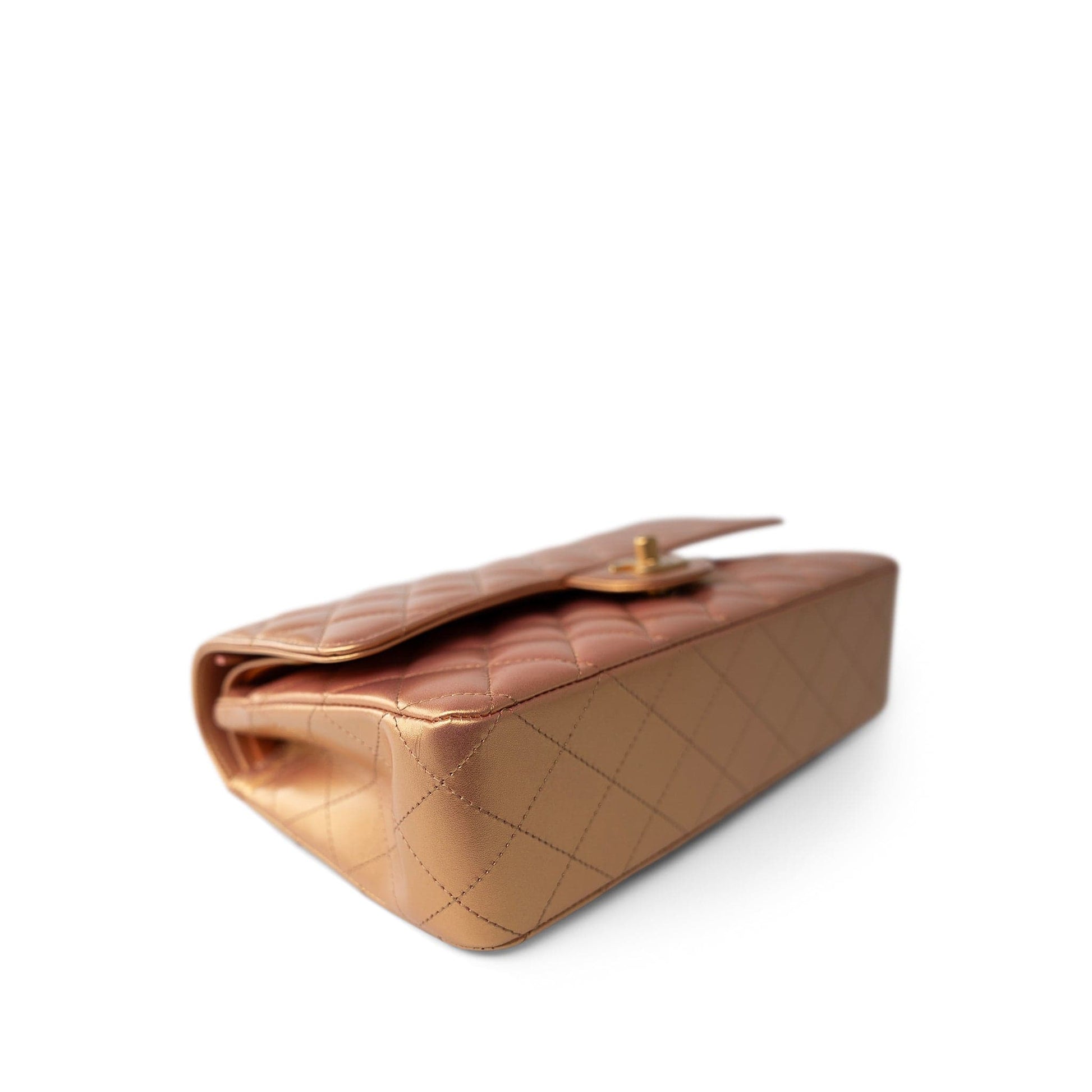 Metallic Gold Iridescent Calfskin Quilted Classic Flap Medium Aged Gold Hardware