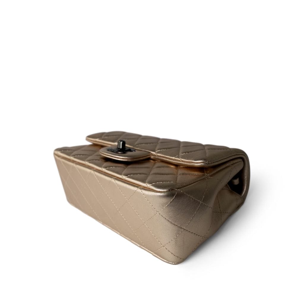 Metallic Gold Lambskin Quilted Mini Rectangular Flap