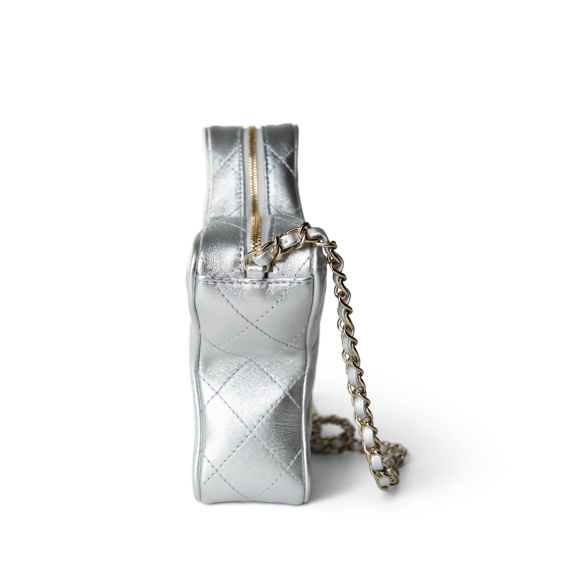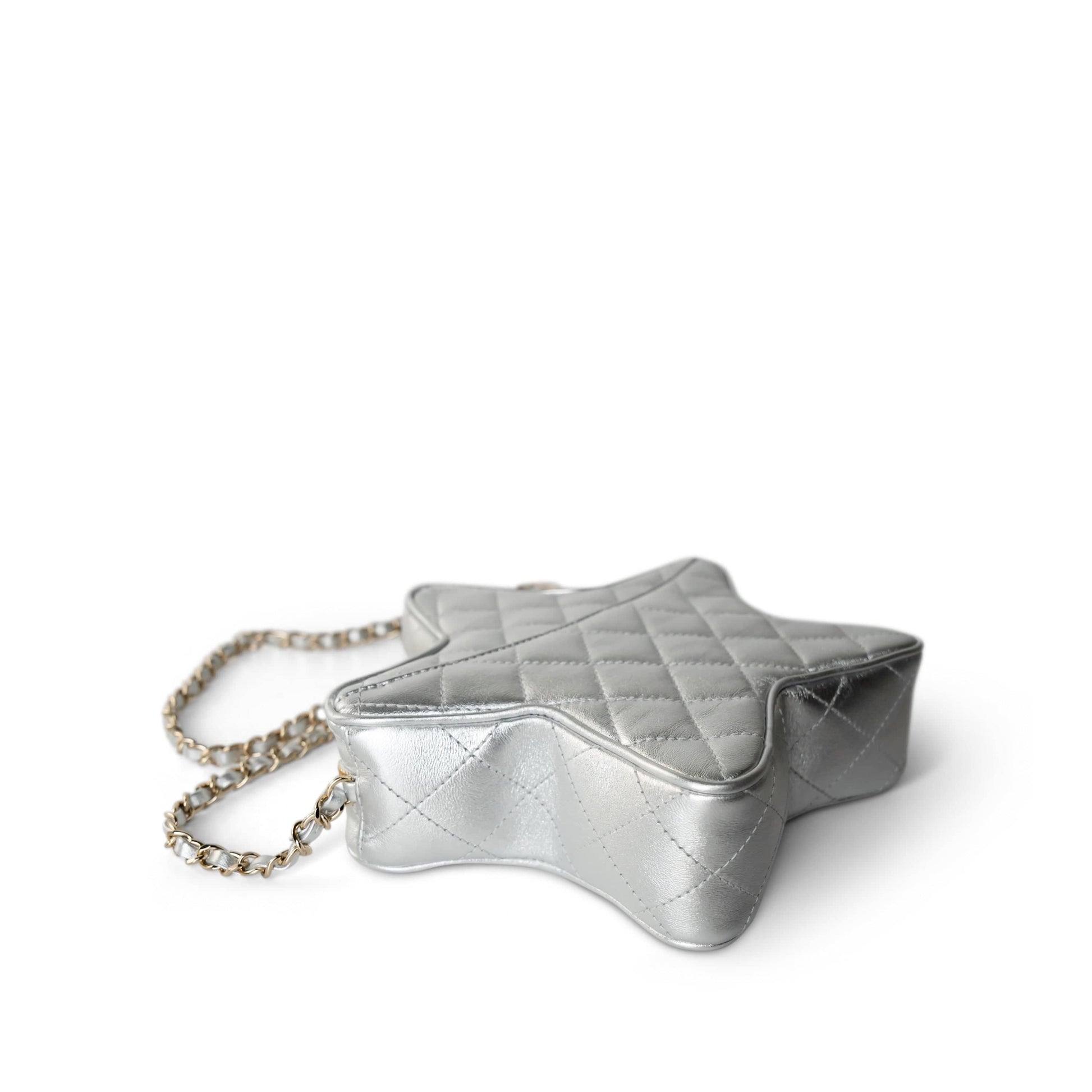 24C Metallic Silver Lambskin Quilted Star Bag Light Gold Hardware