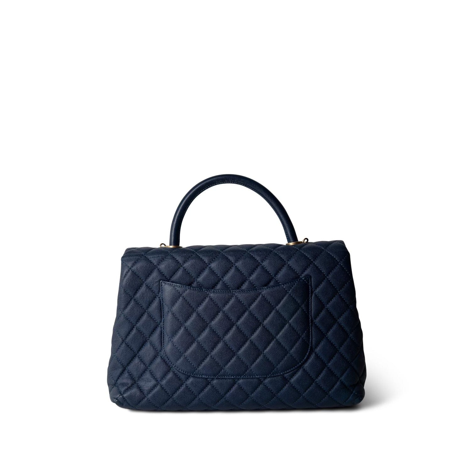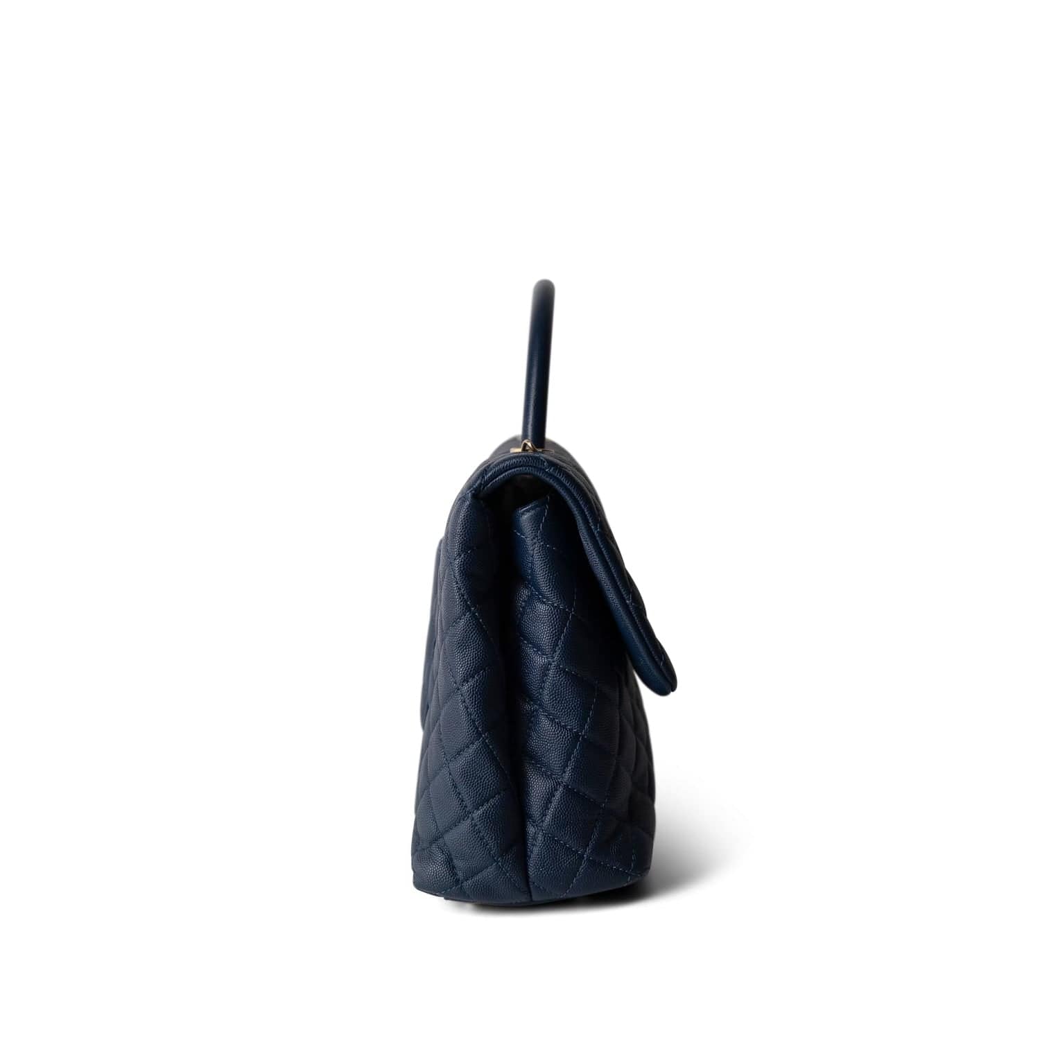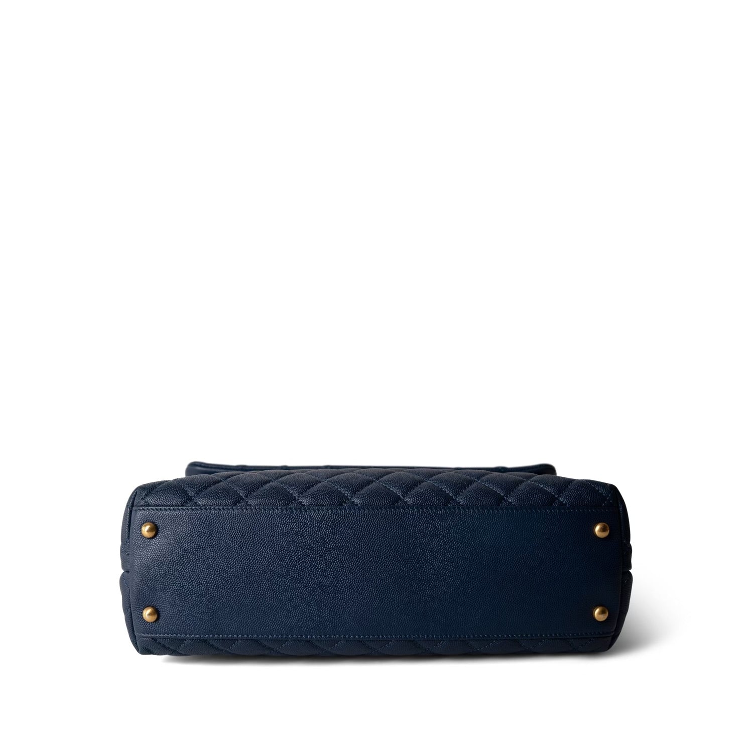 Navy Caviar Quilted Coco Handle Large Aged Gold Hardware