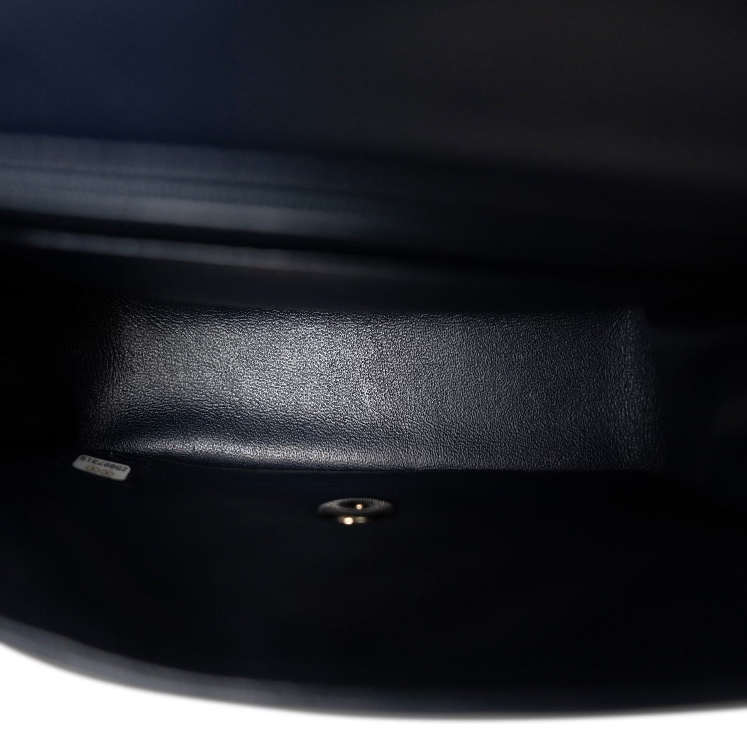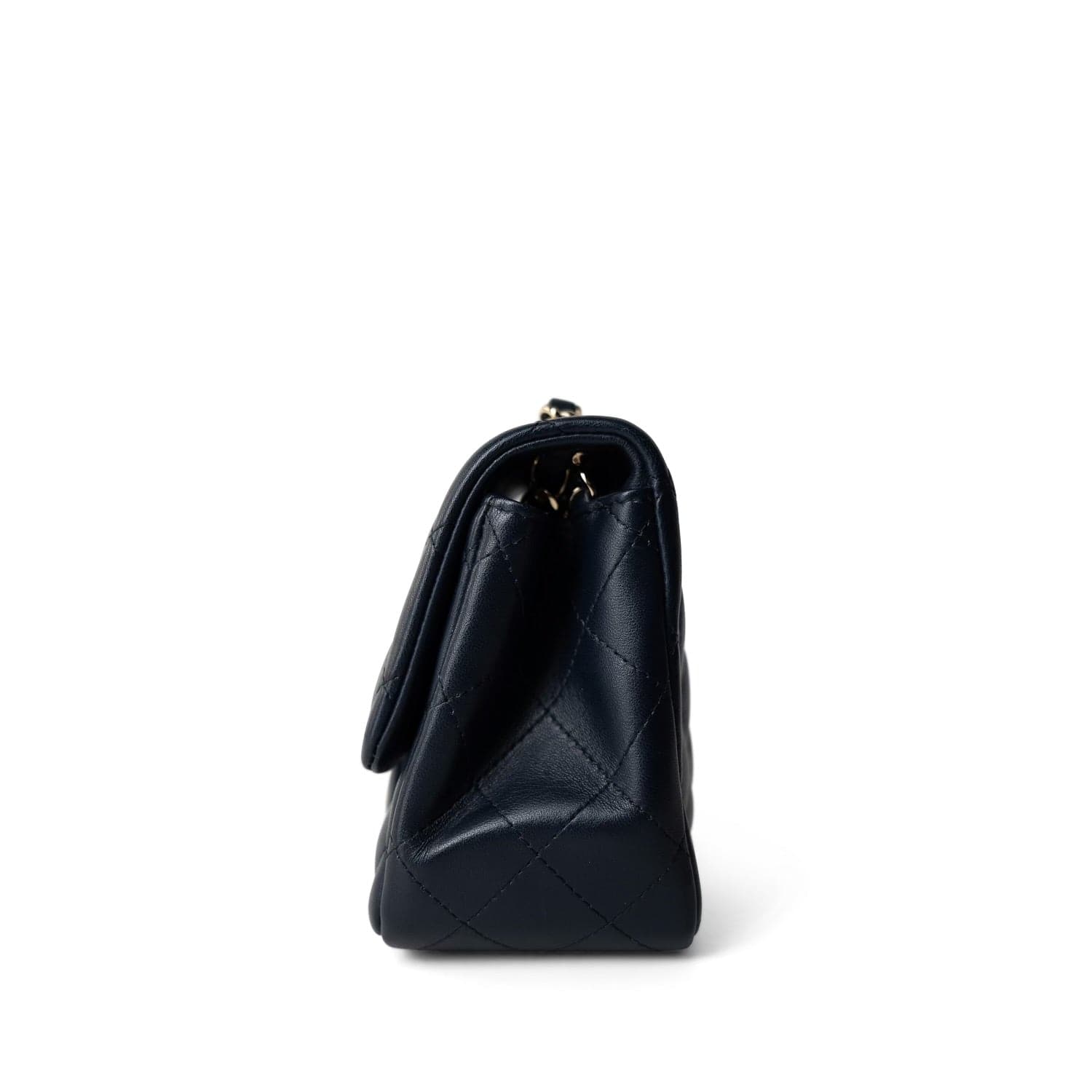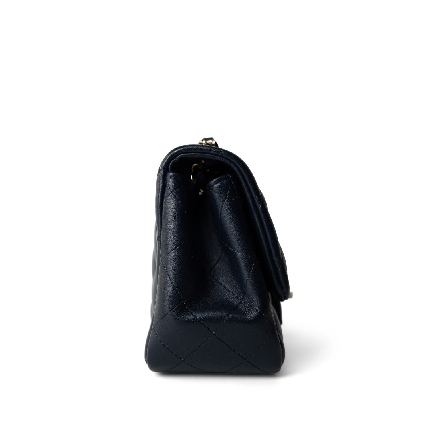 Navy Lambskin Quilted Mini Square Flap Bag LGHW