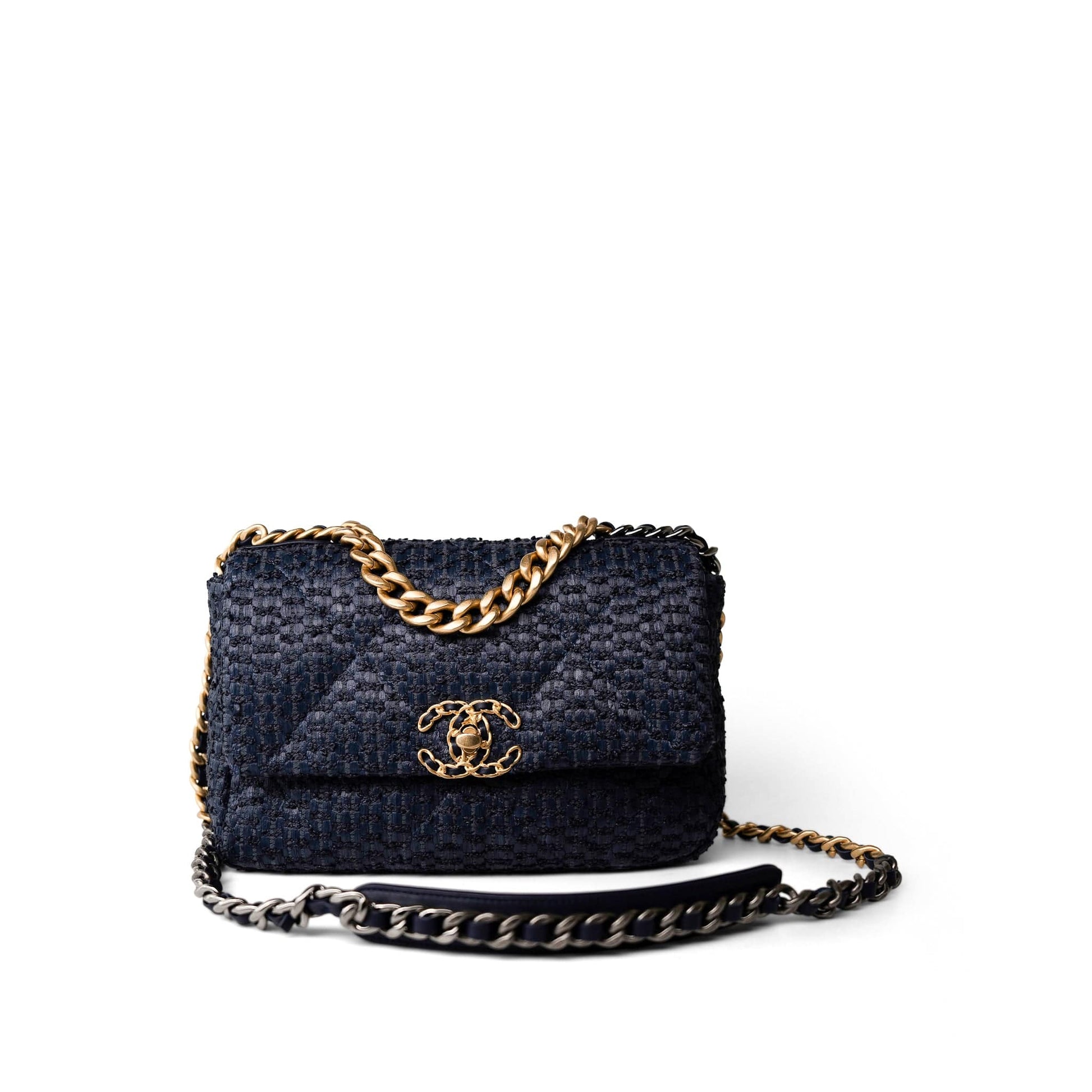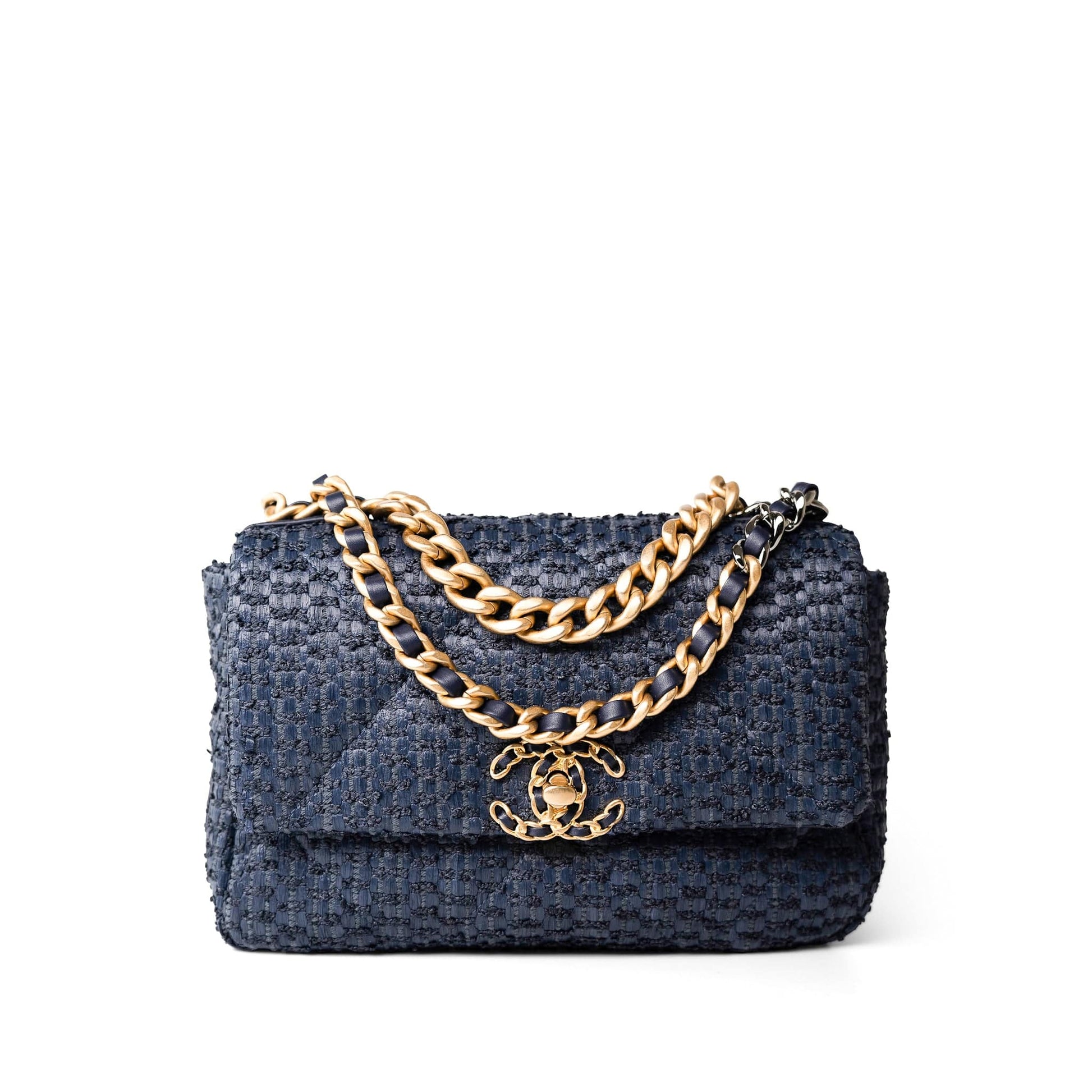 Navy Raffia Quilted 19 Flap Small Mixed Hardware