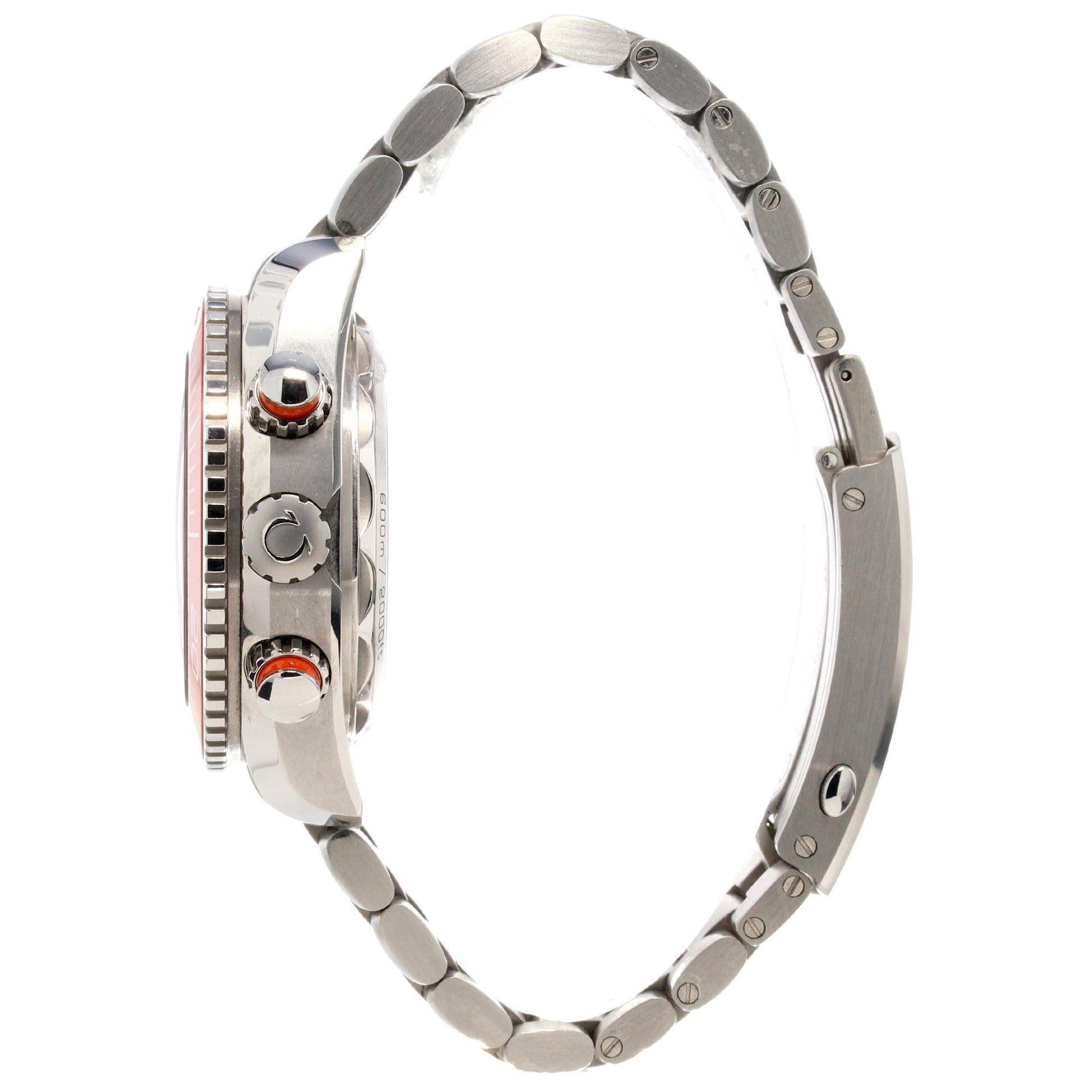 Powered by the Omega 9900 Caliber automatic chronograph movement with a 60 hour power reserve.