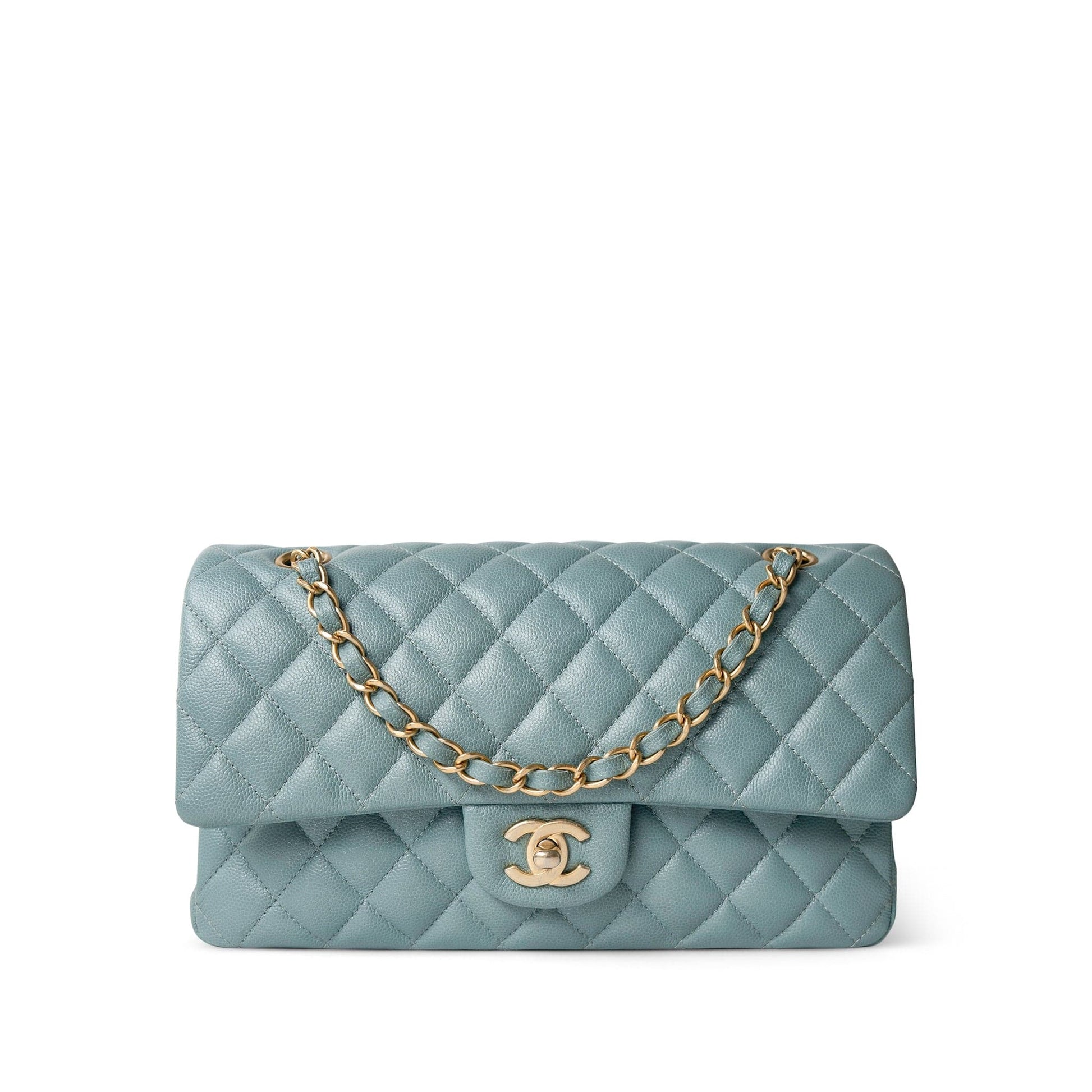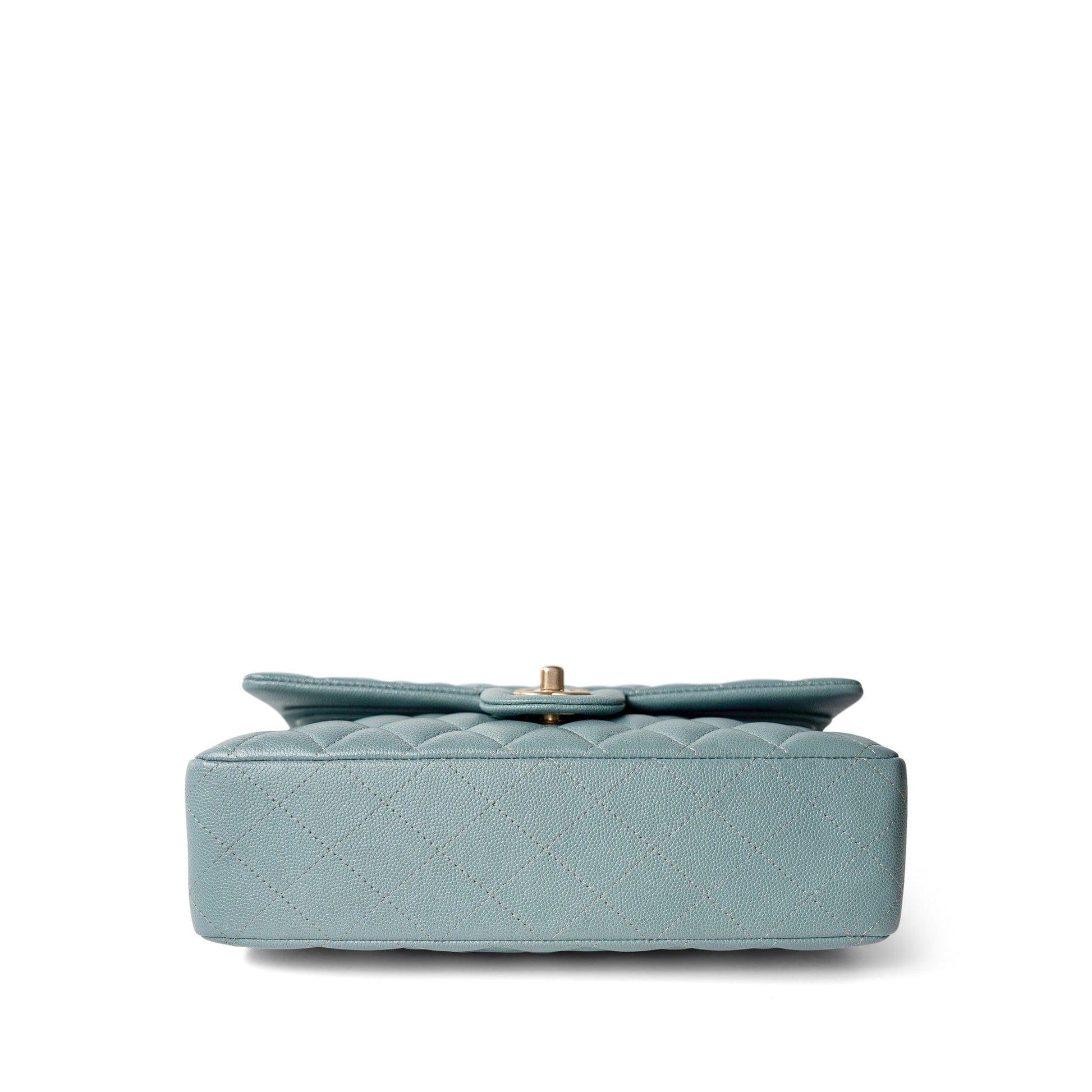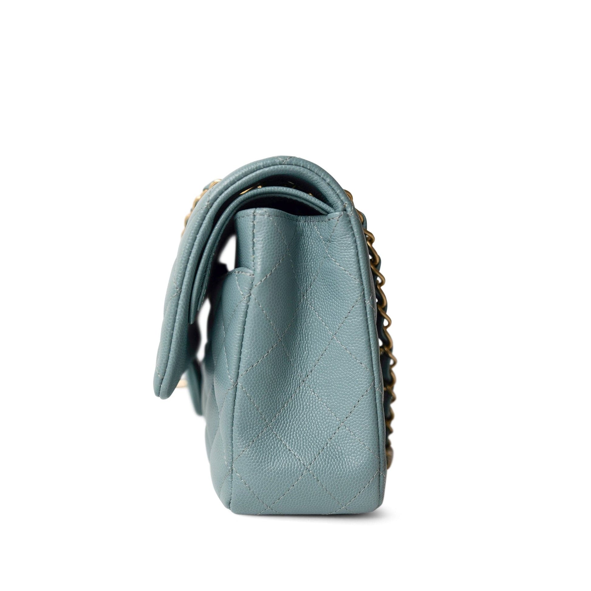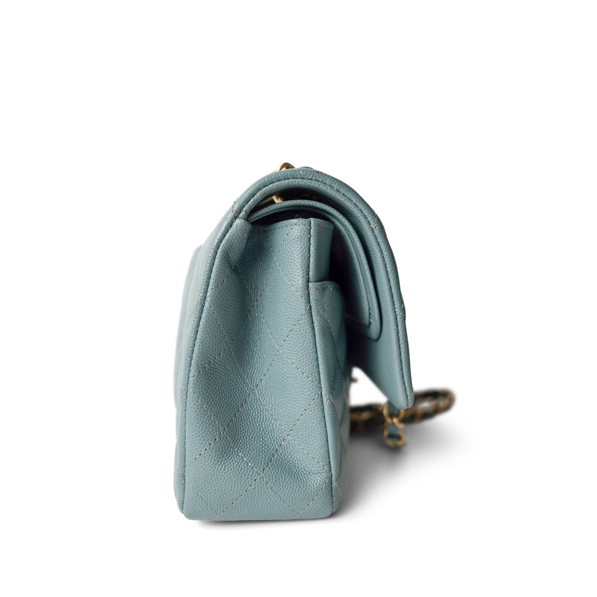 18C Pearly Light Blue Caviar Quilted Classic Flap Medium Antique Gold Hardware