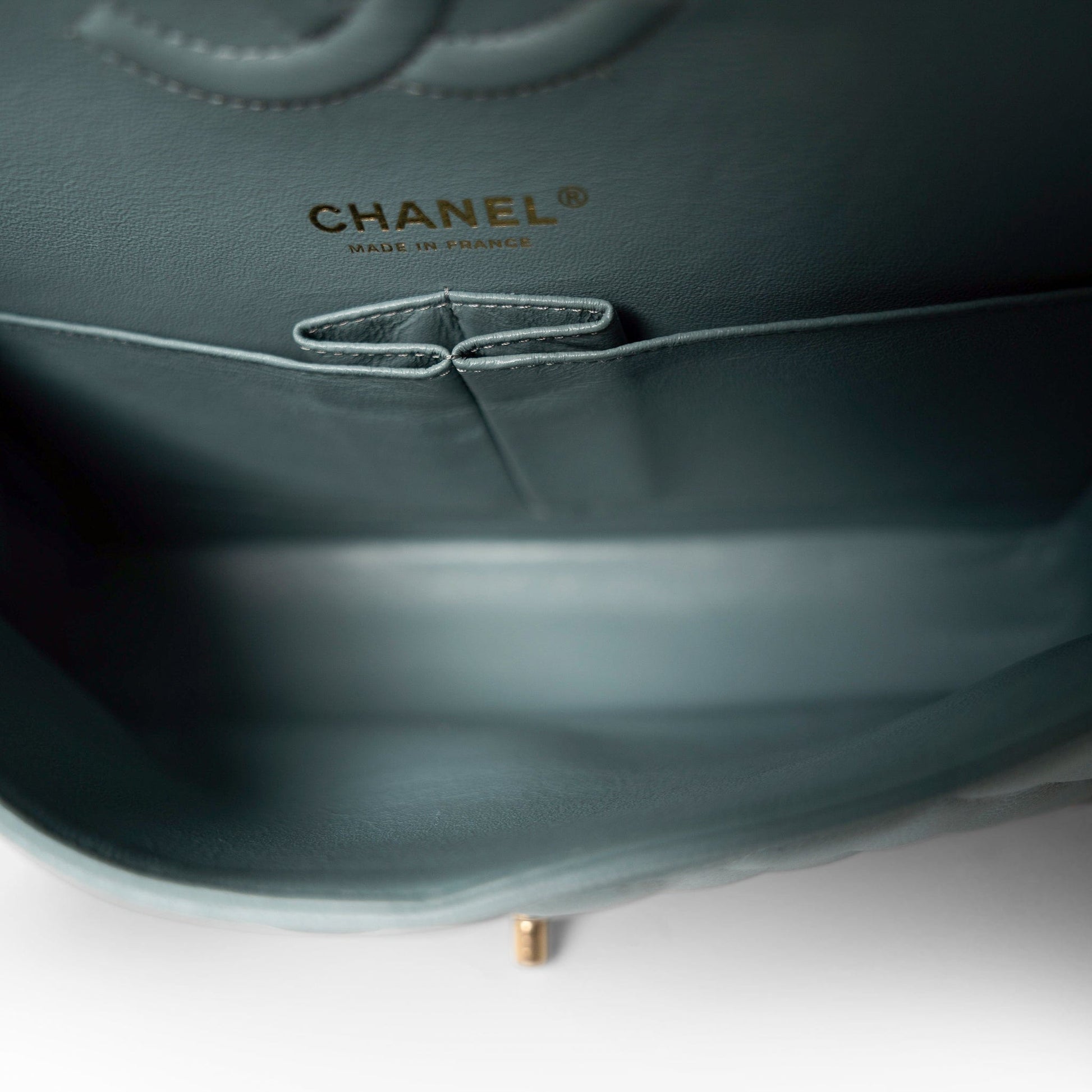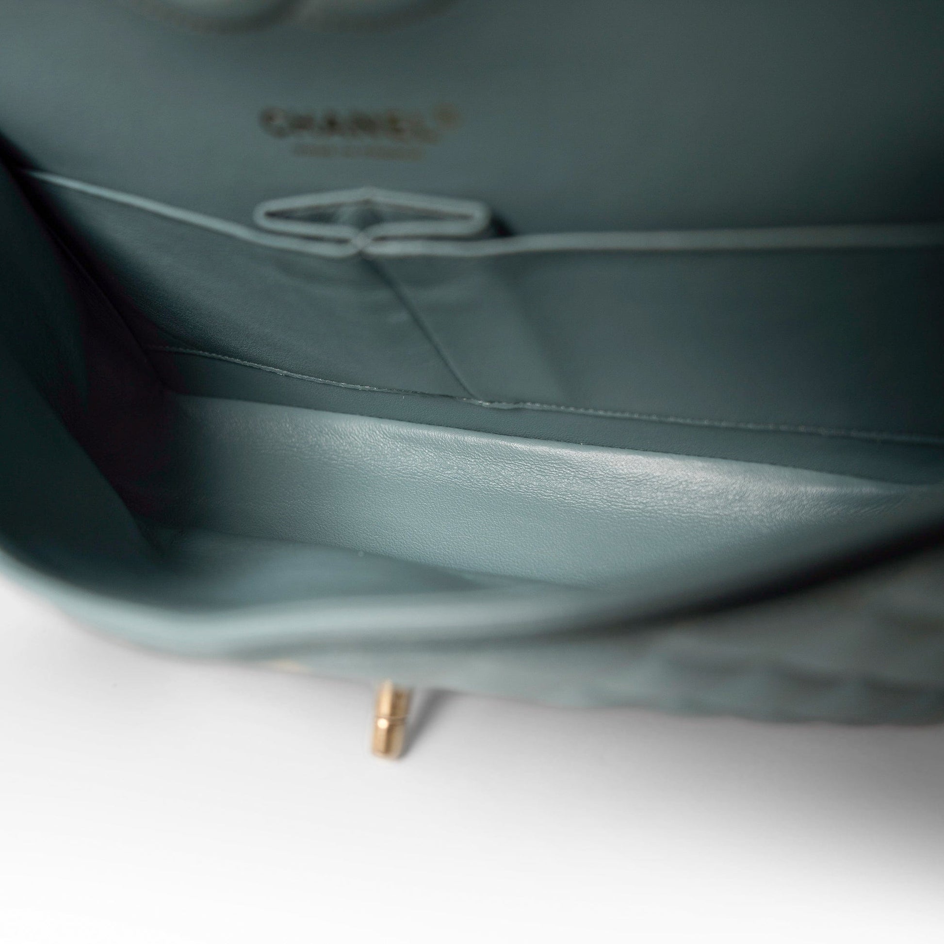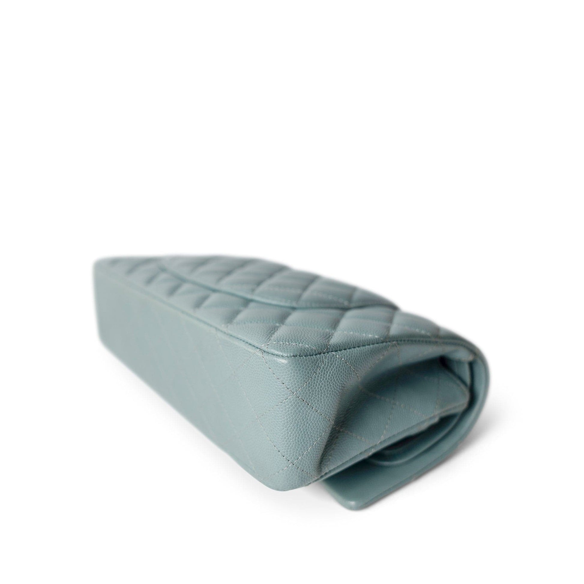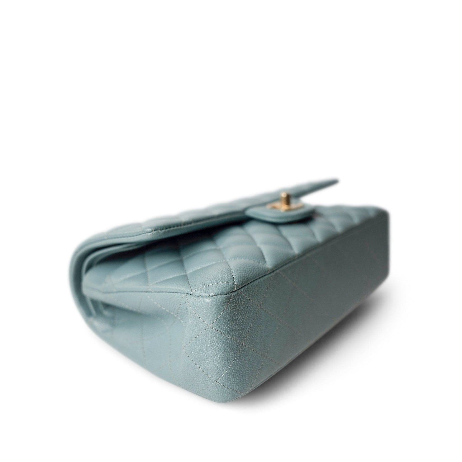 18C Pearly Light Blue Caviar Quilted Classic Flap Medium Antique Gold Hardware