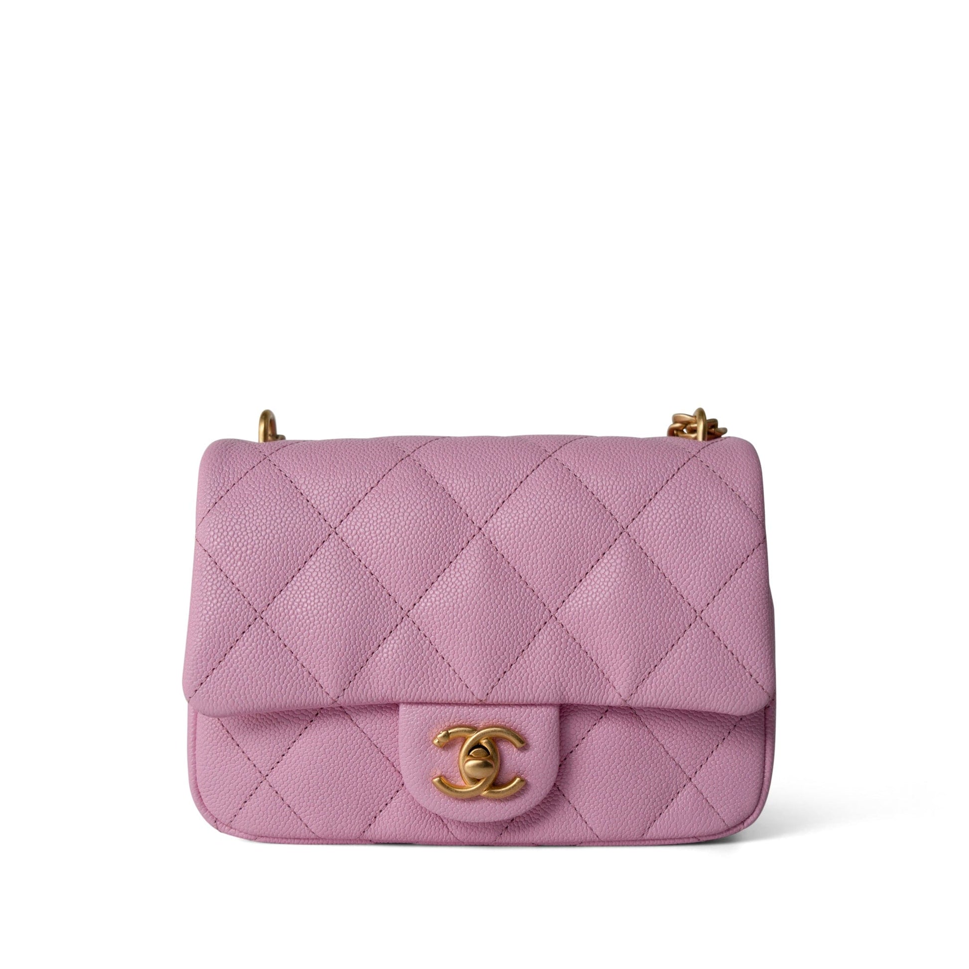 Pink Caviar Quilted Sweetheart Mini Flap Antique Gold Hardware