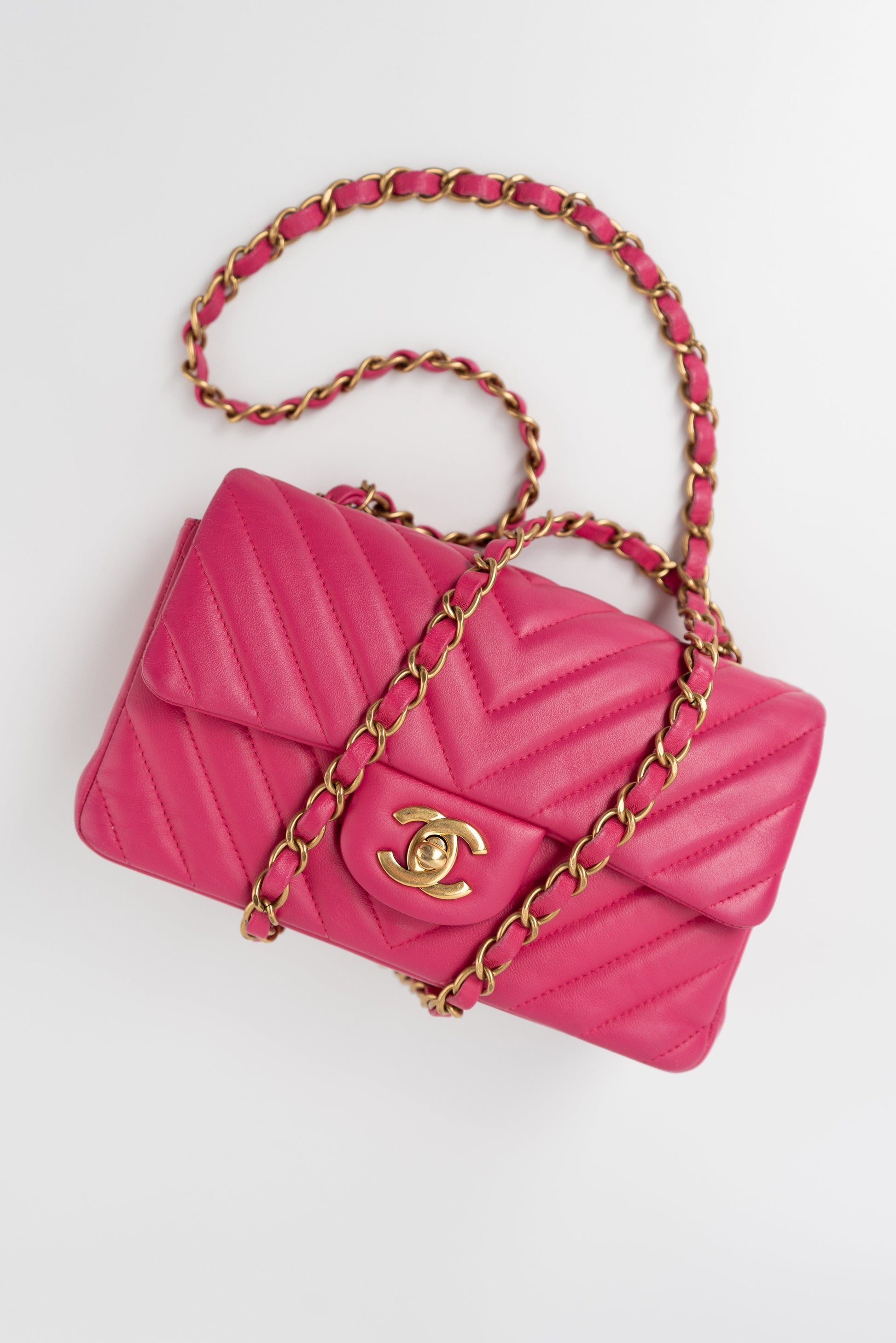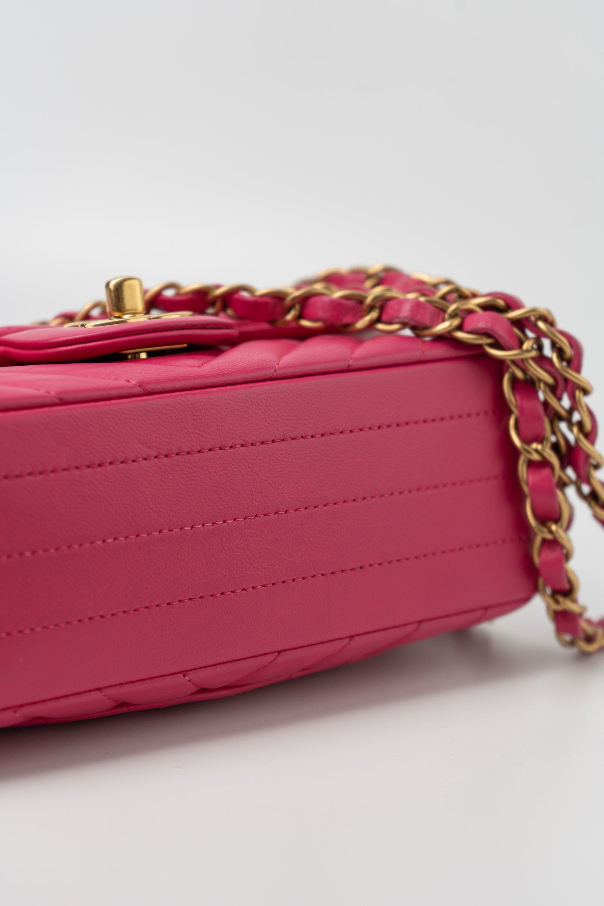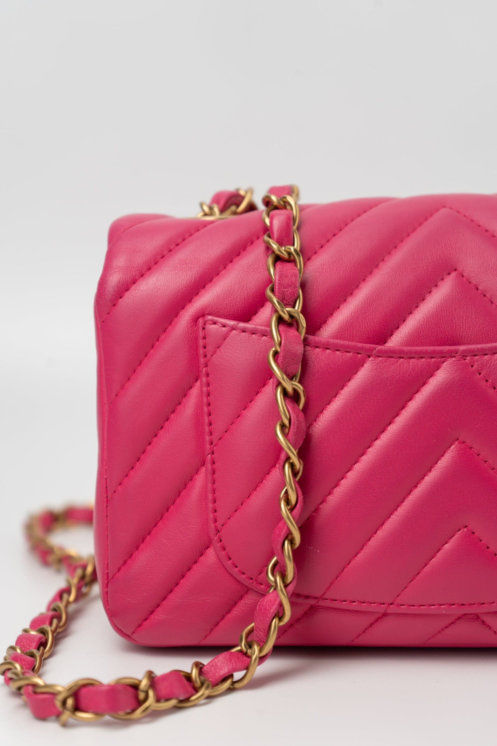 15s Pink Lambskin Chevron Mini Rectangular Flap Aged Gold Hardware