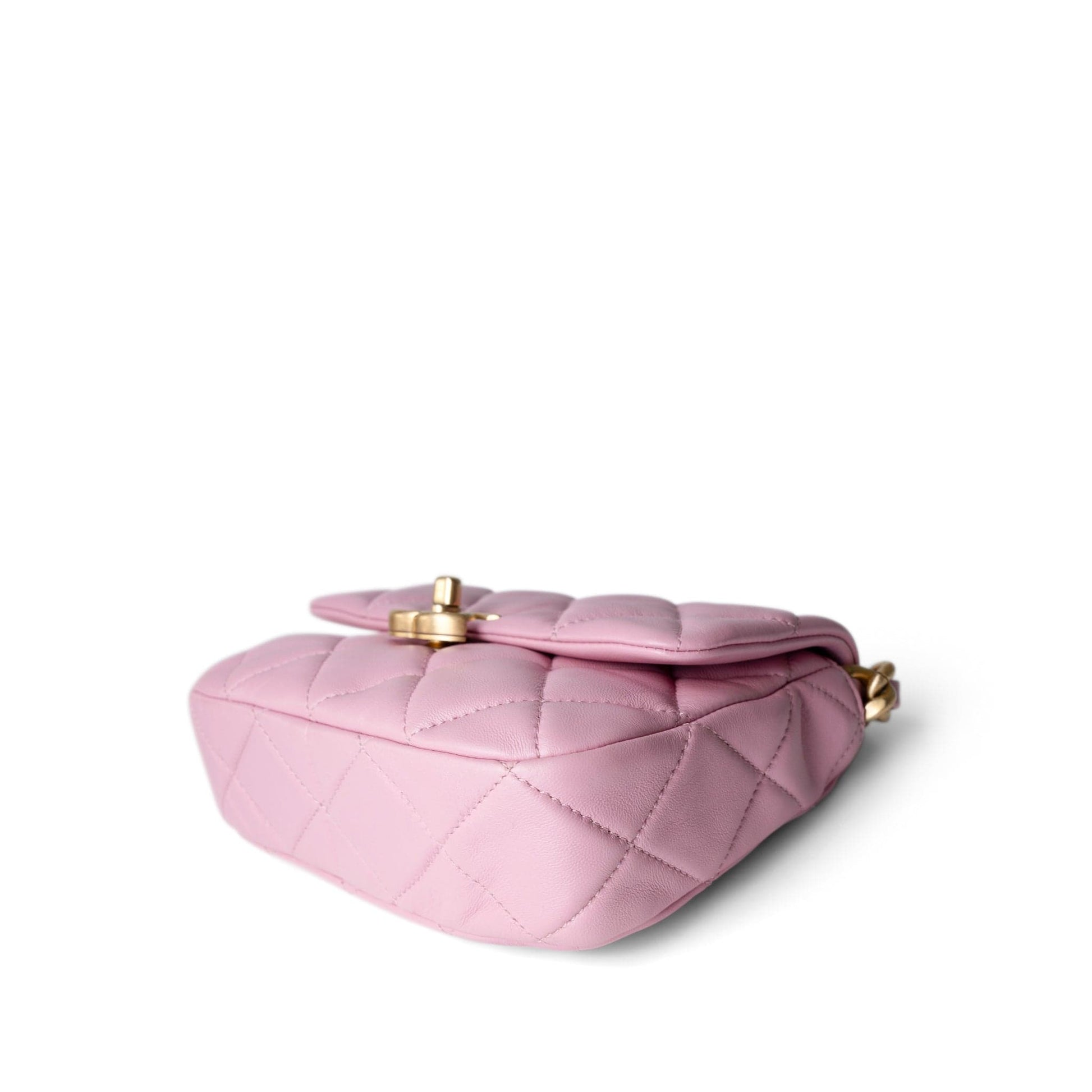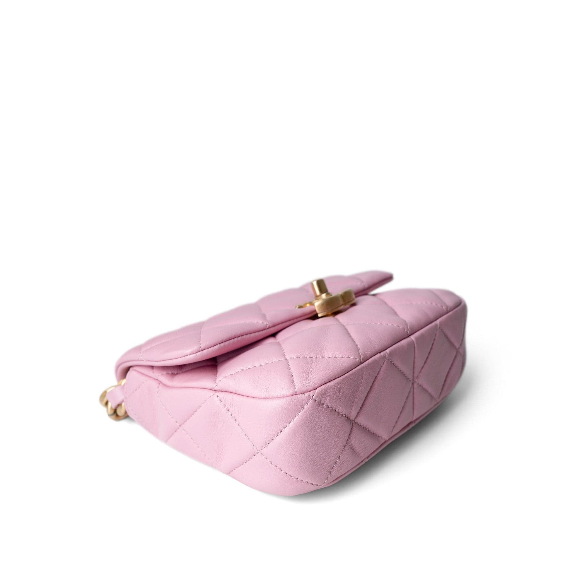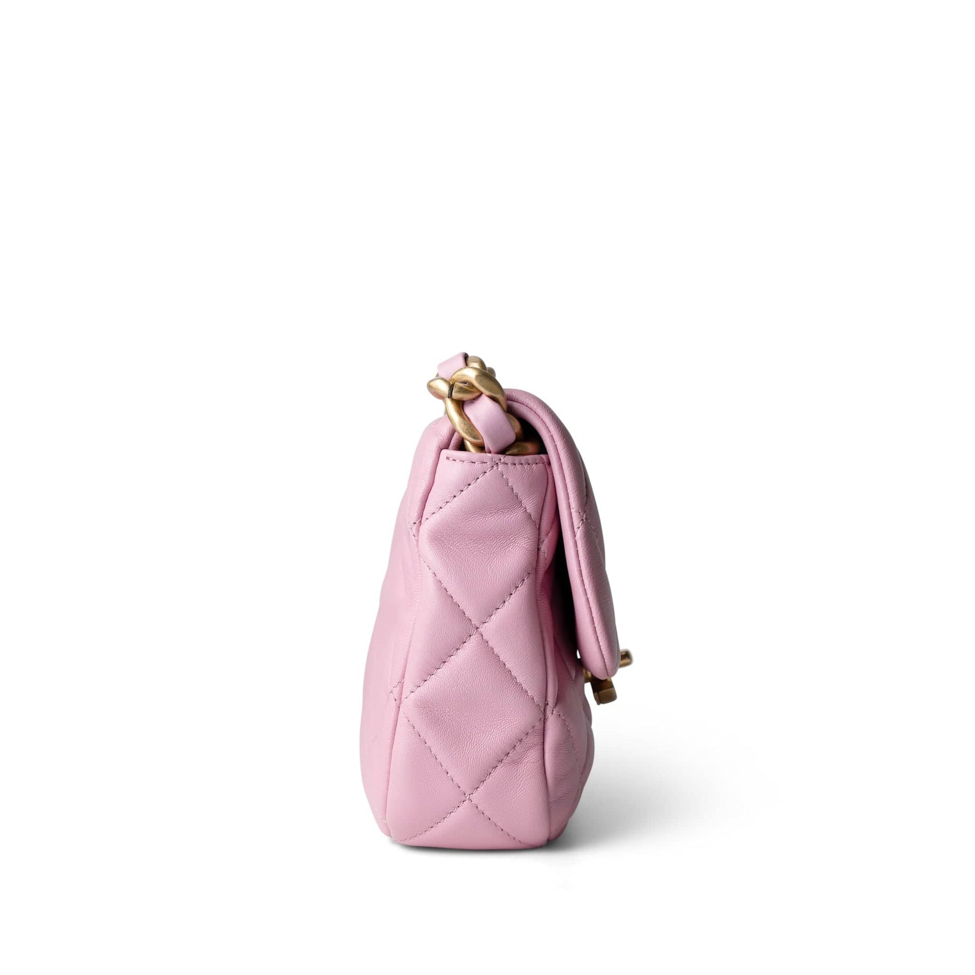 Pink Mini Lacquered Chain Lambskin Quilted Flap Aged Gold Hardware