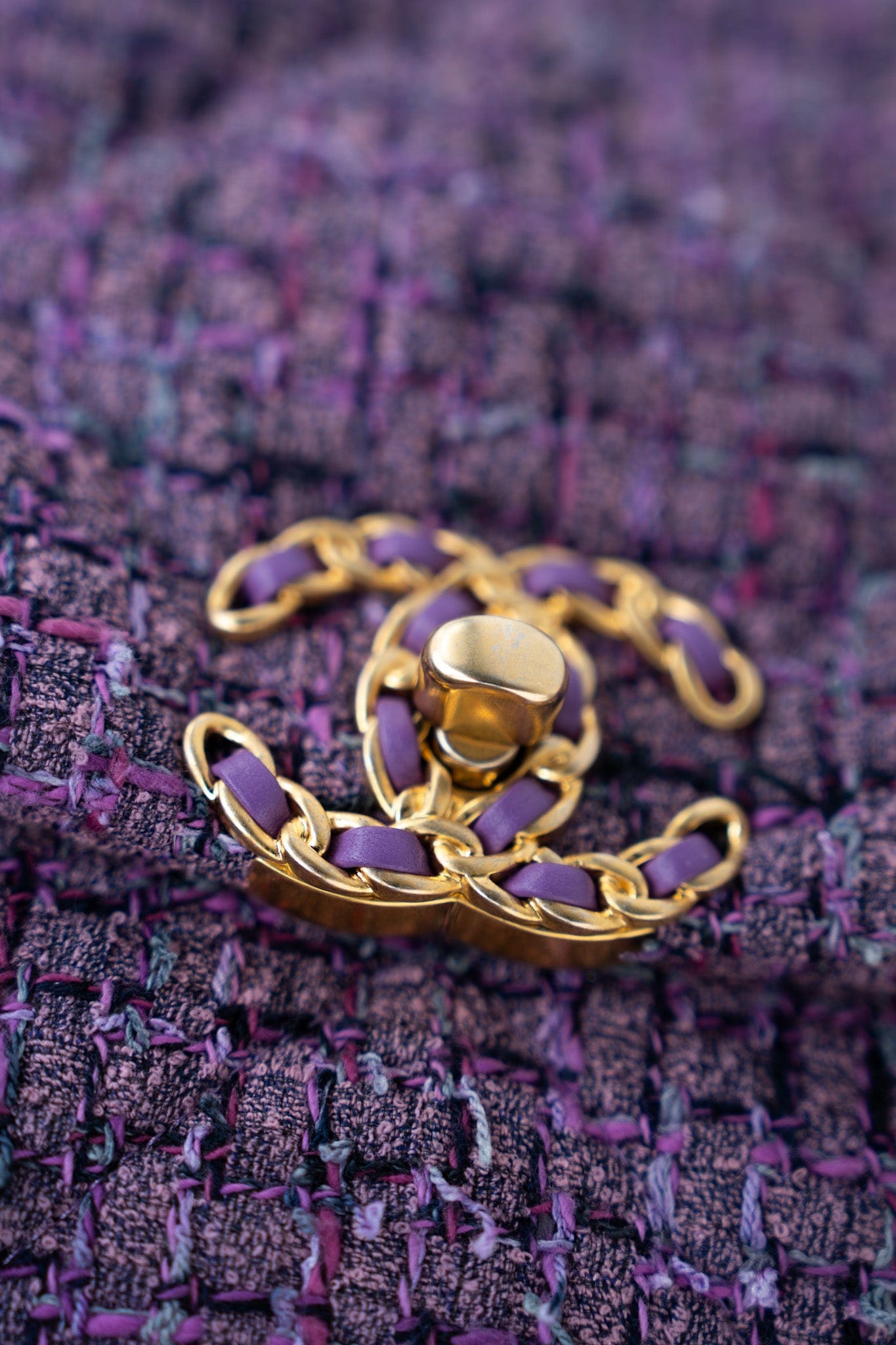 Purple Tweed Quilted 19 Flap Large Mixed Hardware