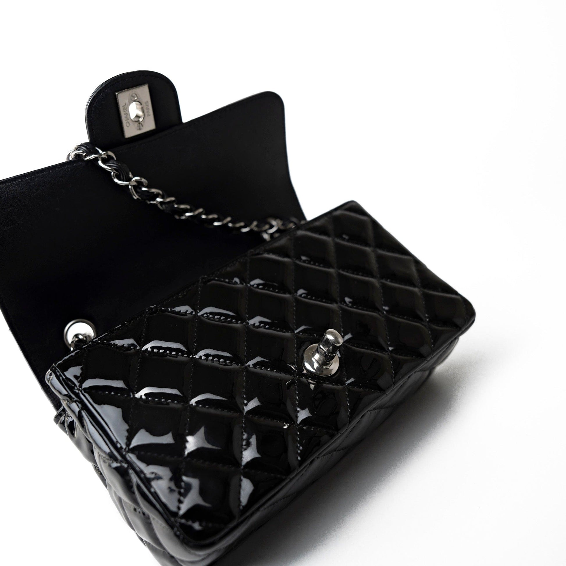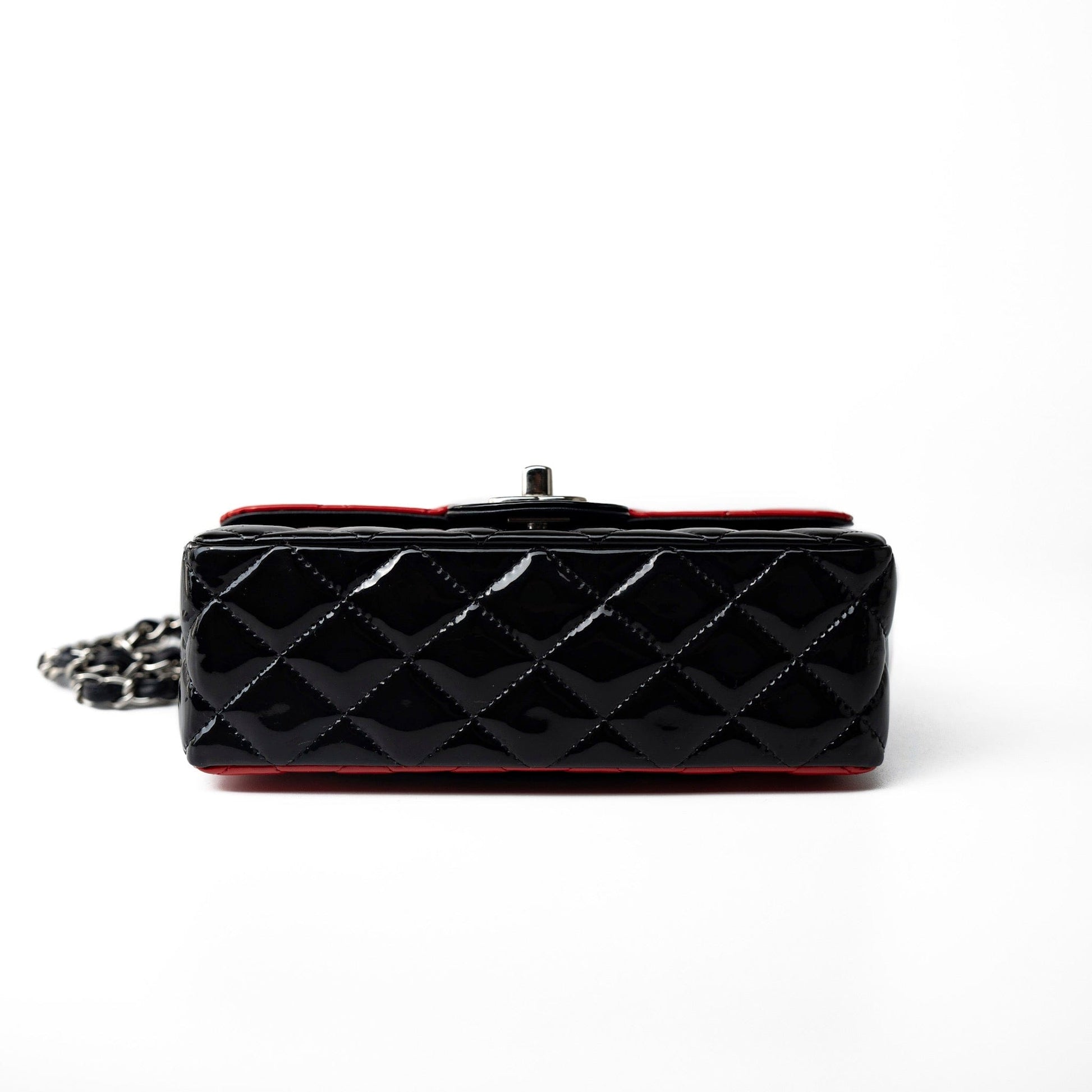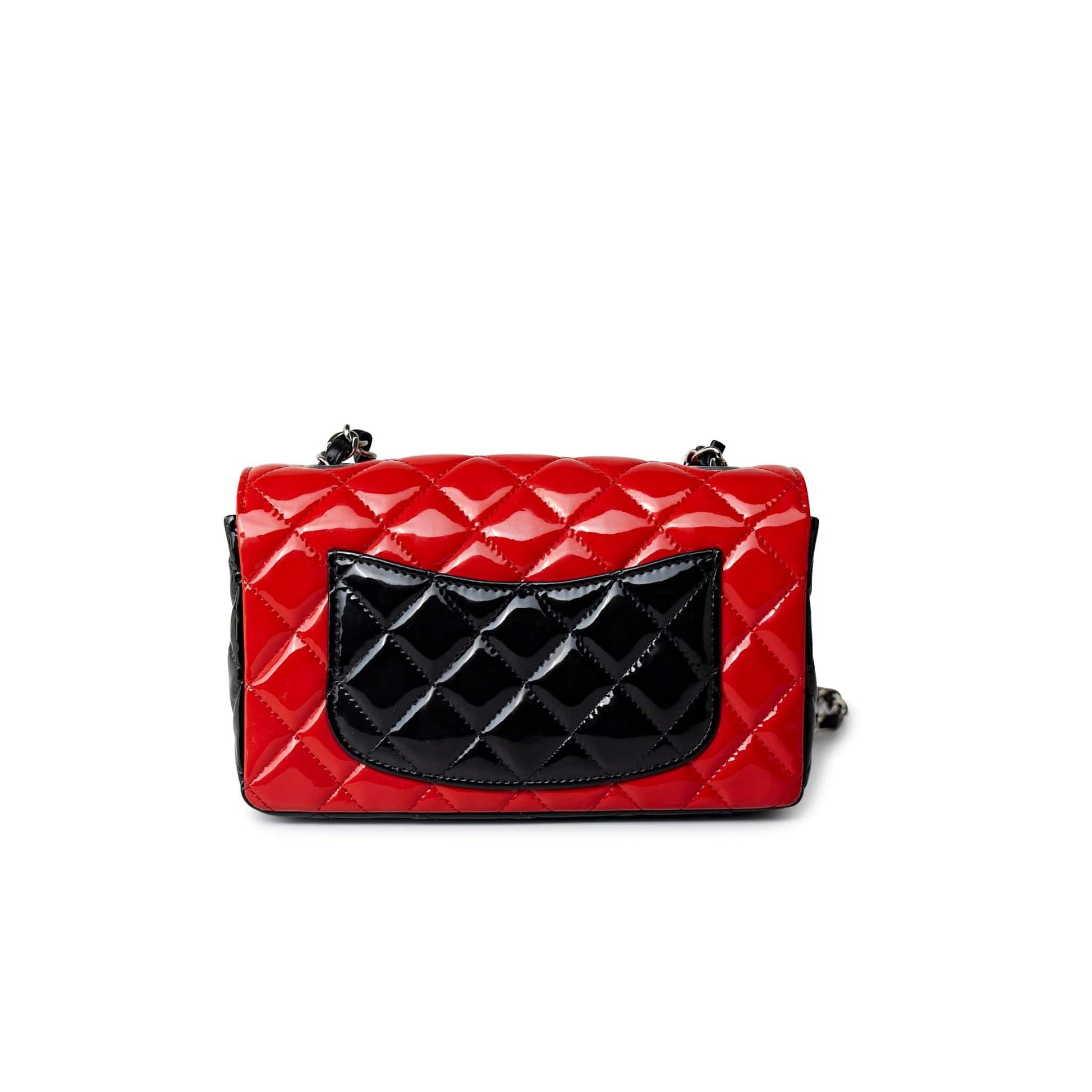 Red | Black Patent Quilted Mini rectangular Single Flap Silver Hardware
