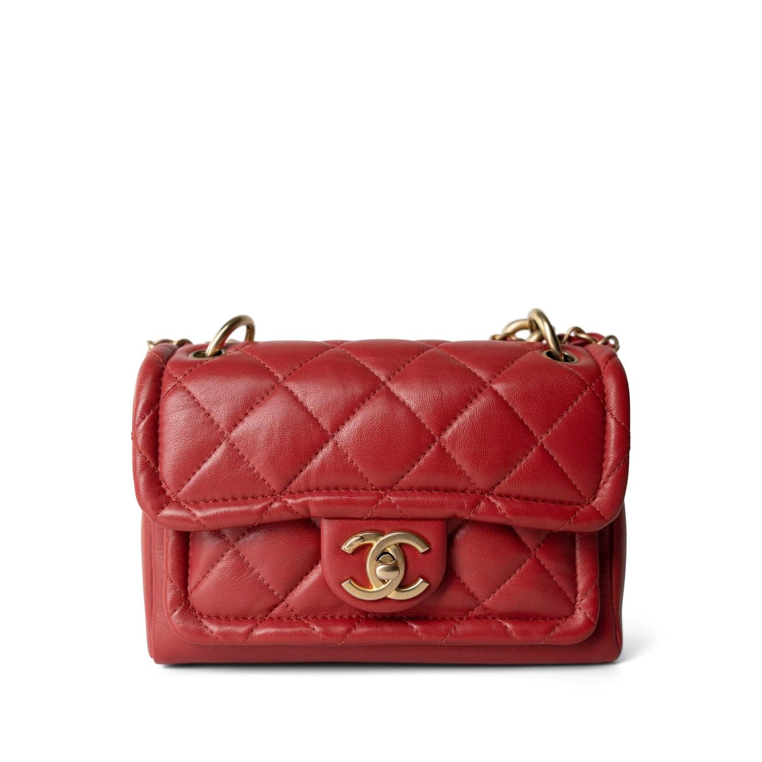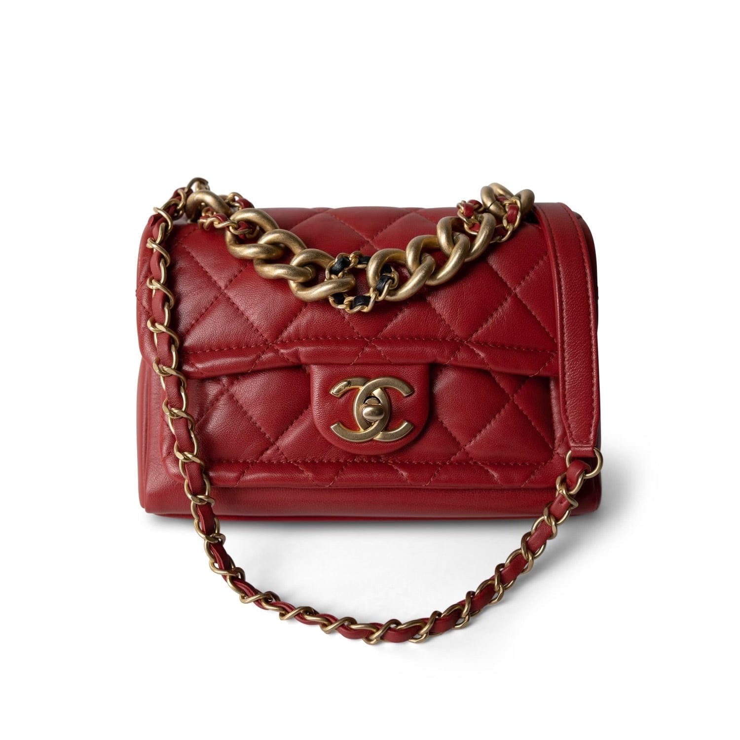 Red Lambskin Quilted Single Flap Chain Leather Link Bag
