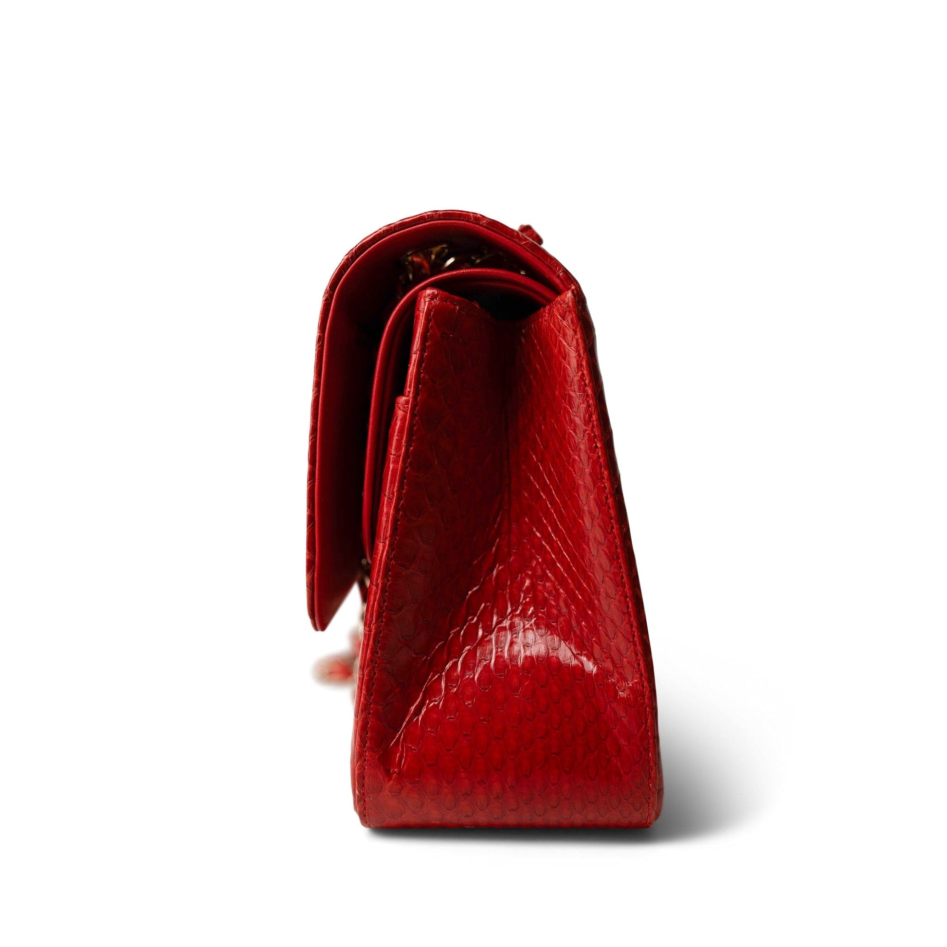 Red Python Jumbo Classic Flap Light Gold Hardware