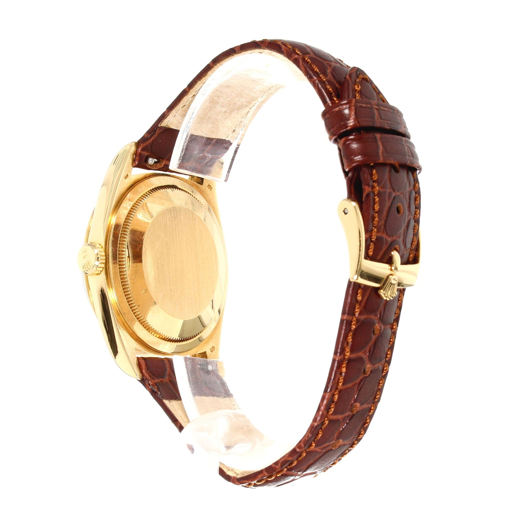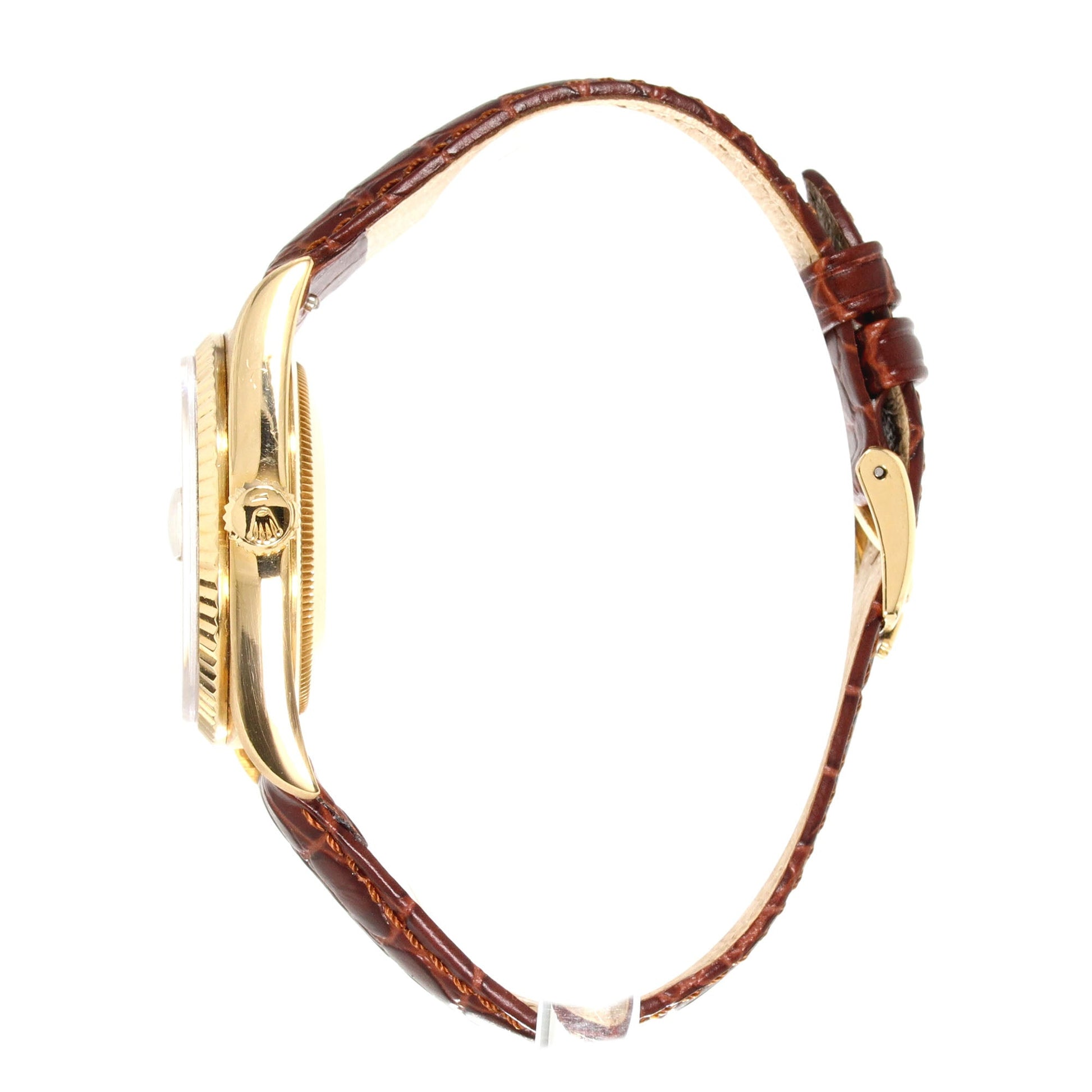 Equipped with a new brown leather strap with a gold Rolex buckle.