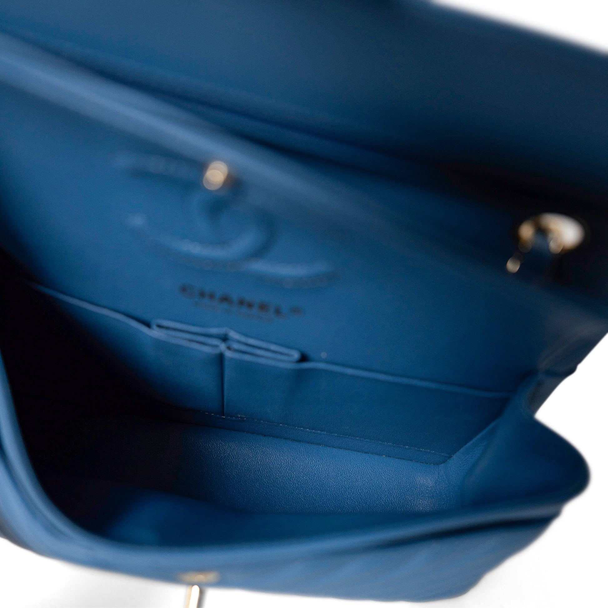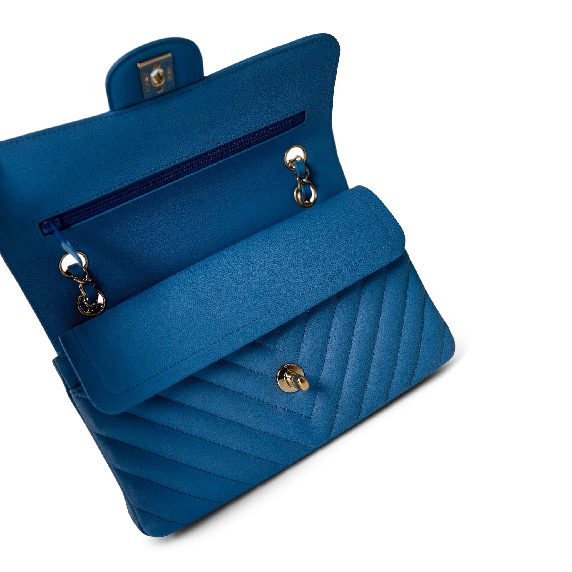 Sky Blue Caviar Chevron Classic Flap Small Light Gold Hardware