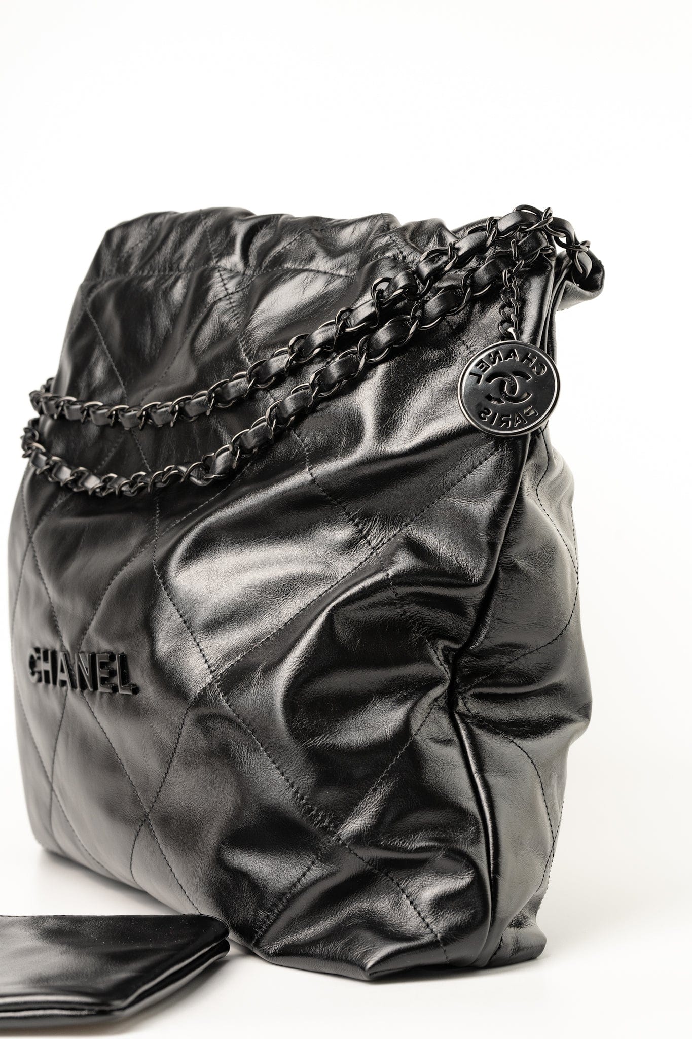 So Black Calfskin Quilted Drawstring 22 Bag medium Black Hardware