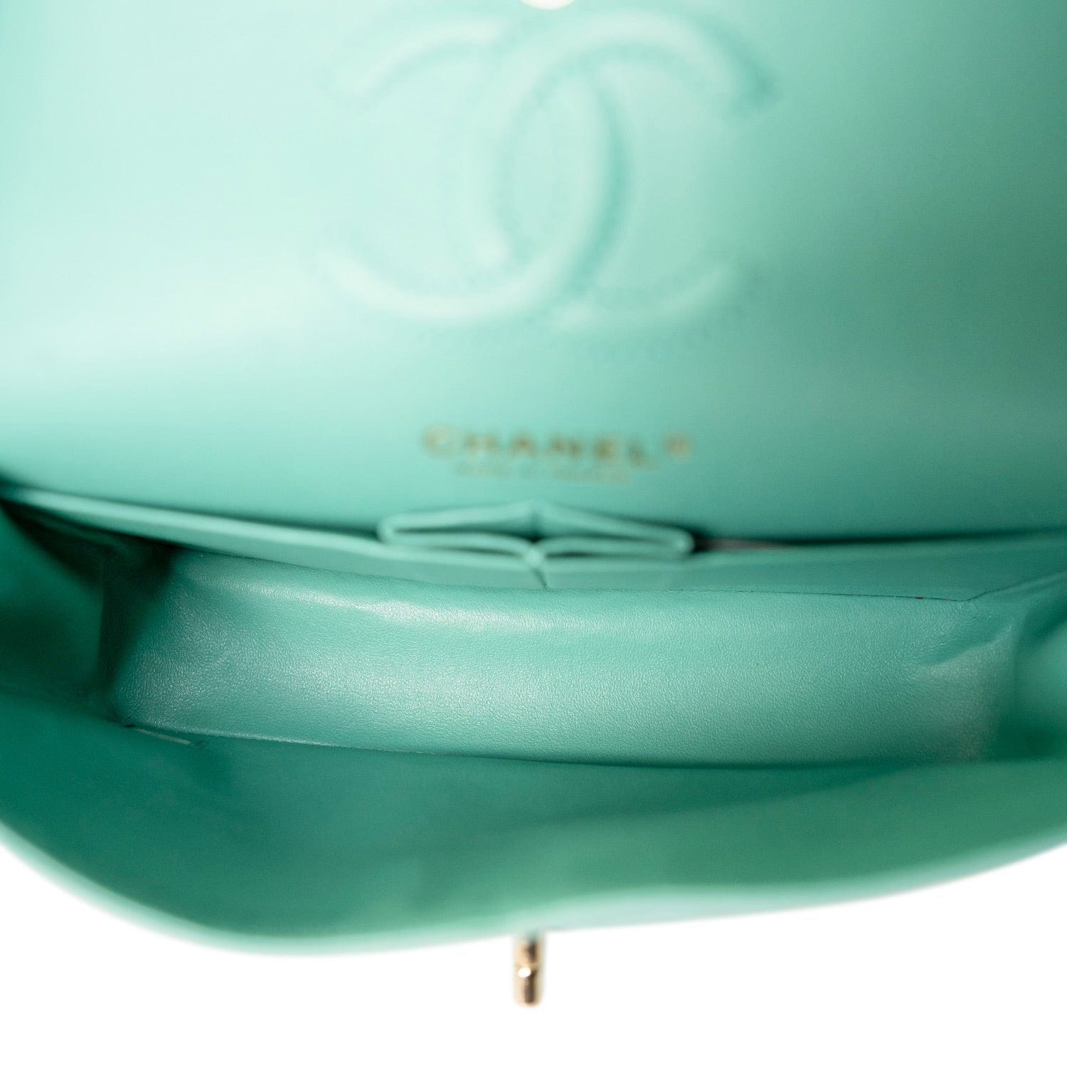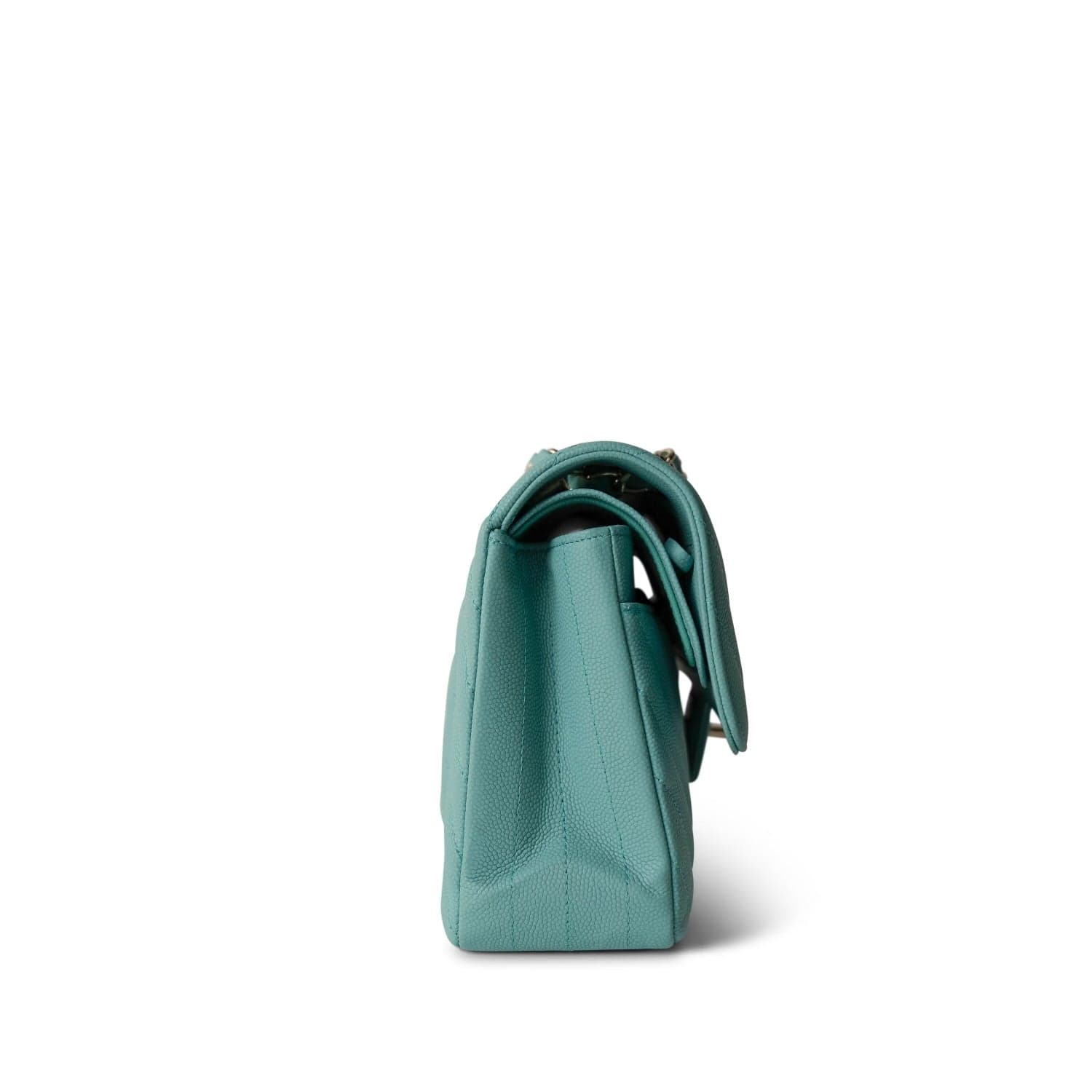 Tiffany Blue Caviar Chevron Quilted Classic Flap Small LGHW