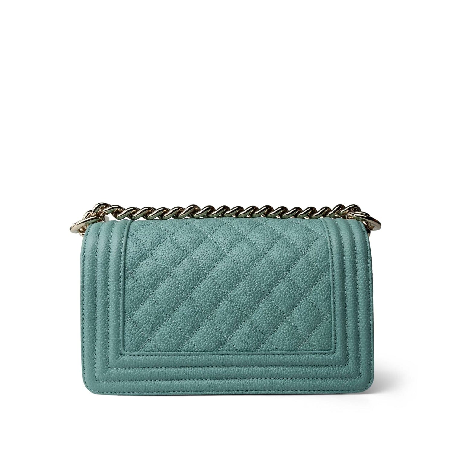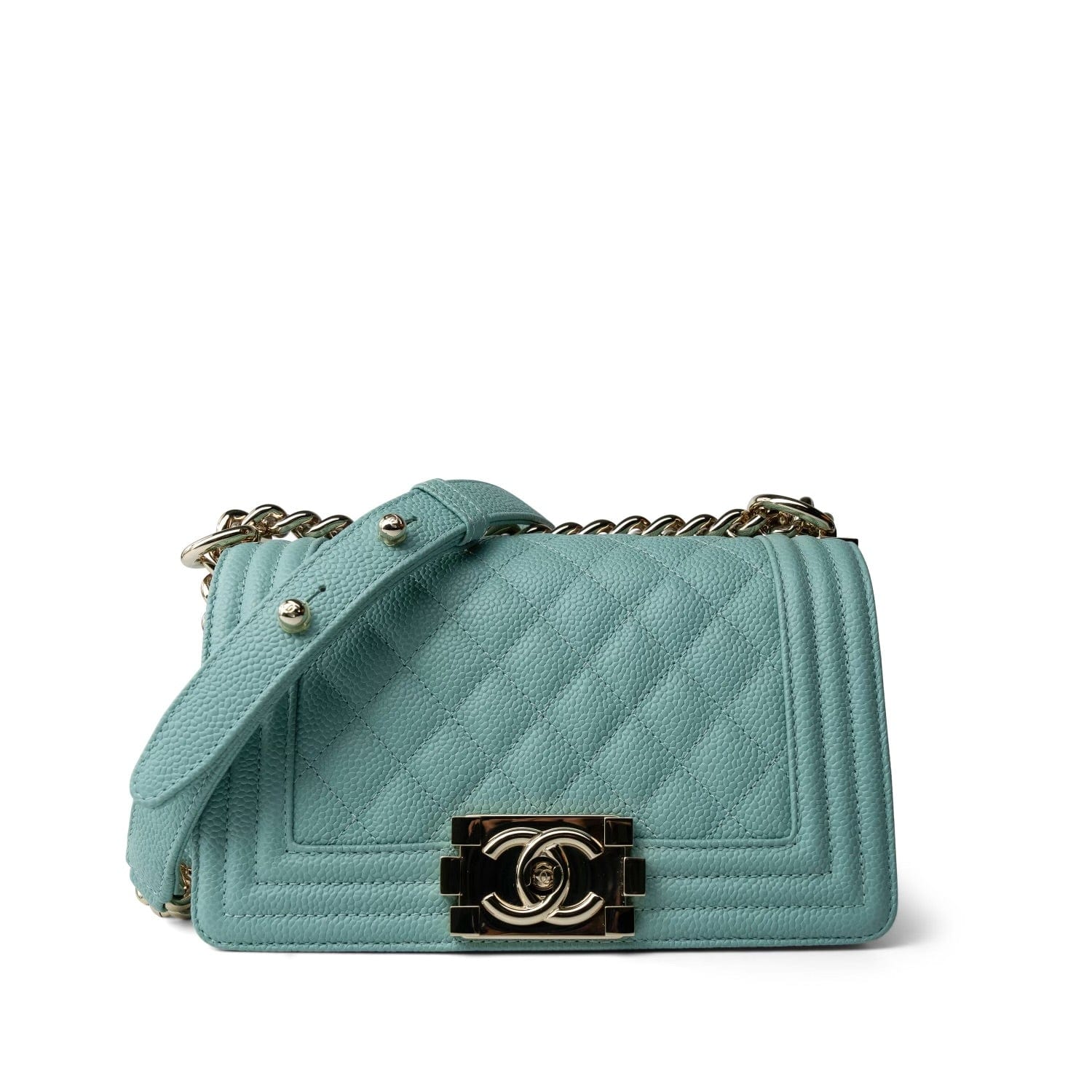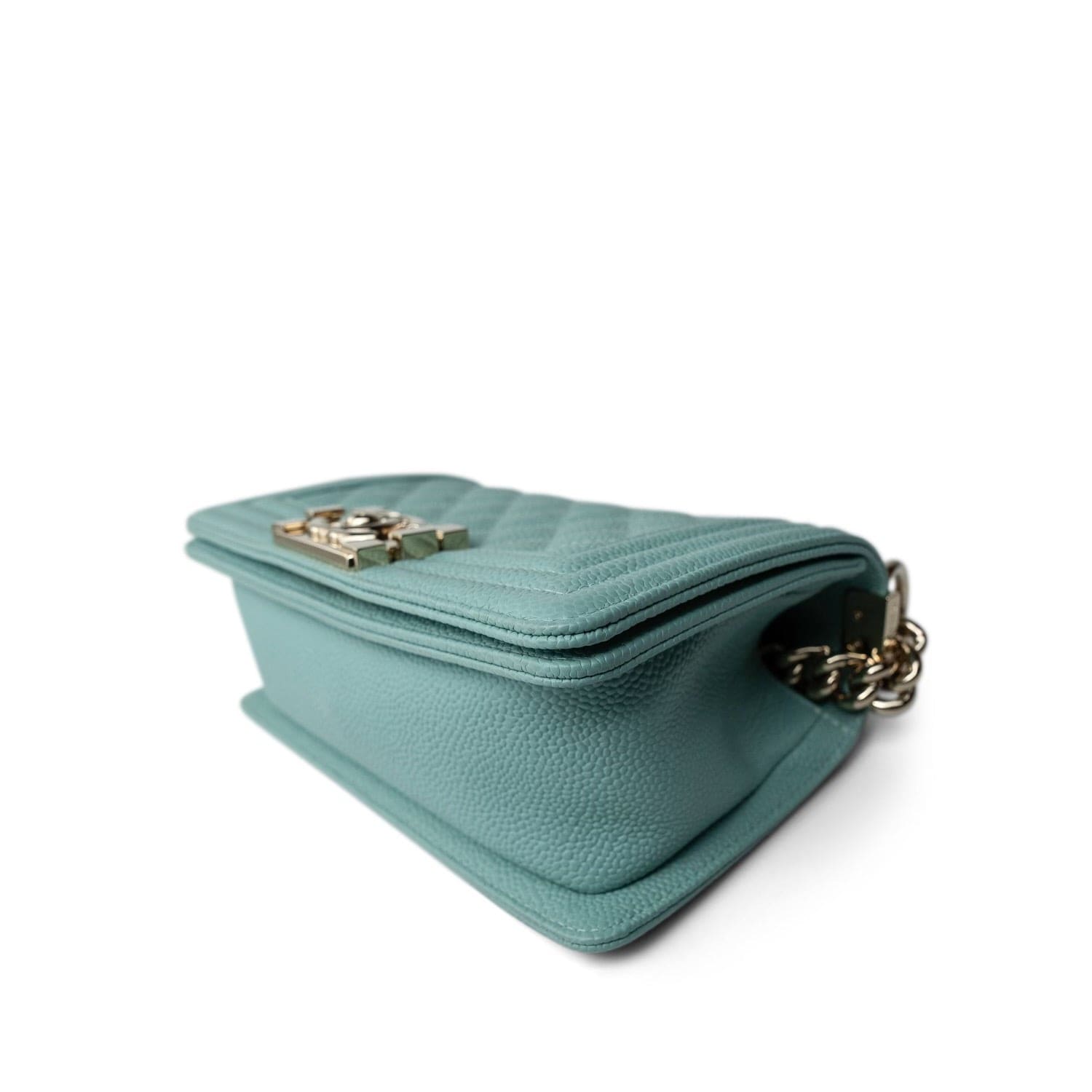 Tiffany Blue Caviar Quilted Small Boy Bag Light Gold Hardware