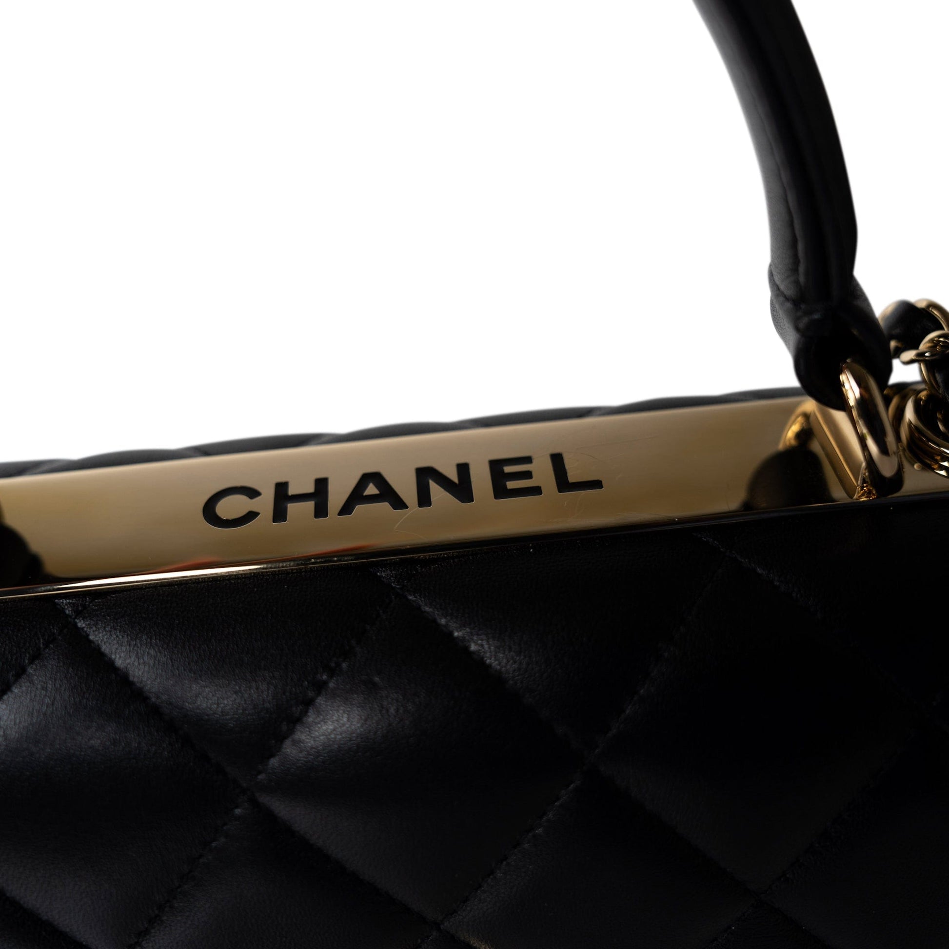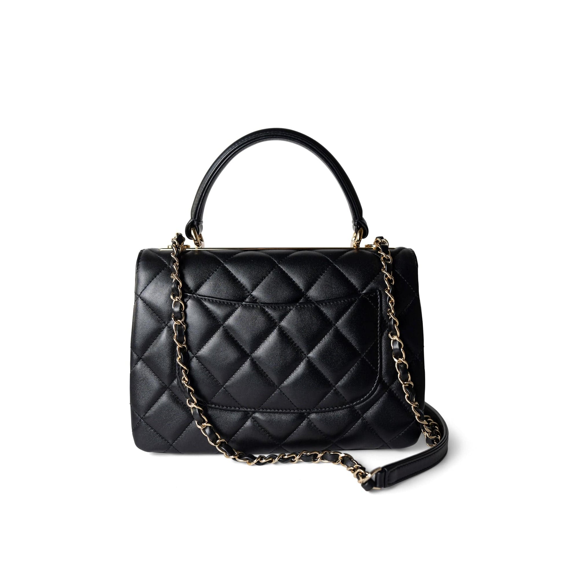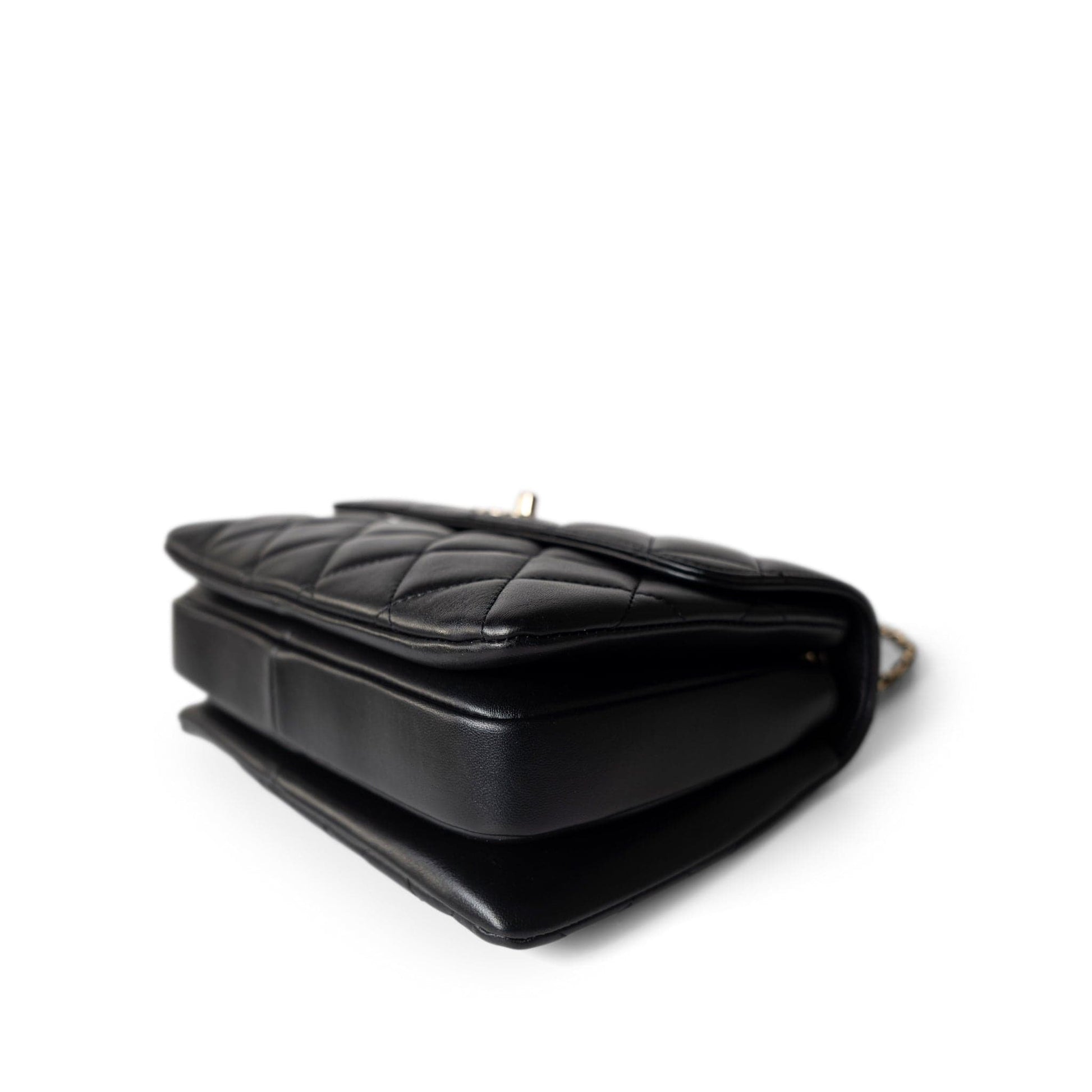 Trendy CC Black Lambskin Quilted Small Light Gold Hardware