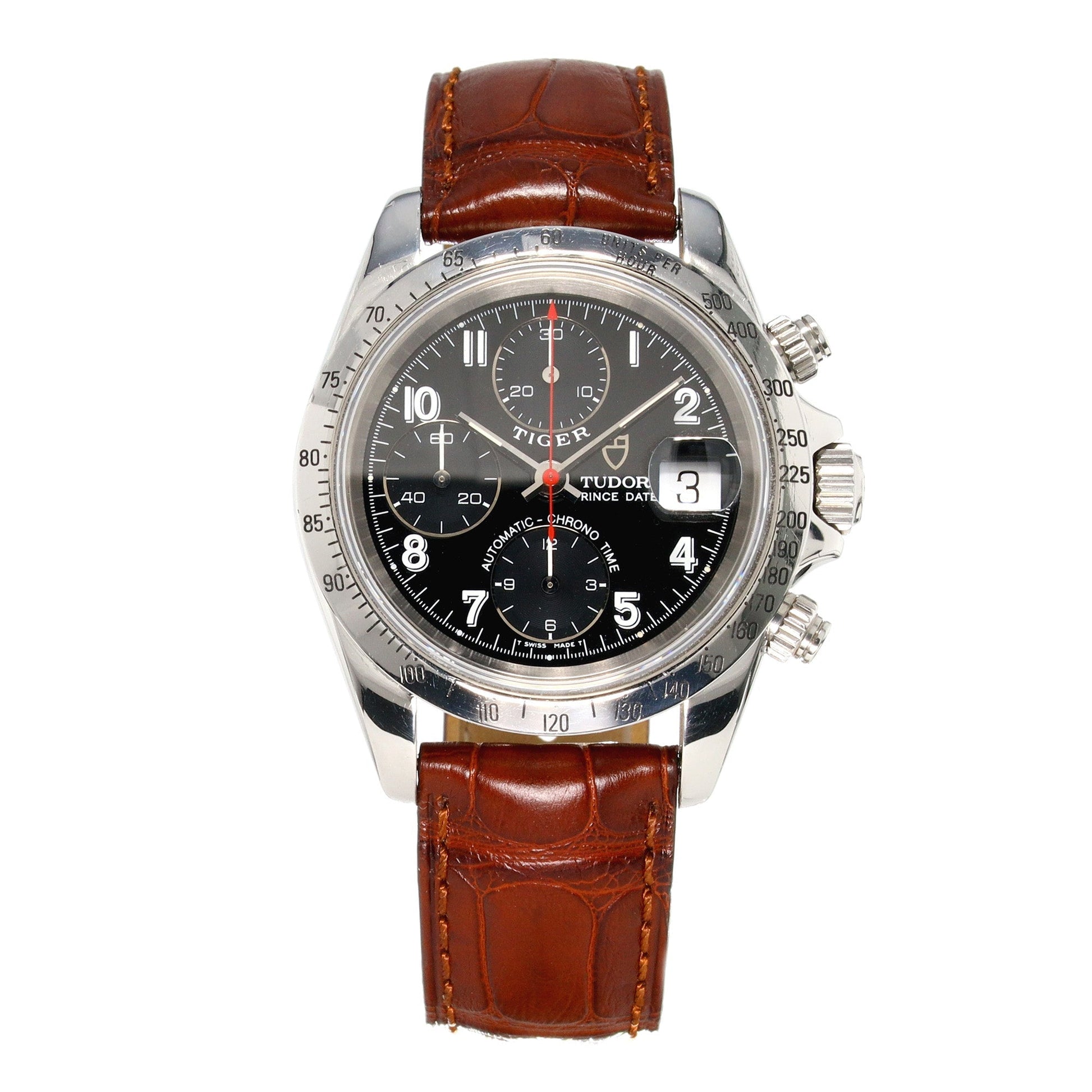 Tudor Prince Date Tiger Chronograph (ref. 79280P, c. 1999) with a 40mm stainless steel case, featuring a sapphire crystal with a steel tachymeter bezel, screw-down crown and chrono pushers.