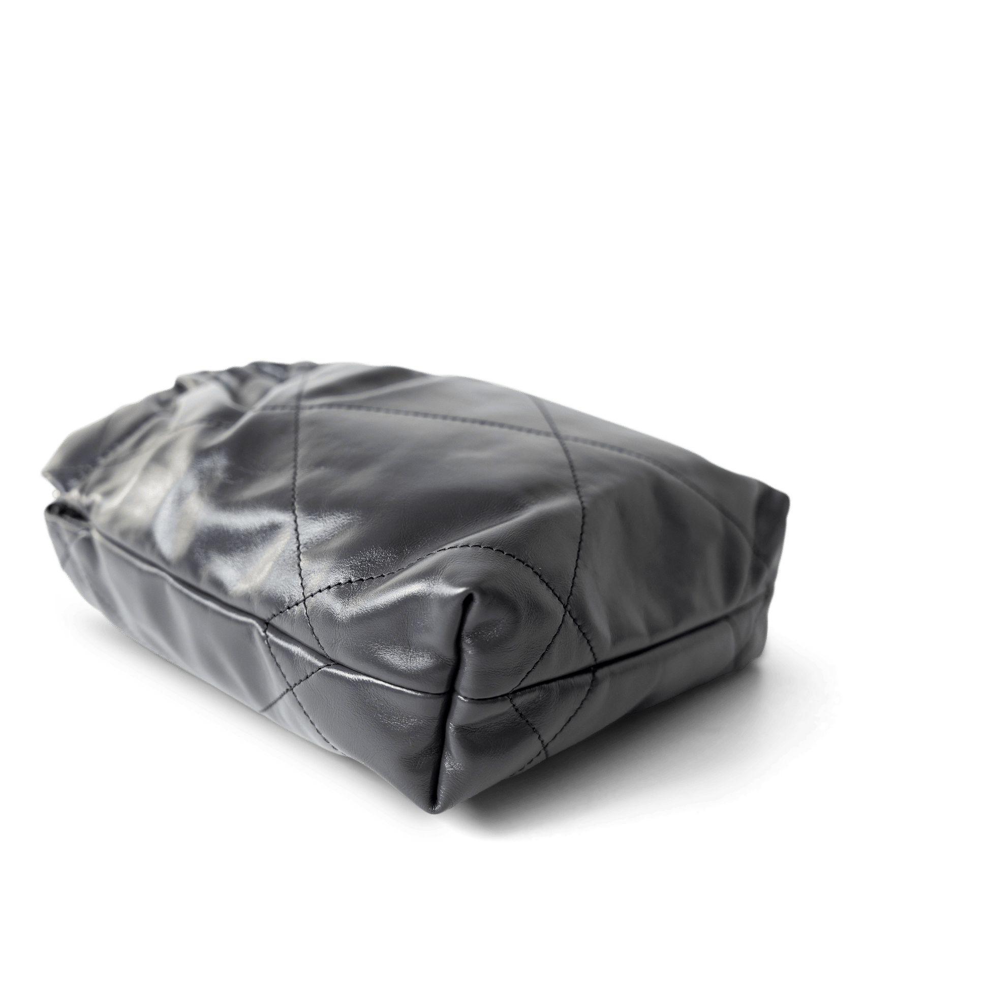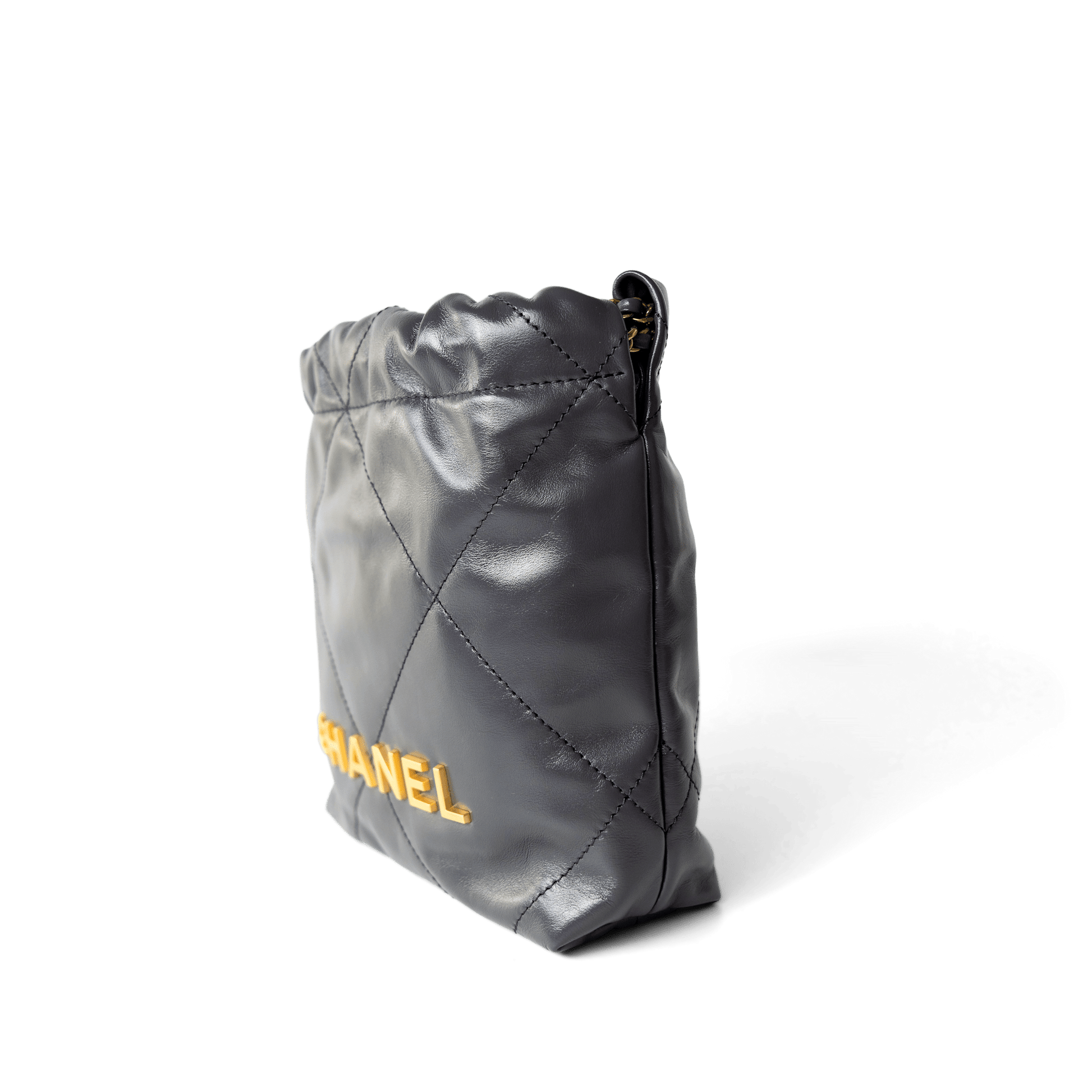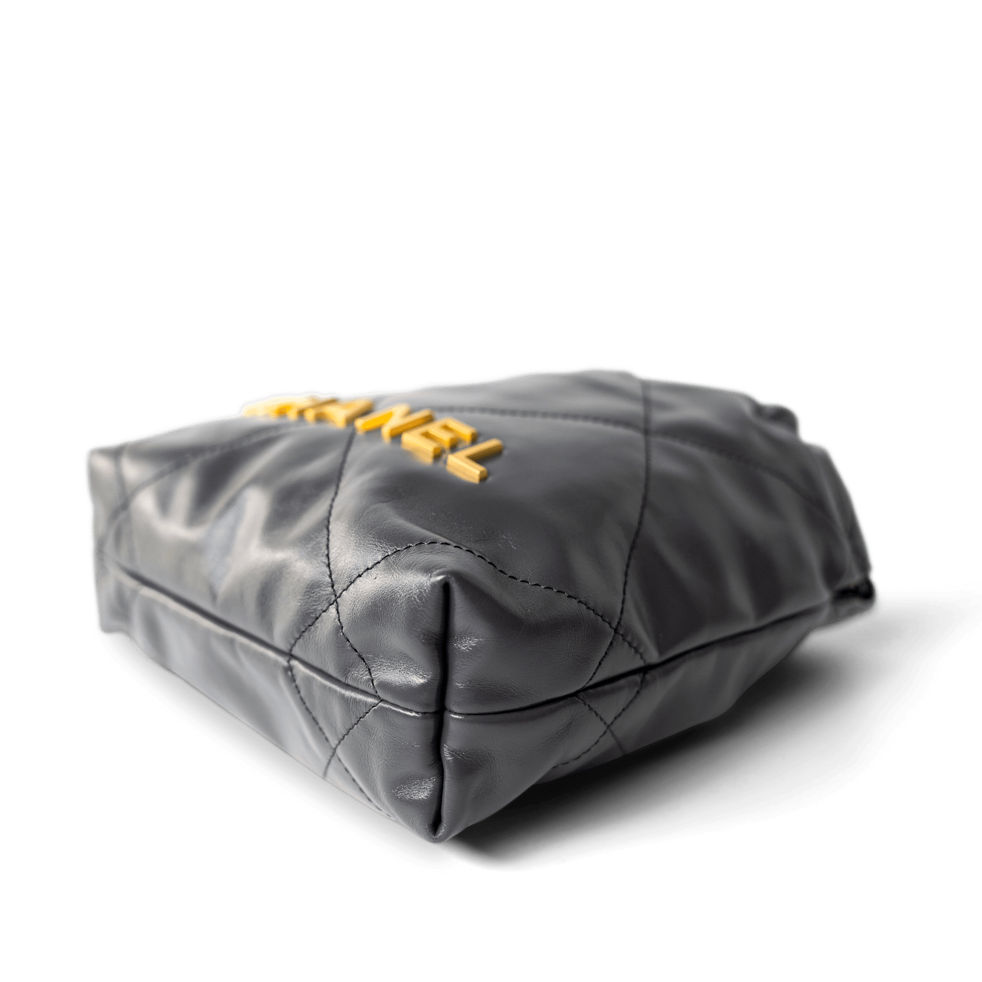 23B Dark Grey Calfskin Quilted Mini 22 Bag Antique Gold Hardware