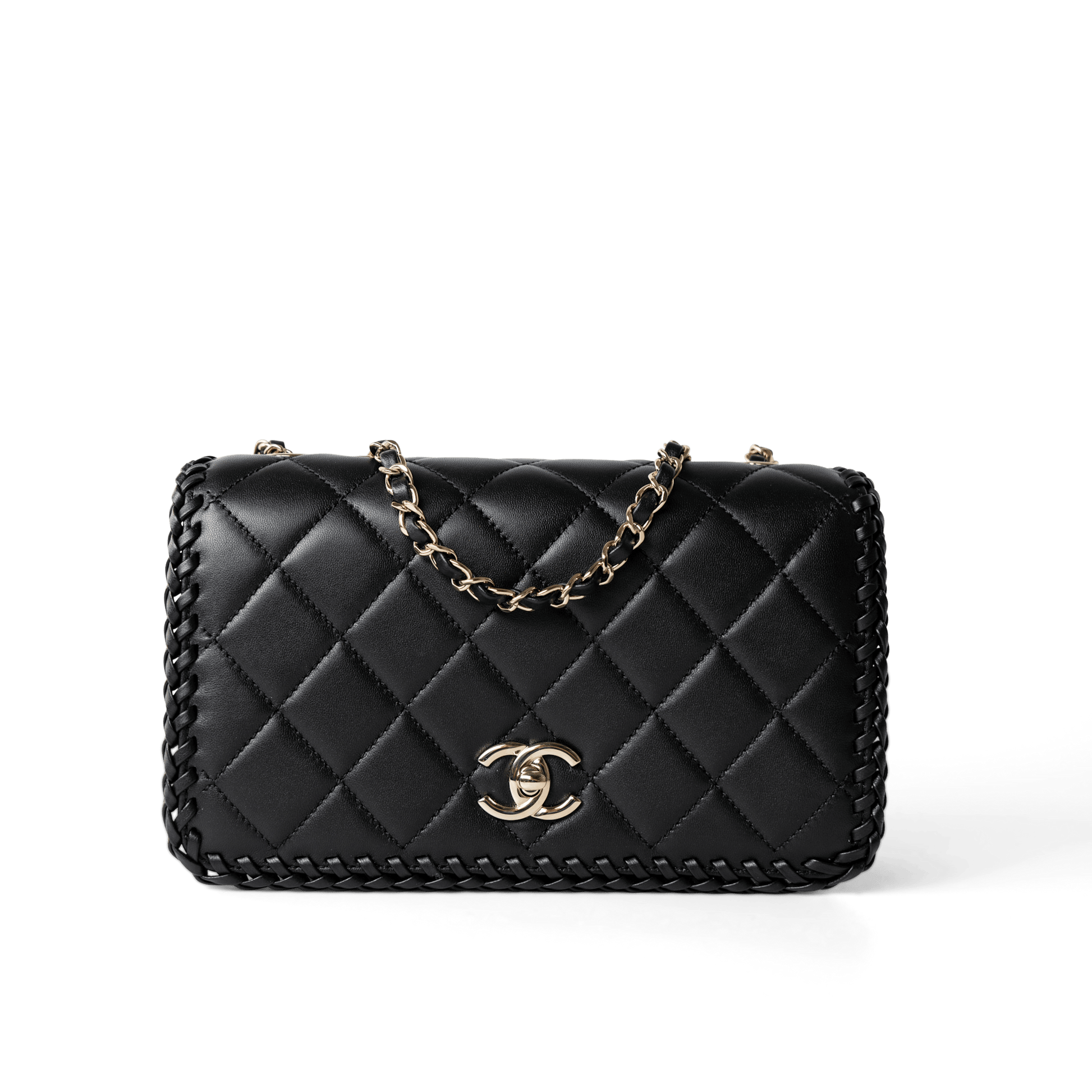 23A Black Lambskin Quilted Full Flap Bag Light Gols Hardware
