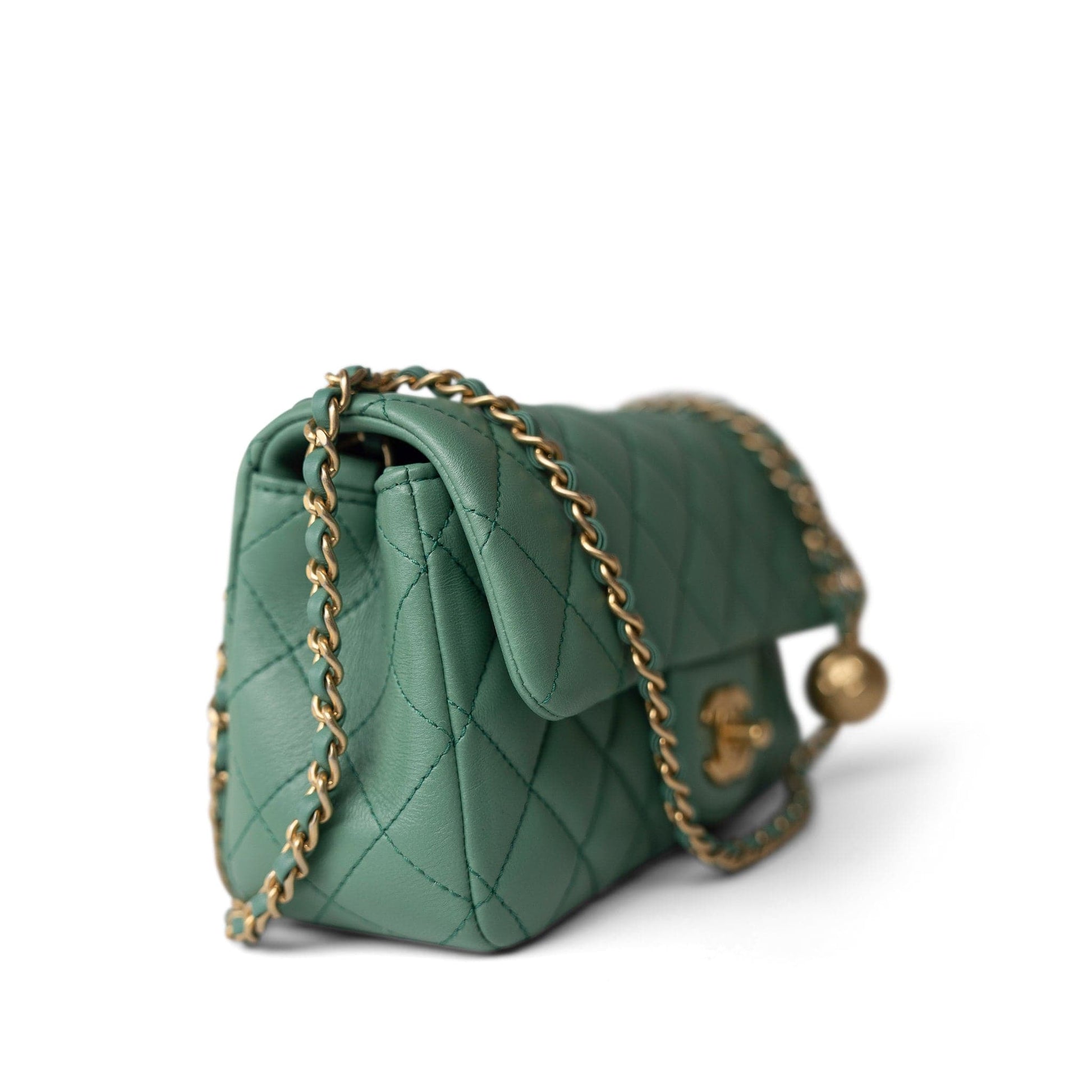 23C Green Lambskin Quilted Mini Pearl Crush Antique Gold Hardware
