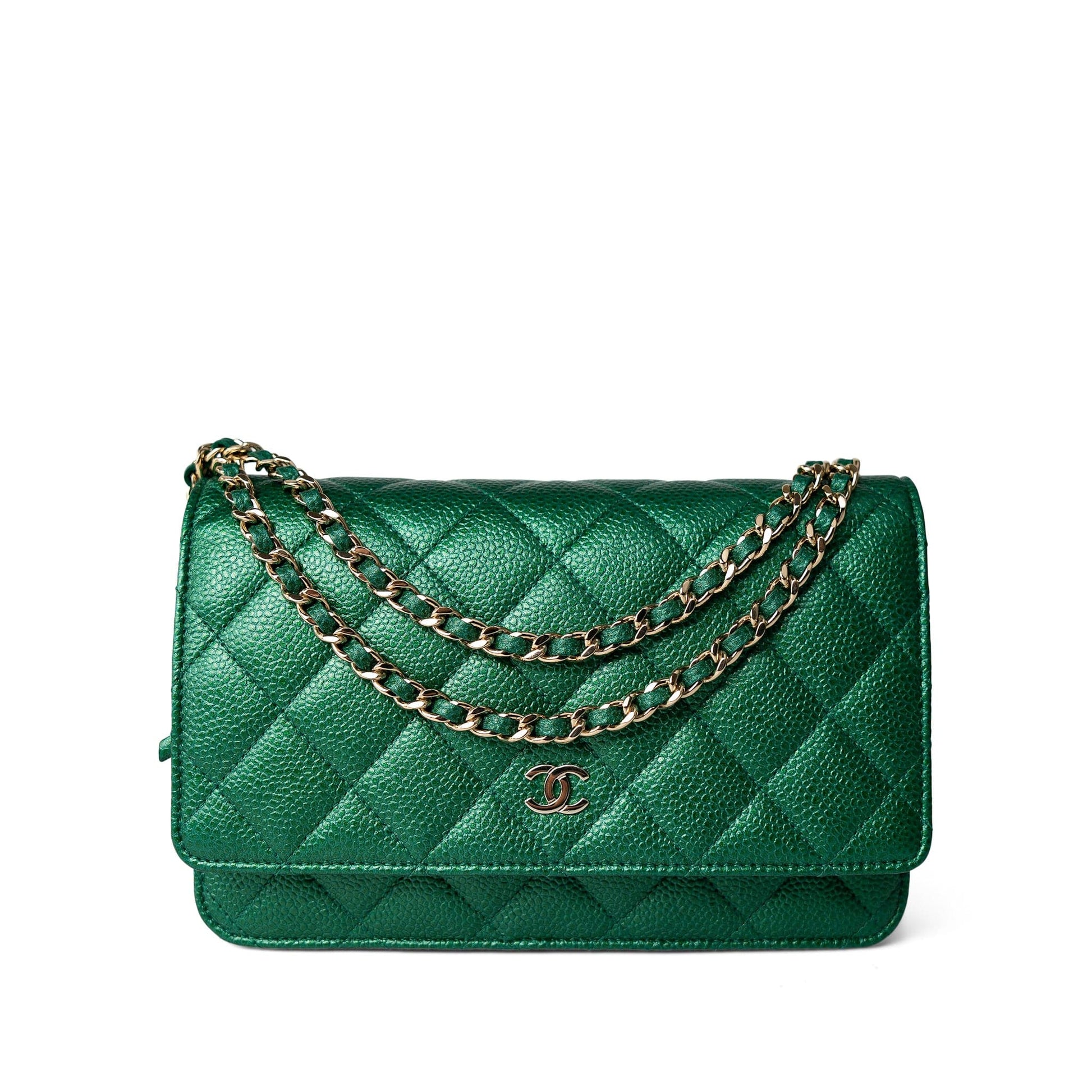 18S Emerald Green Caviar Quilted Wallet on Chain WOC