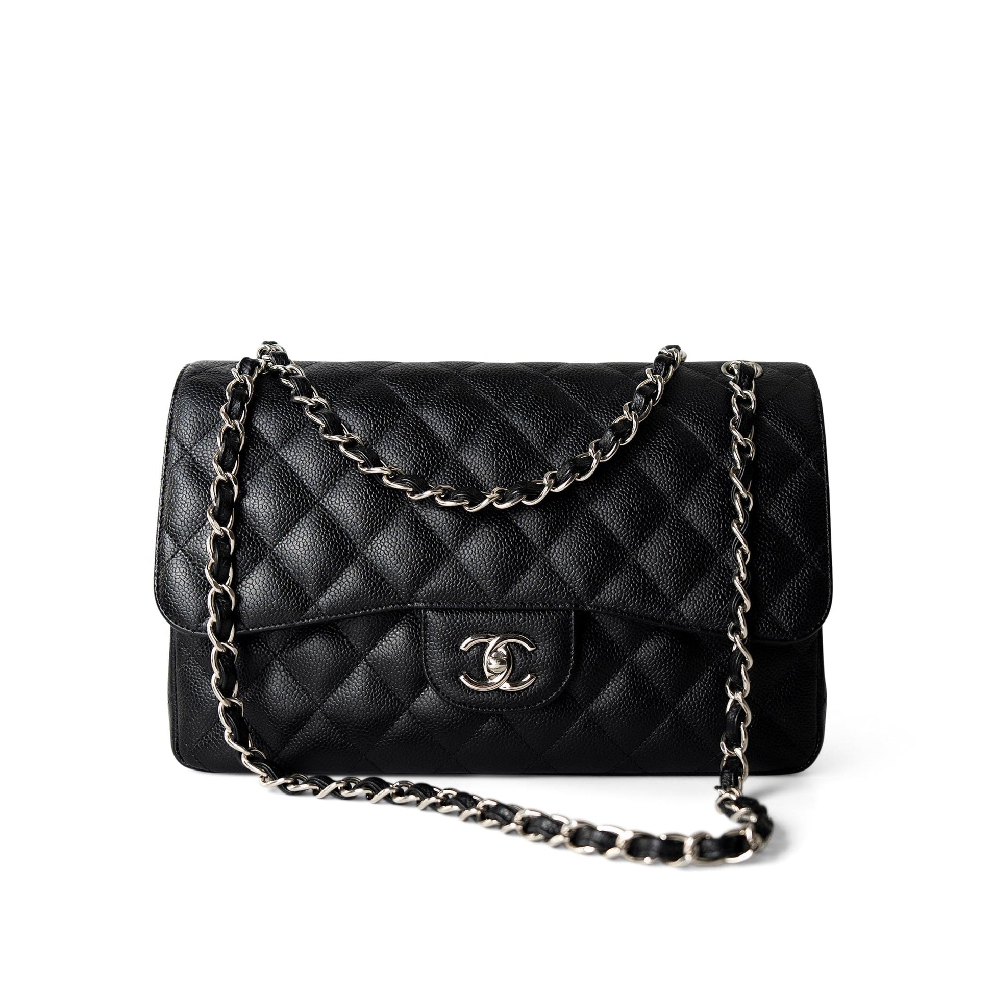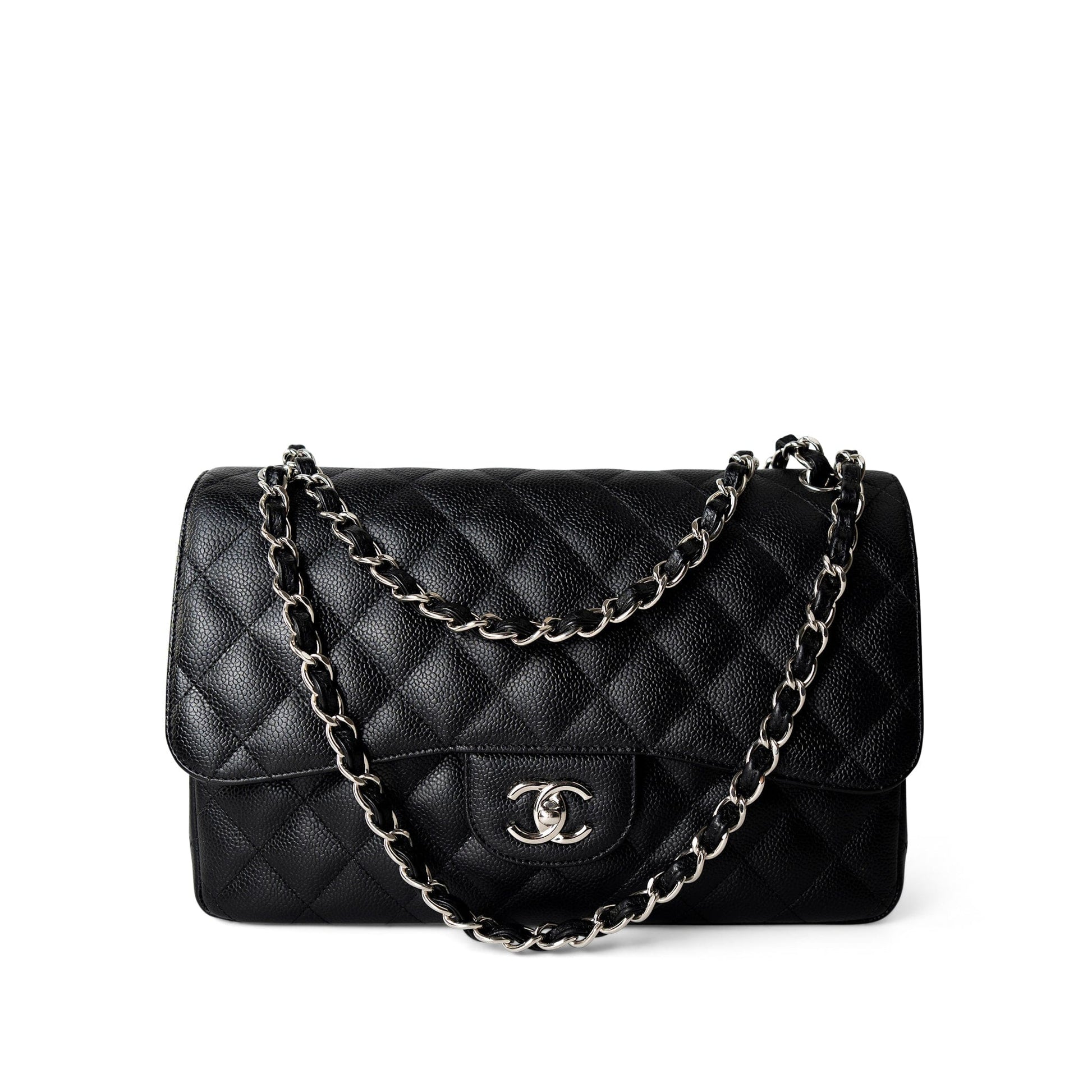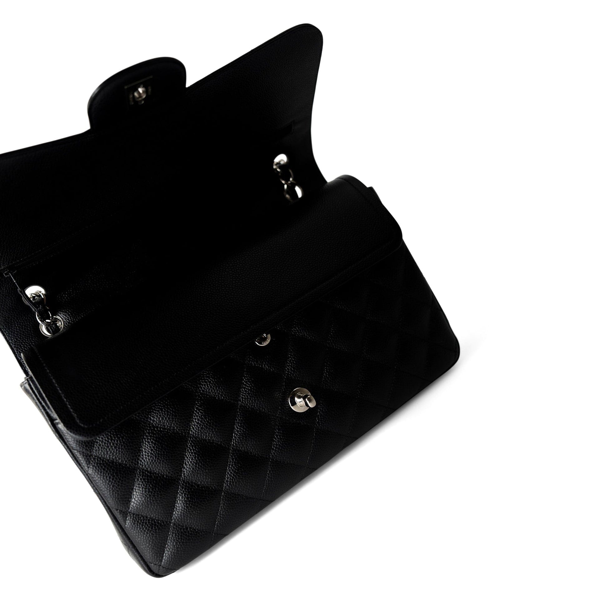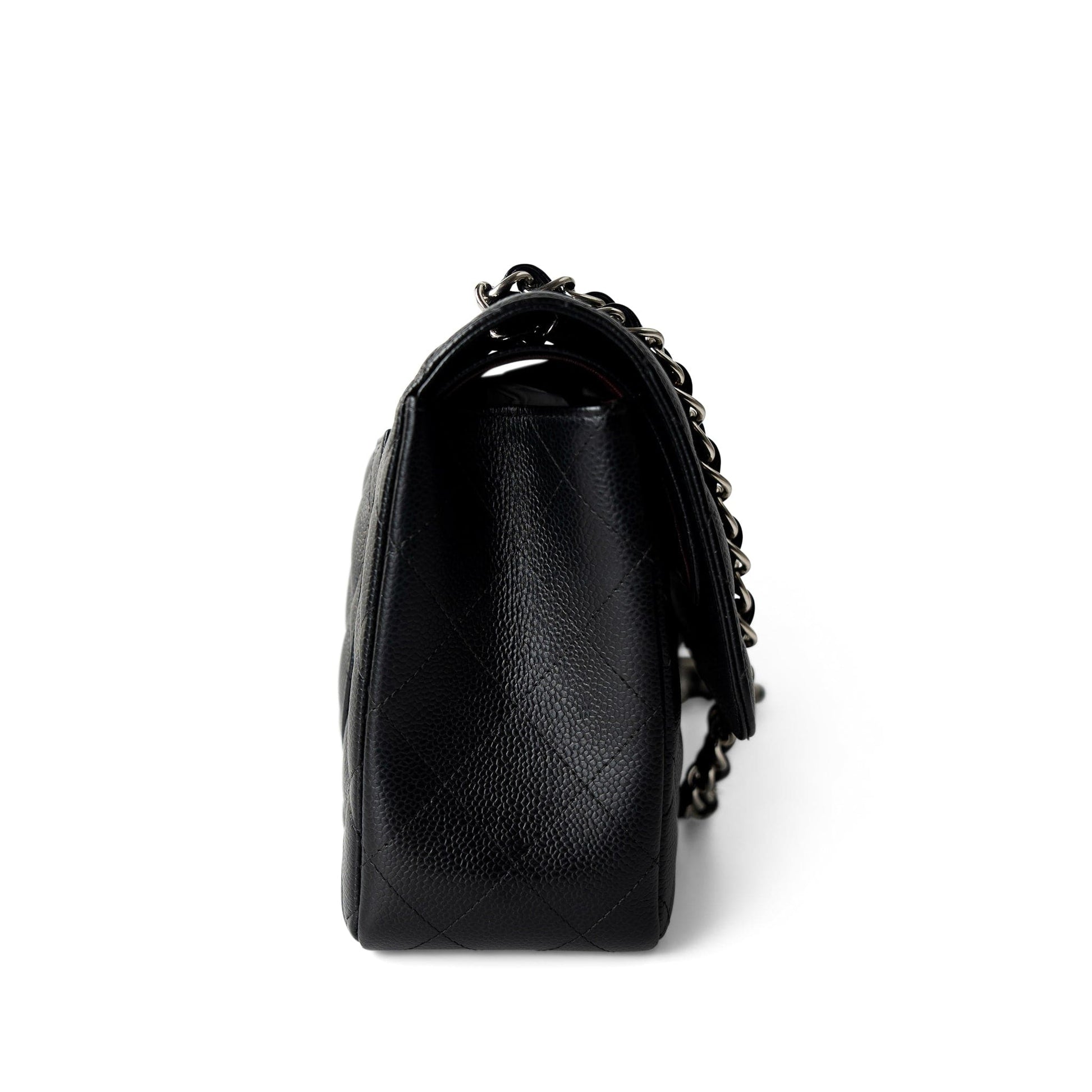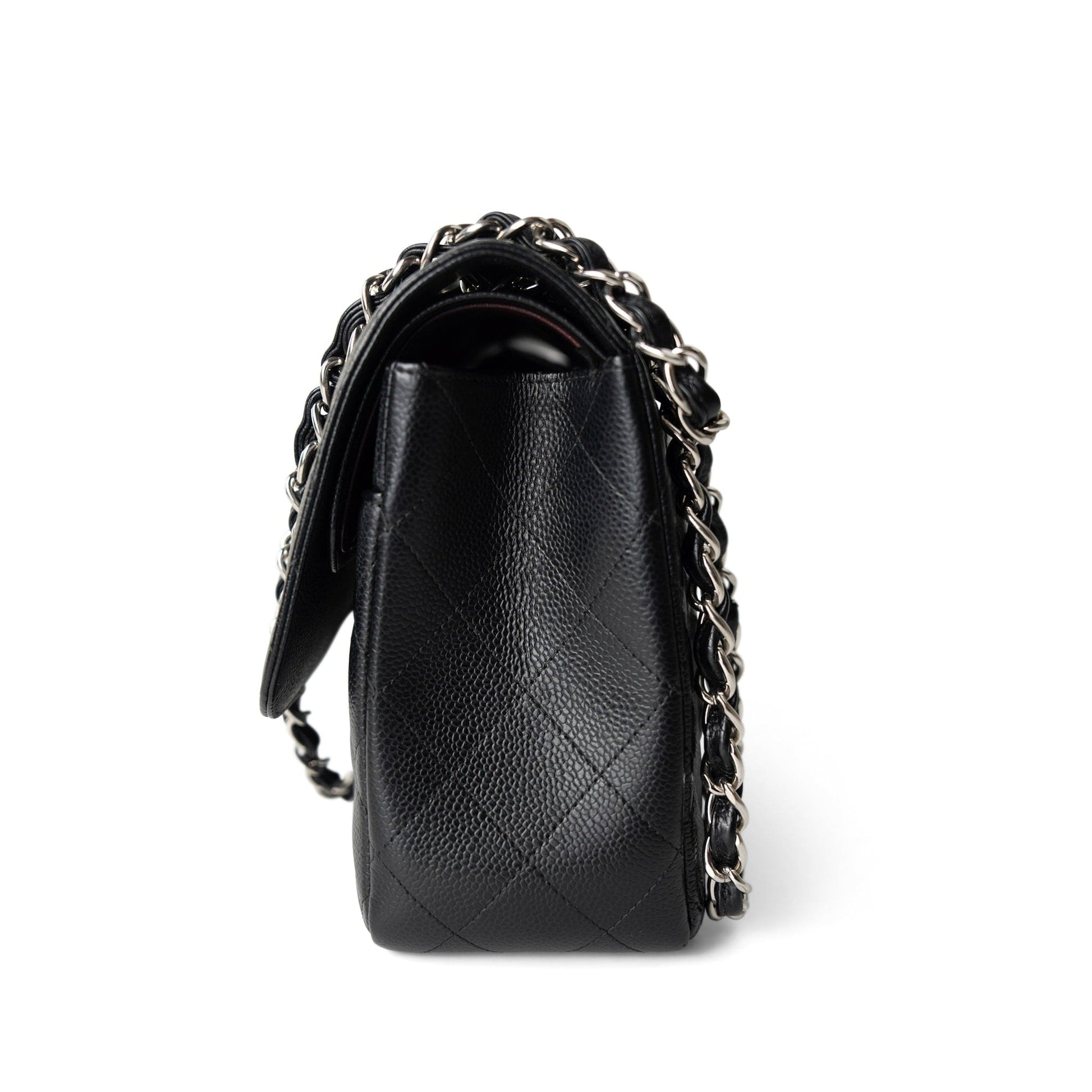Black Jumbo Caviar Quilted Classic Double Flap SHW