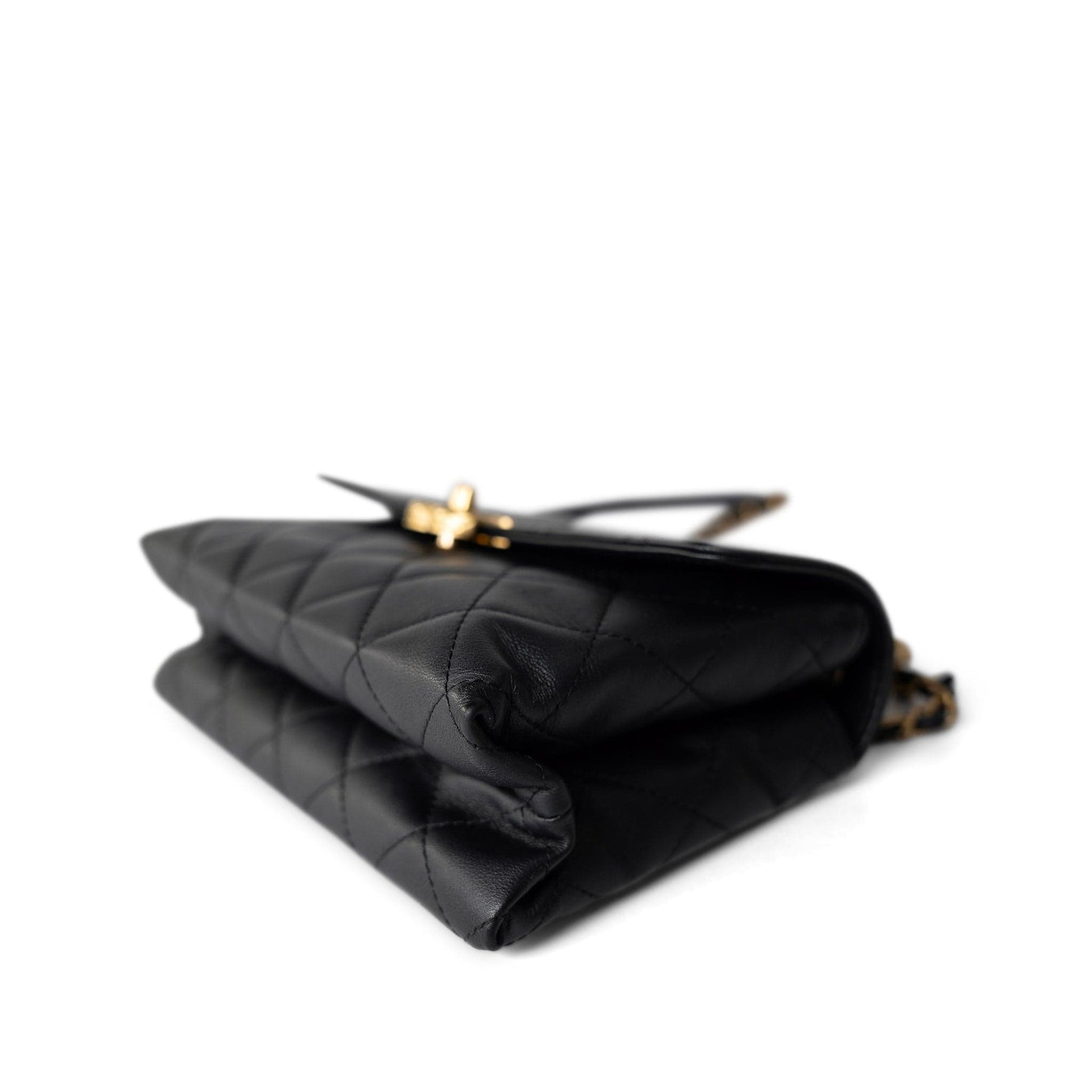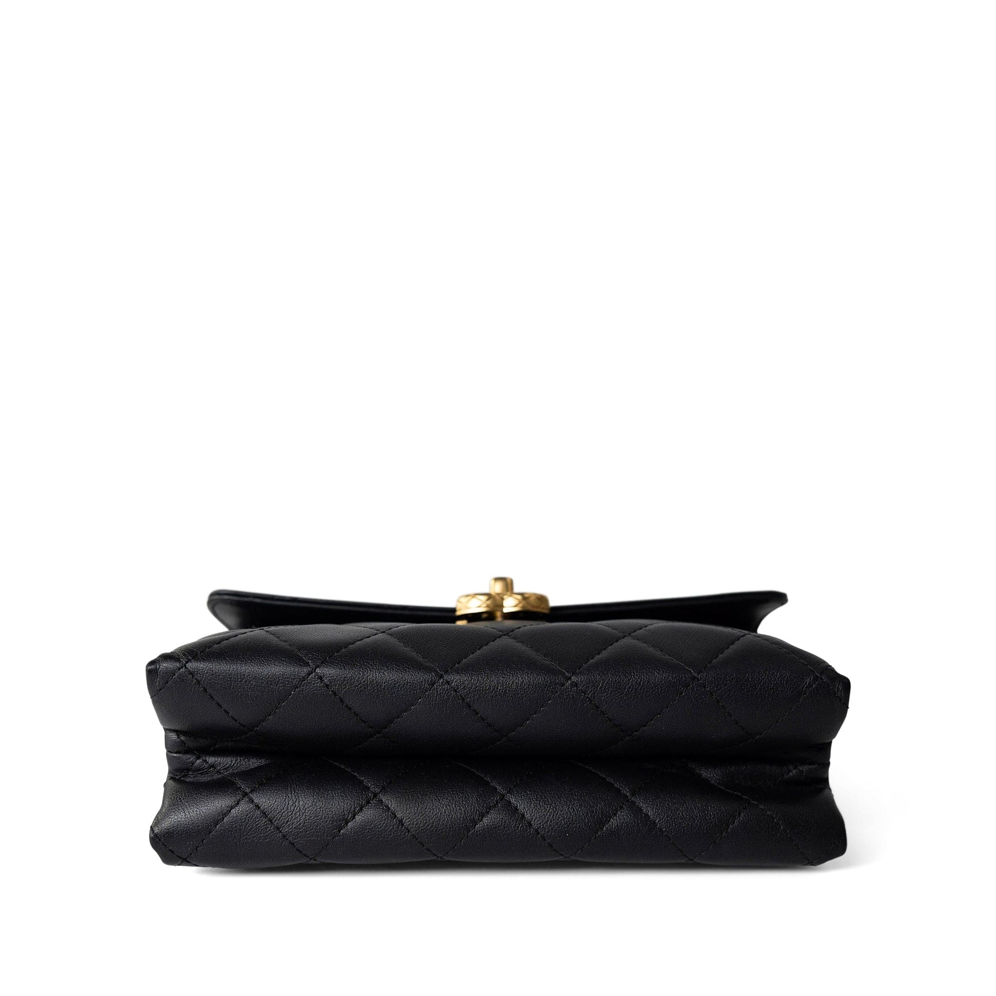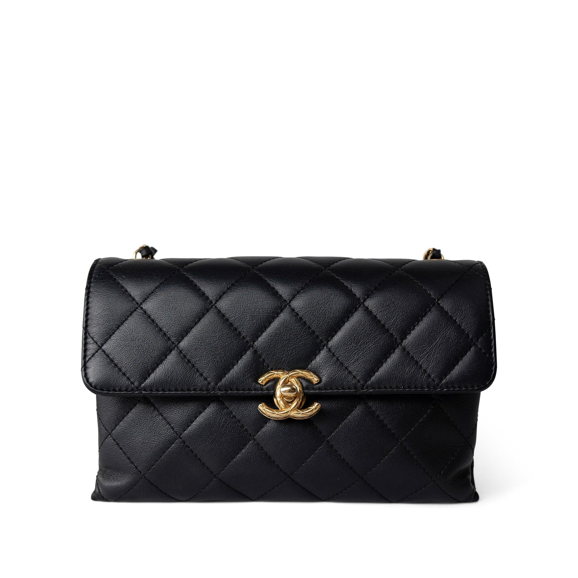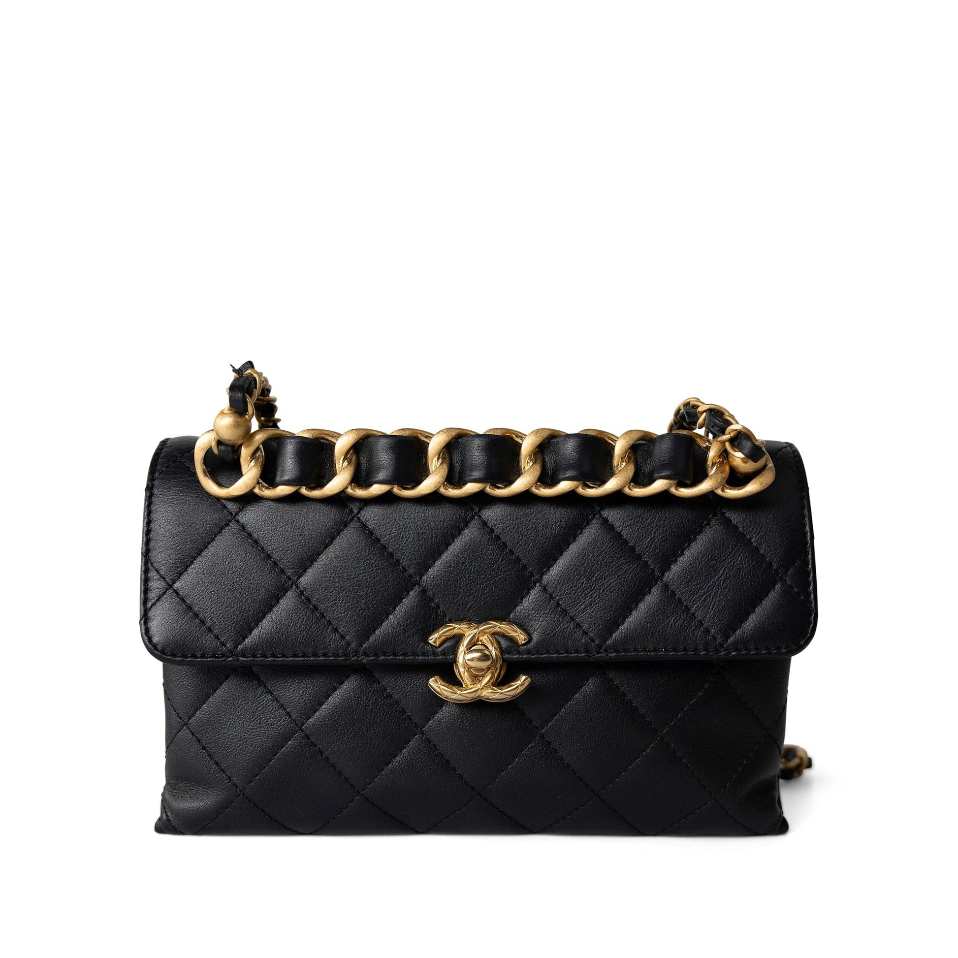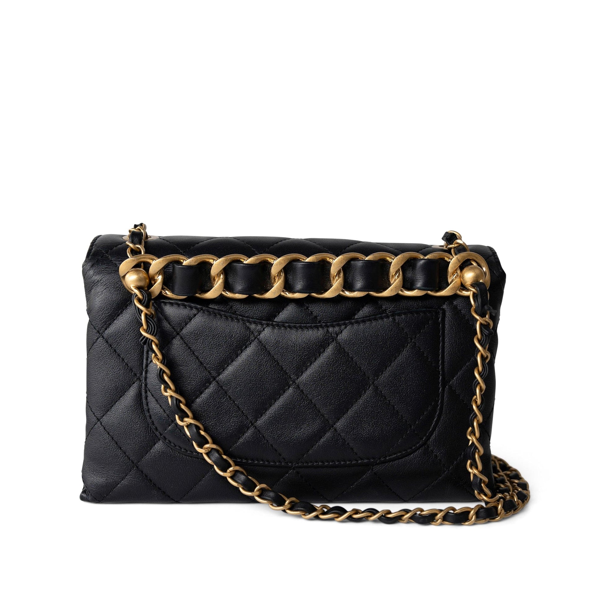 Black Lambskin Quilted Chain Infinity Single Flap Antique Gold Hardware