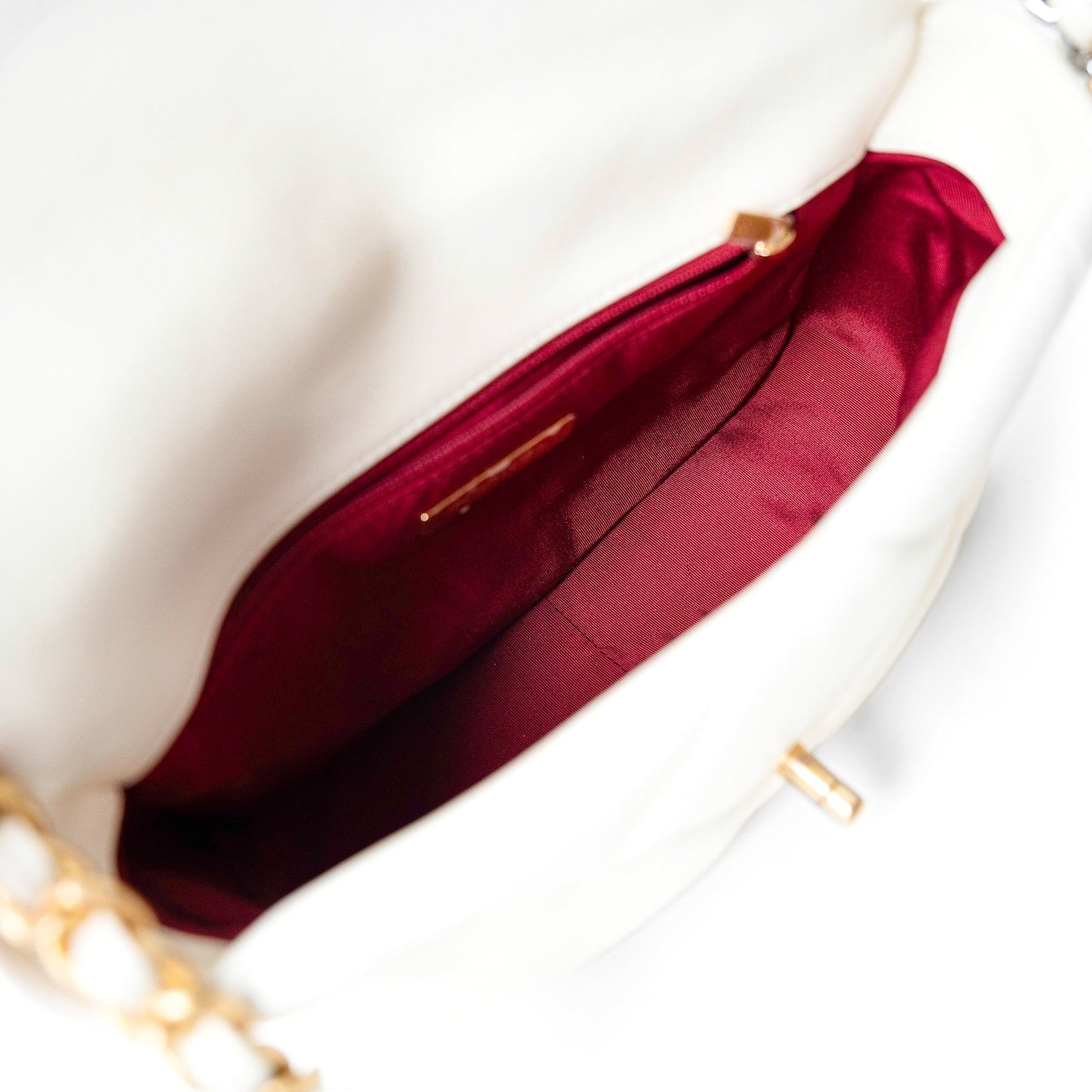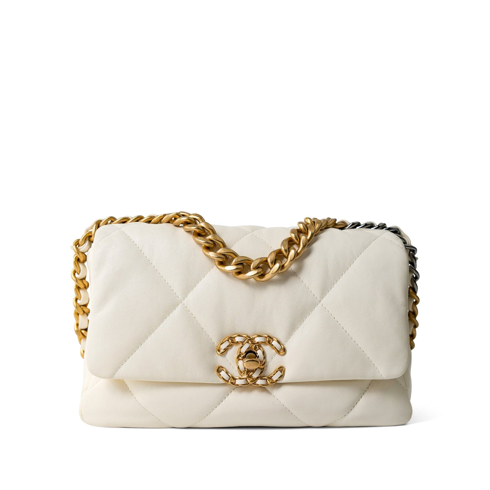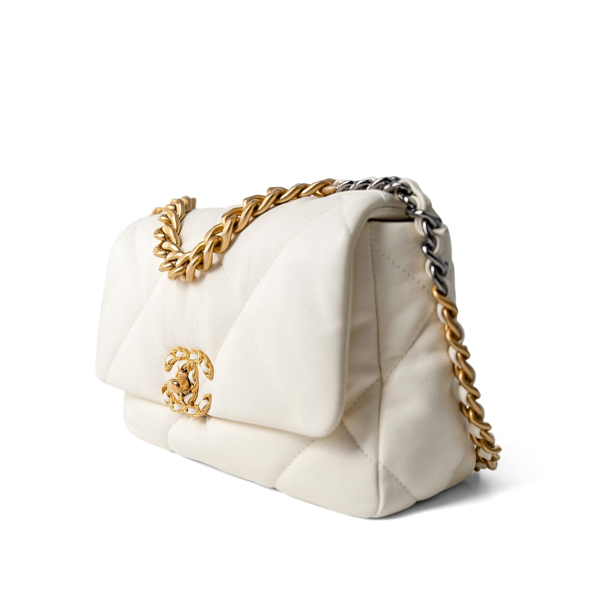 White Lambskin Quilted 19 Flap Small Mixed Hardware