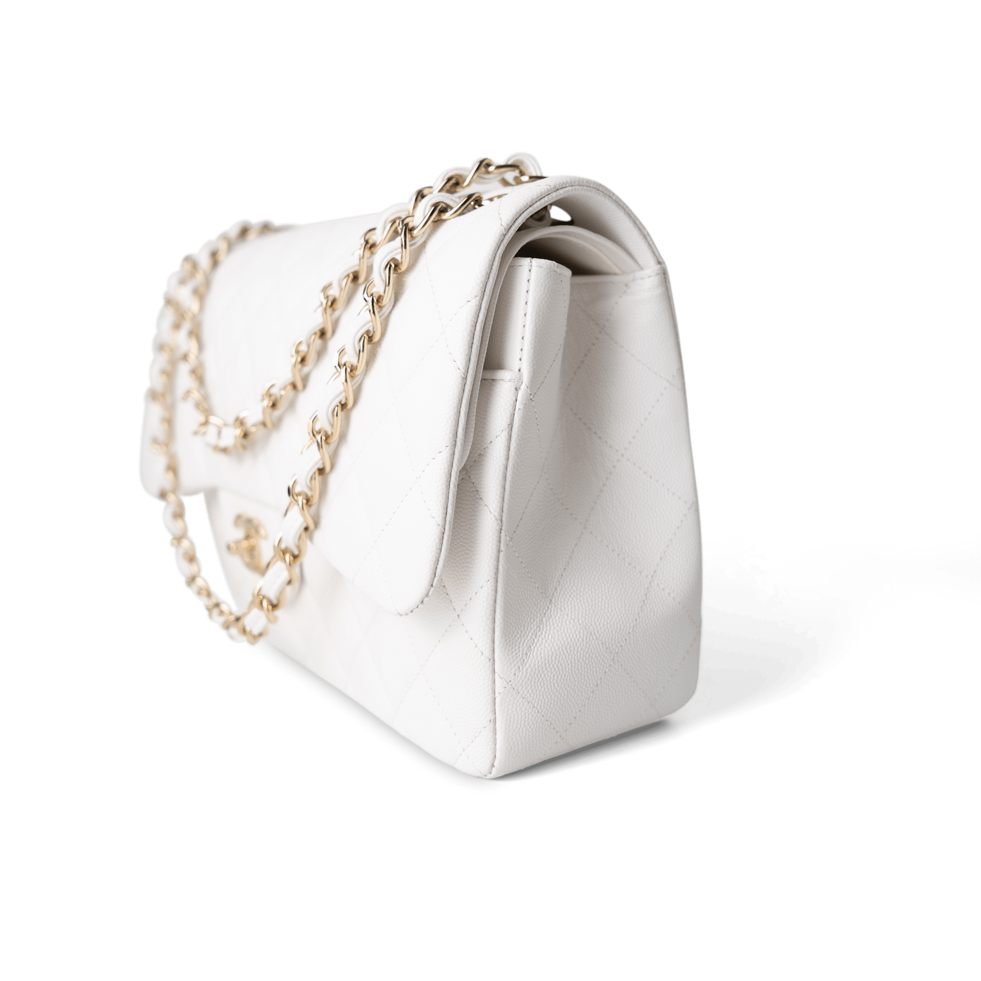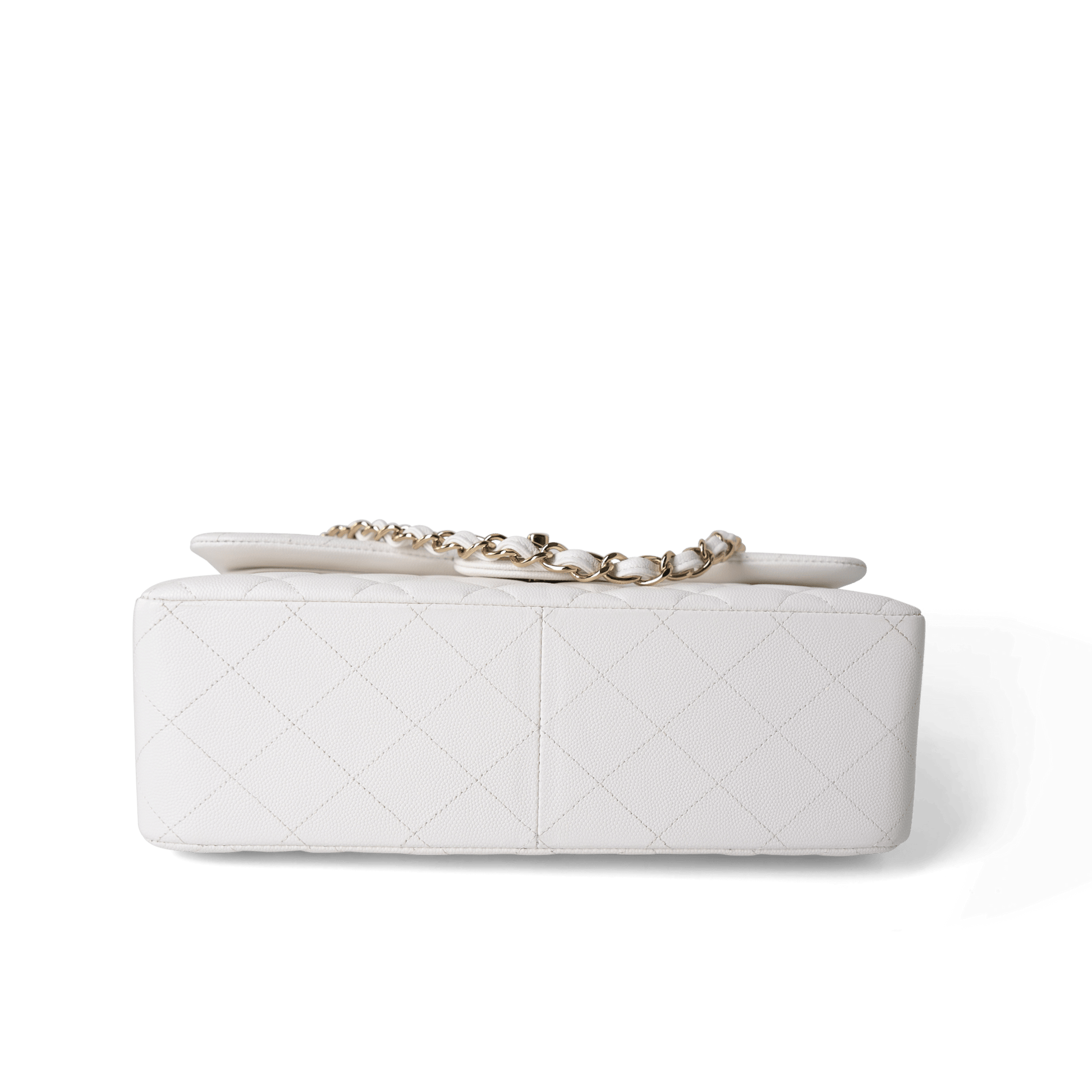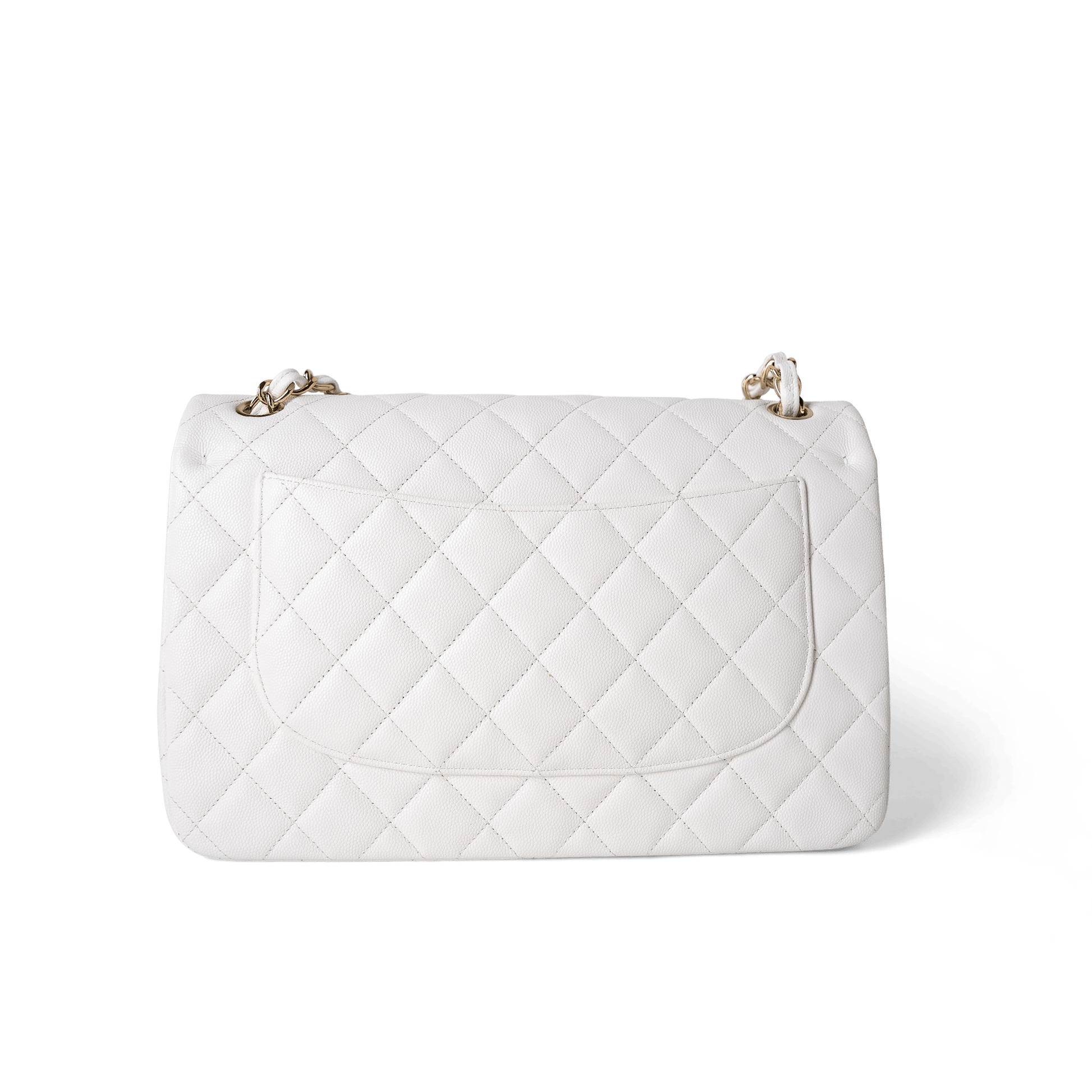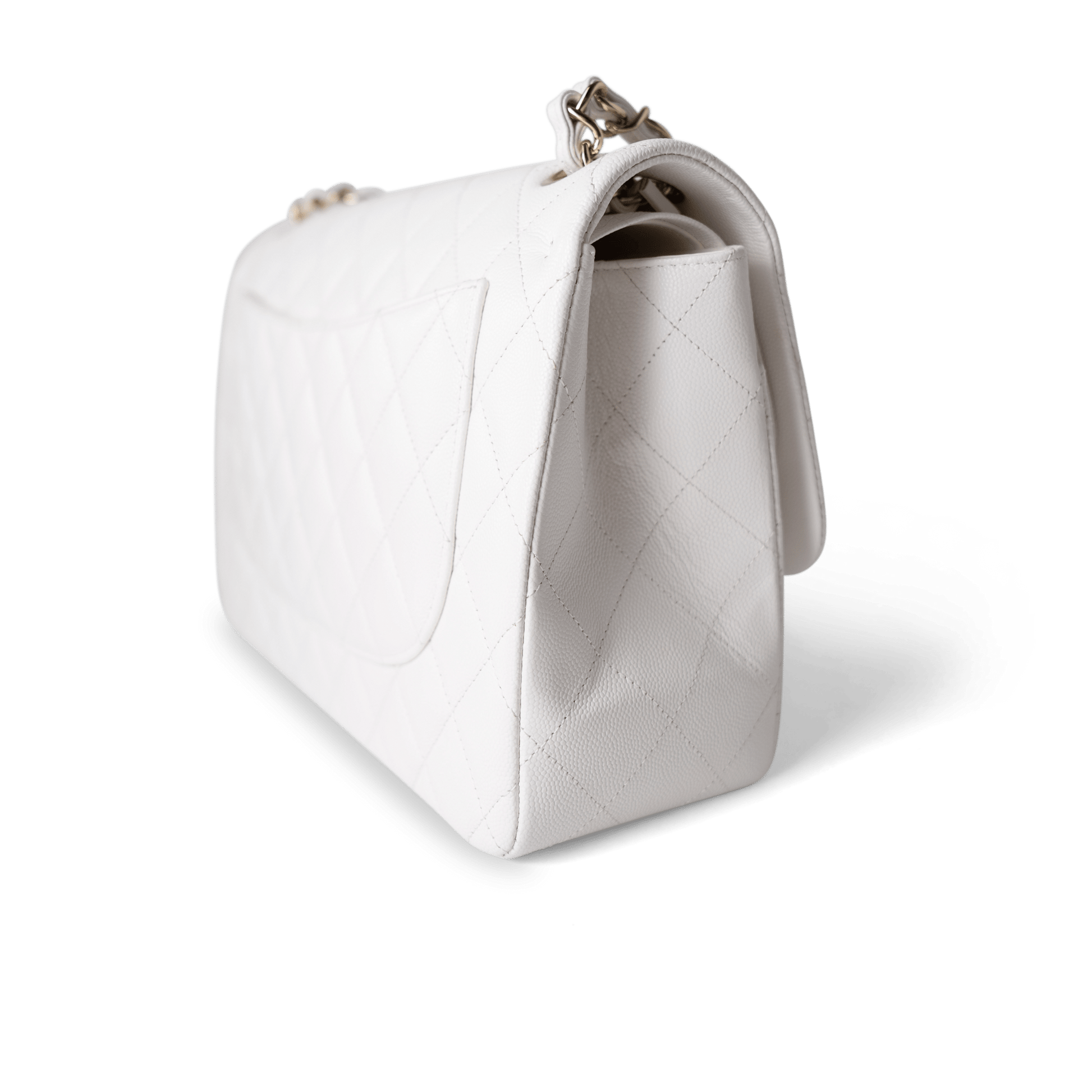 White Caviar Quilted Jumbo Classic Flap Light Gold Hardware