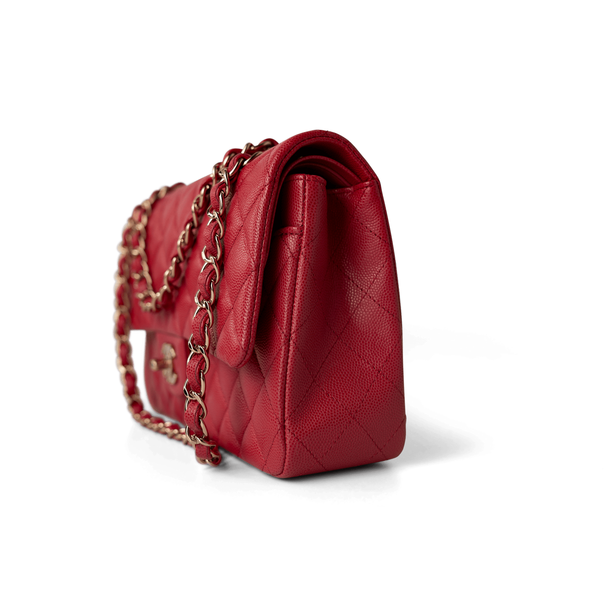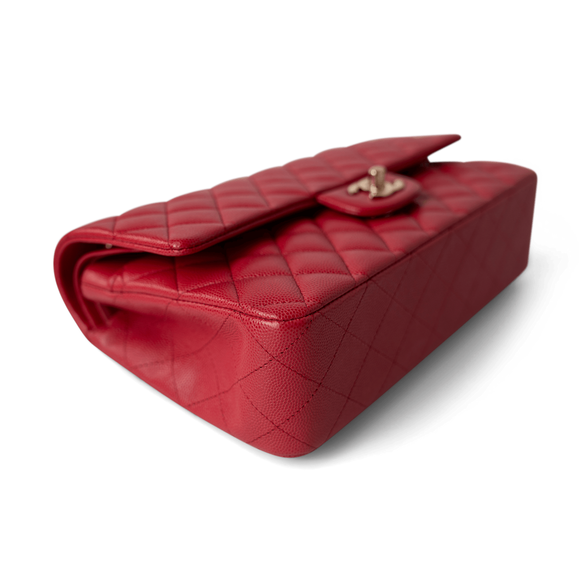 Red Caviar Quilted Classic Flap Medium Light Gold Hardware