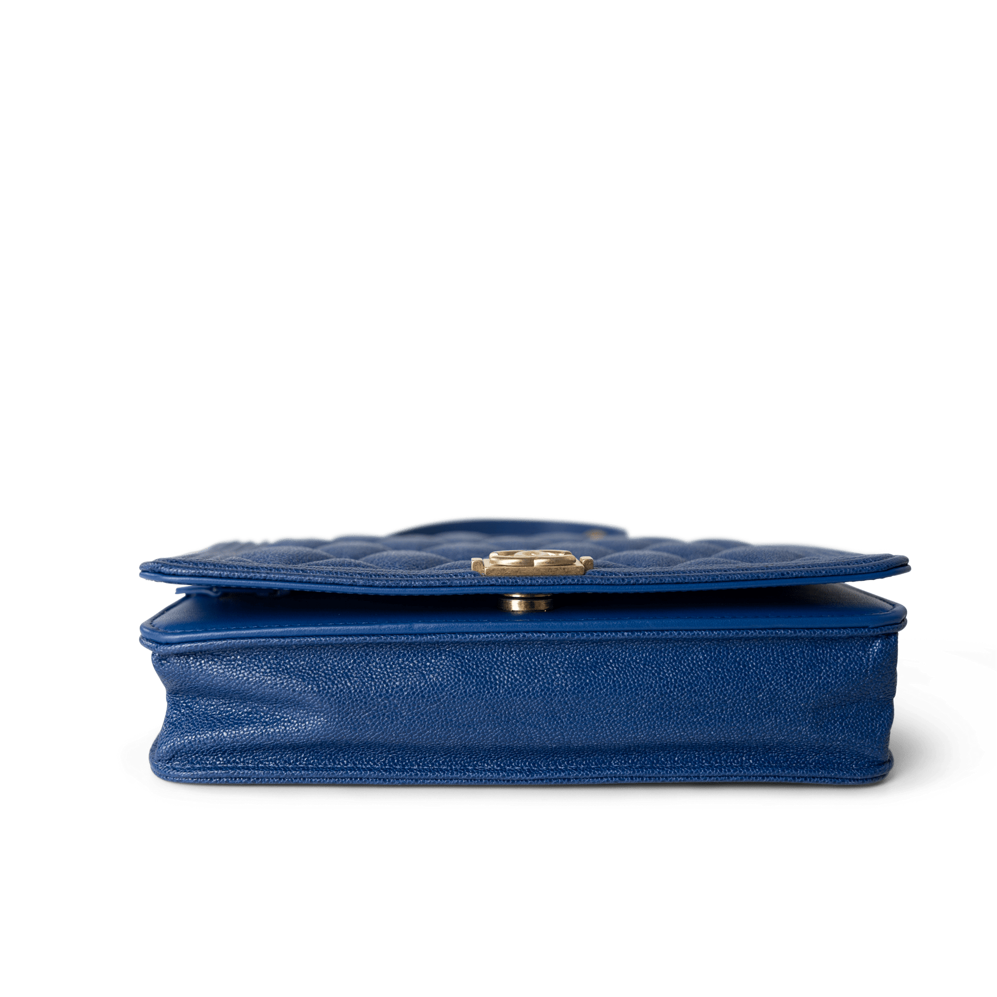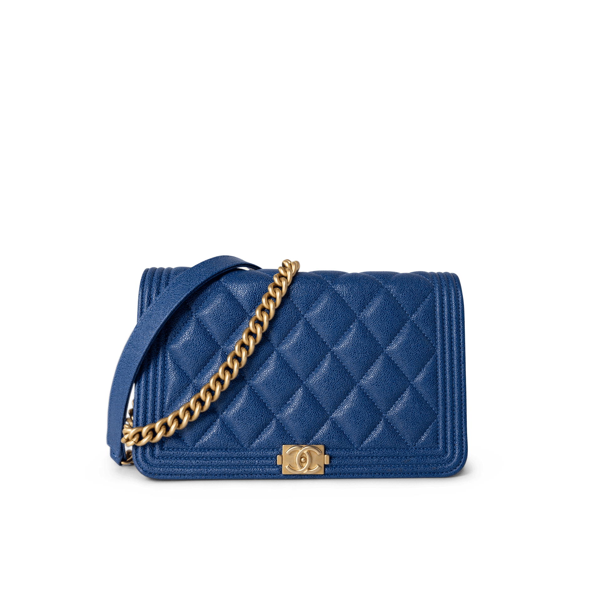 19A Blue Caviar Quilted Boy Wallet On Chain WOC Antique Gold Hardware