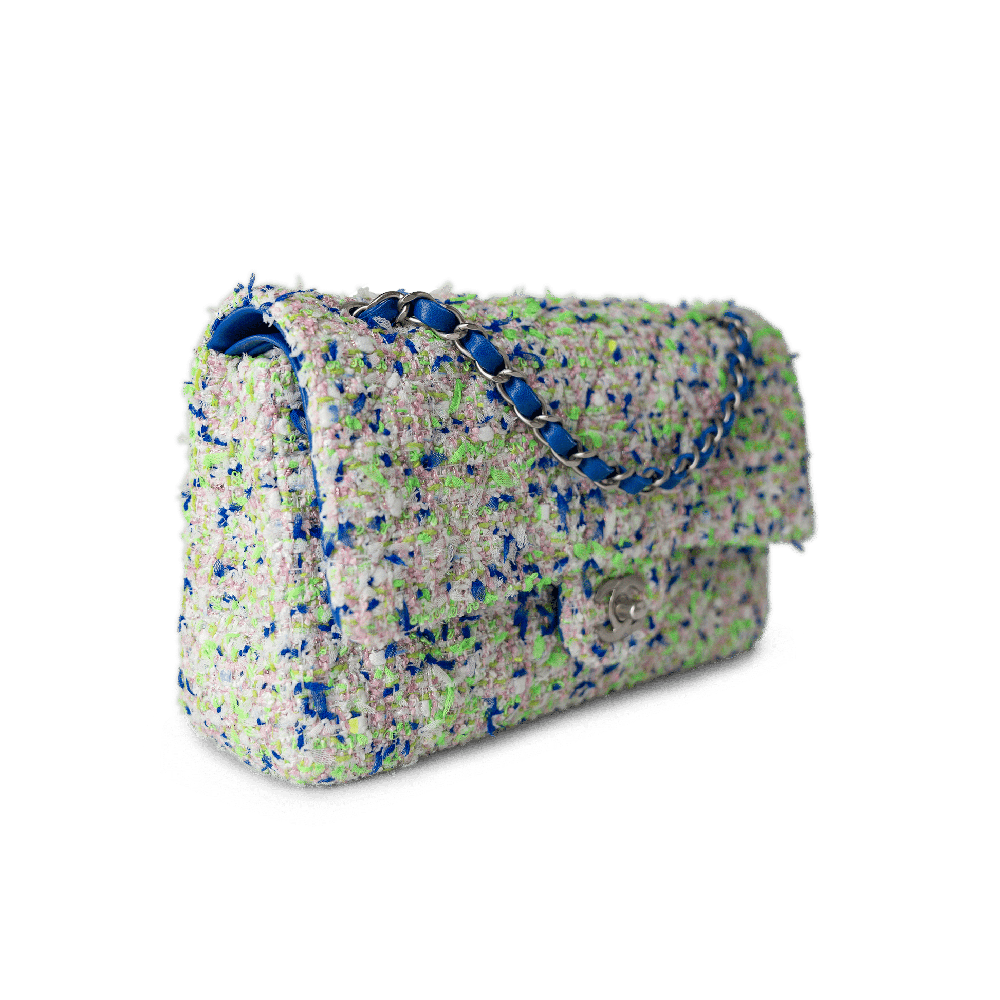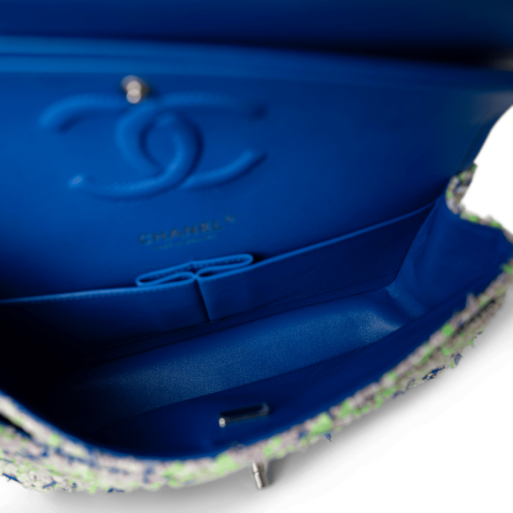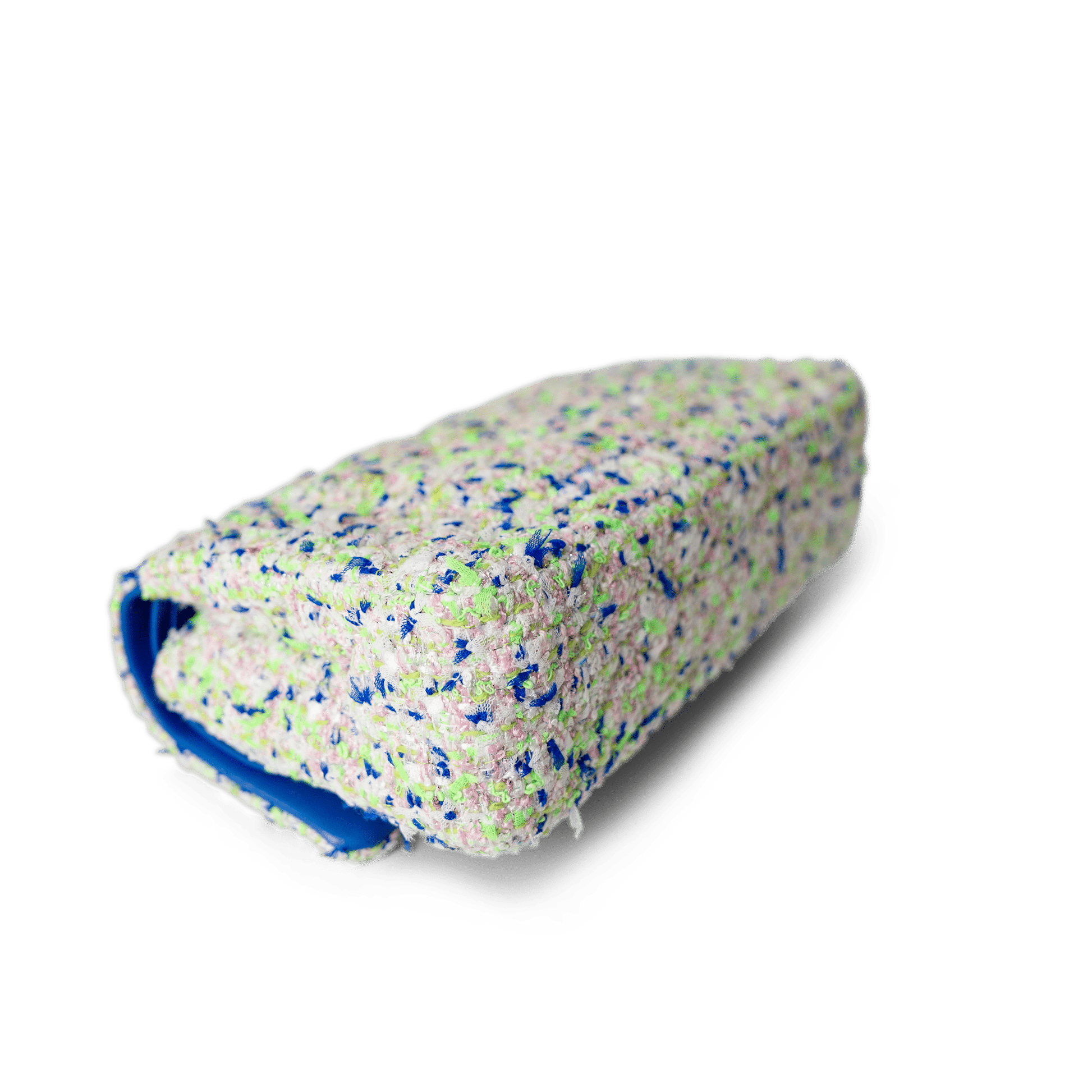 23S White Blue Green Tweed Quilted Classic Flap Medium