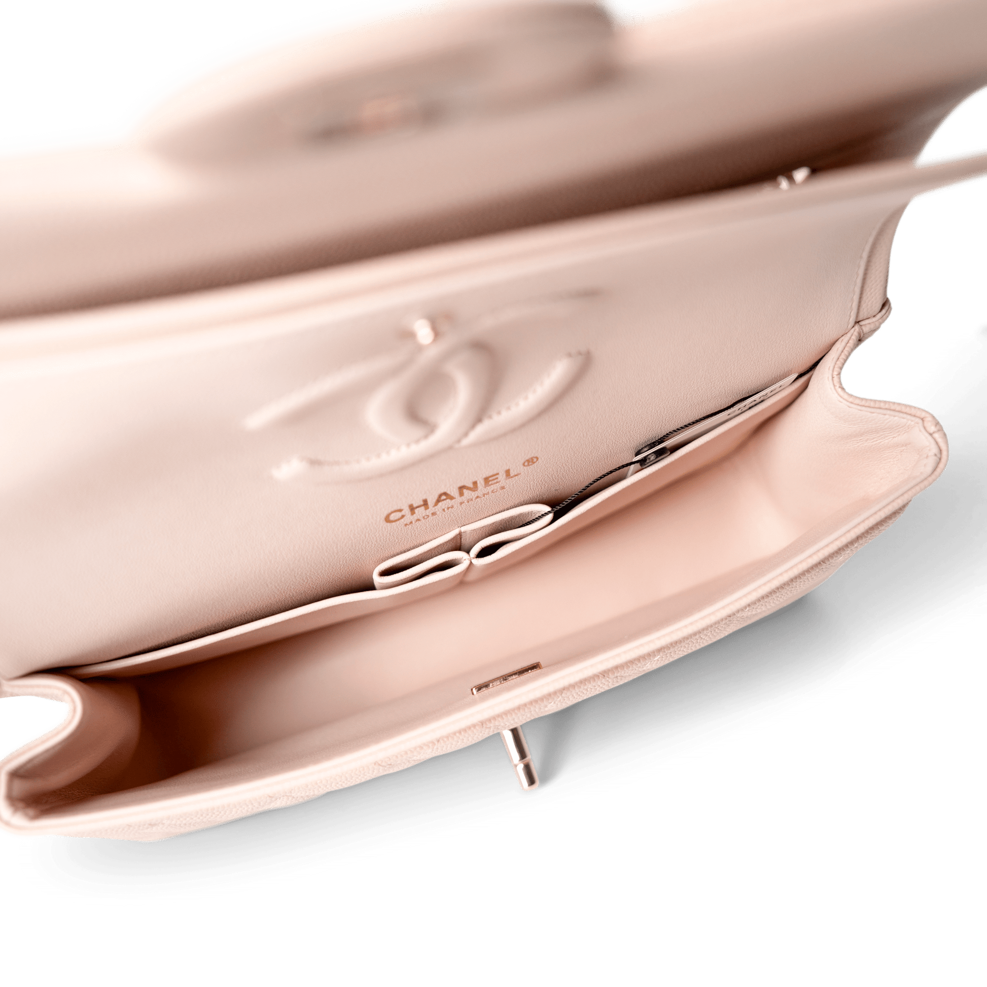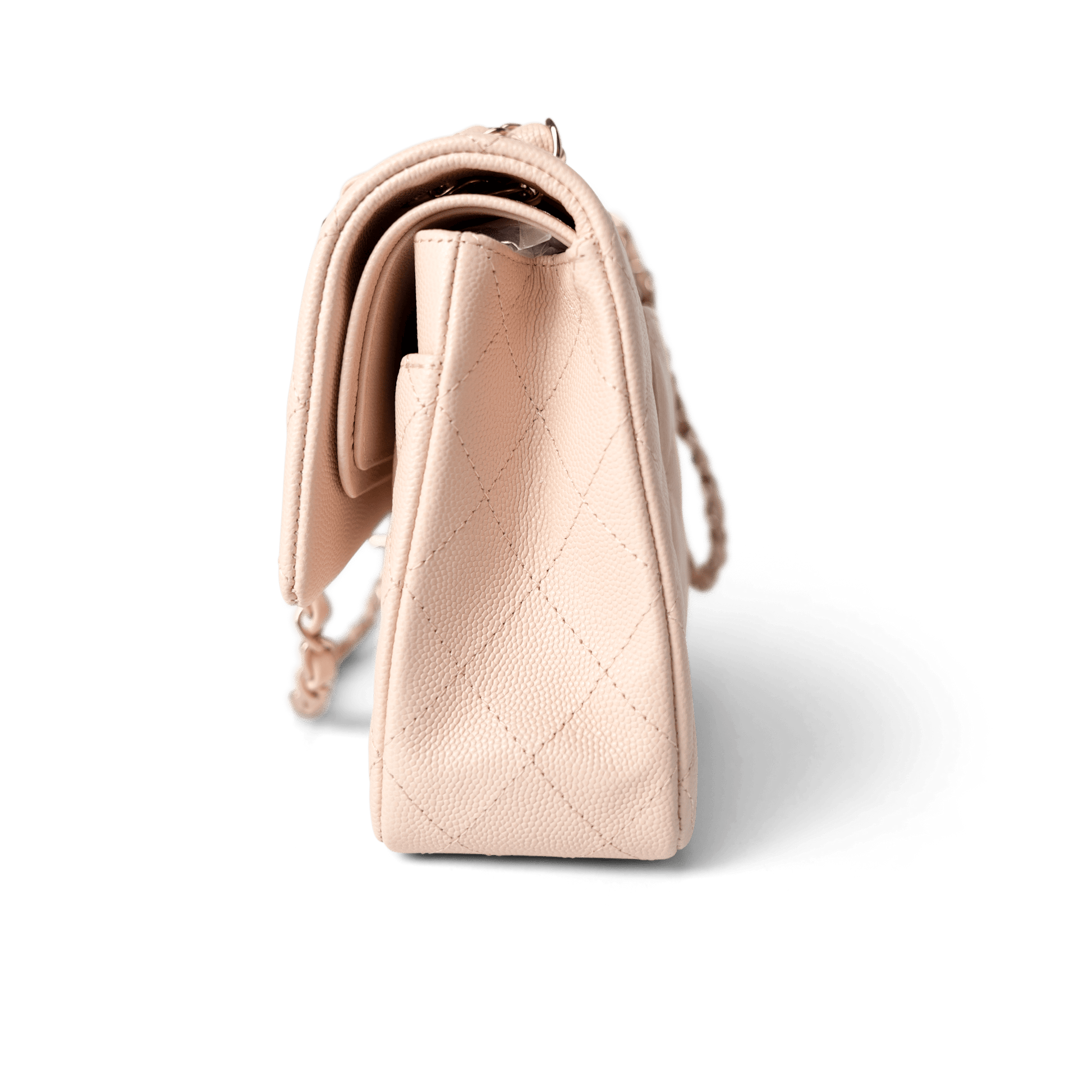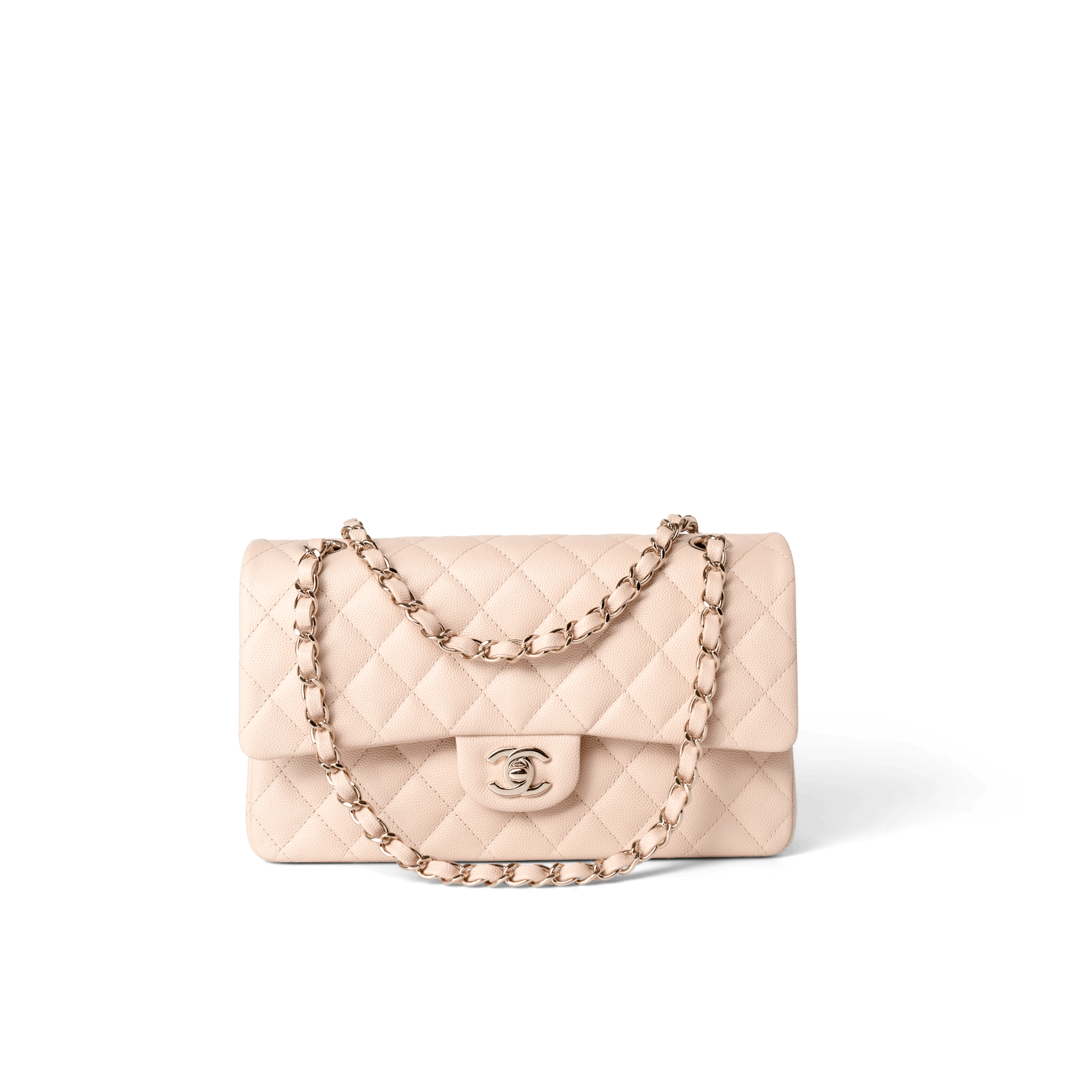 22c Beige Caviar Quilted Classic Flap Medium Light Gold Hardware