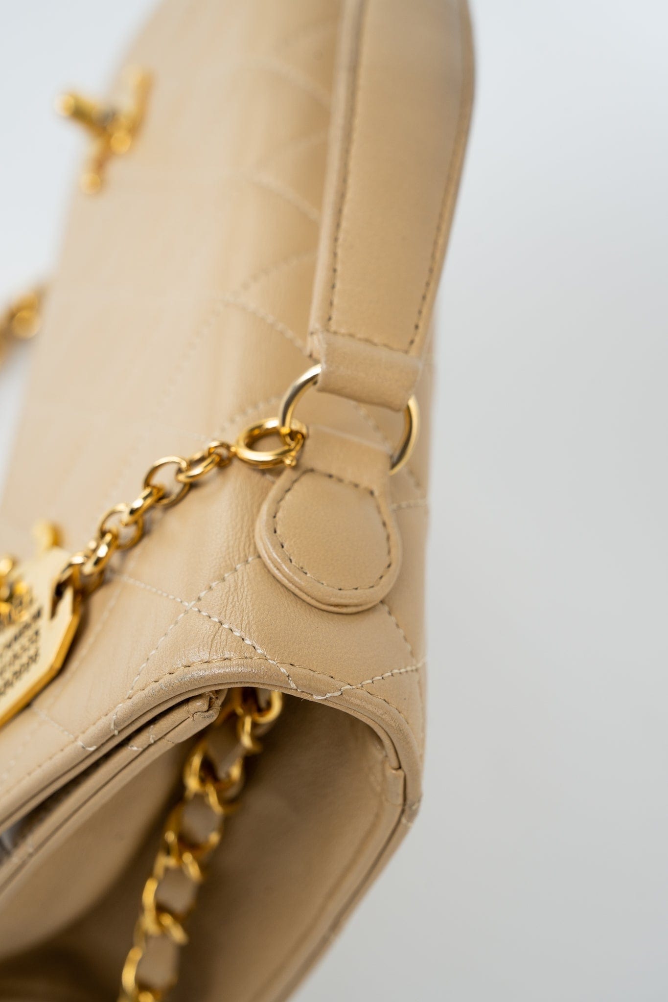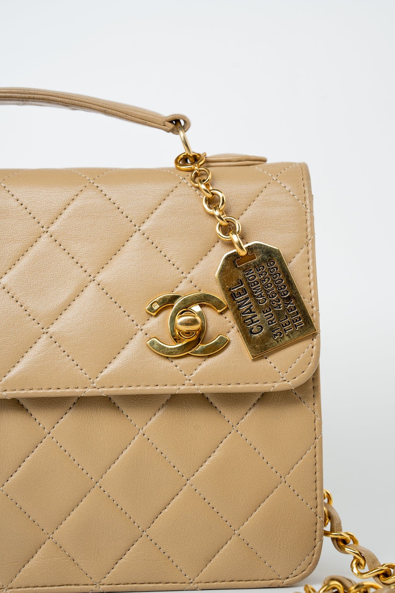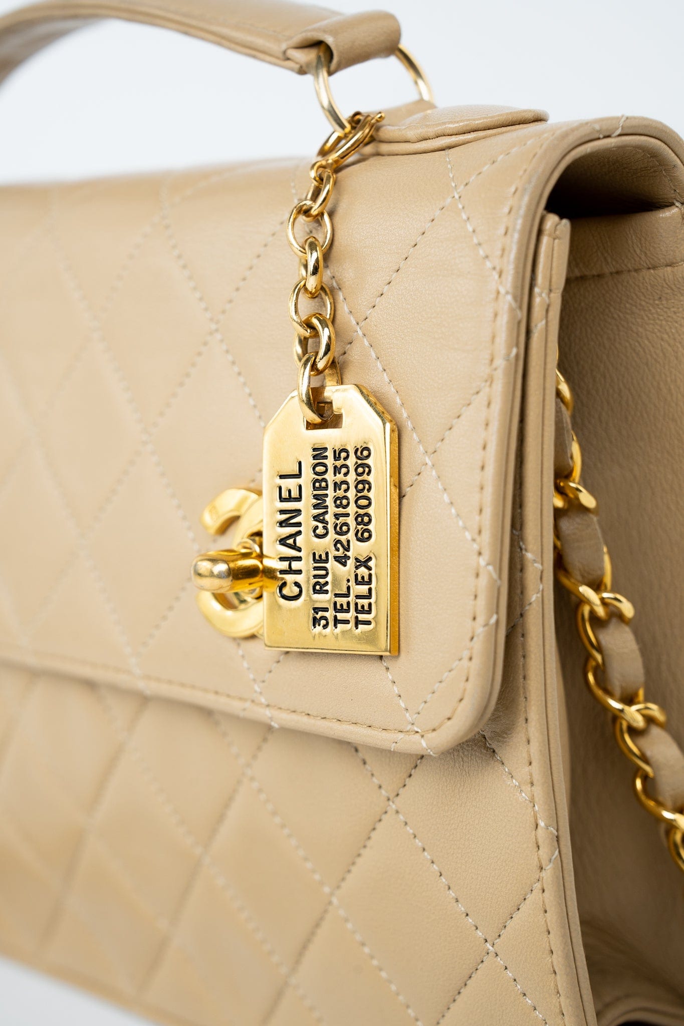 Vintage Beige Double Turnlock Single Flap Briefcase Bag Gold Hardware
